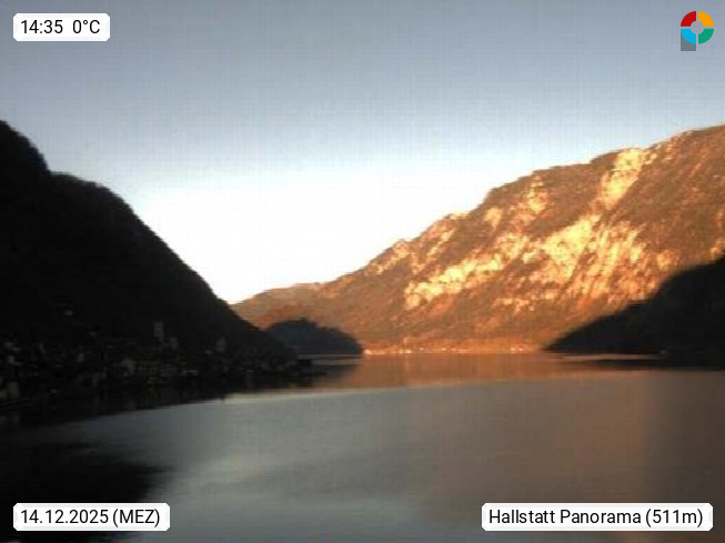 A 4830 Hallstatt 510m, Gemeinde im inneren Salzkammergut am Hallstätter See und UNESCO-Welterbe. Blick vom Ortsteil Lahn Richtung Norden über den Hallstätter See zum Ort Hallstatt. Präsentiert von https://www.hallstatt.net/.