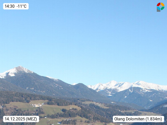 I 39030 Olang (Valdaora) 1.083m im Bezirk Pustertal (Val Pusteria). Panoramablick vom Hotel Hubertus Richtung Richtung Oberpustertal. Präsentiert von https://www.hotel-hubertus.com/.