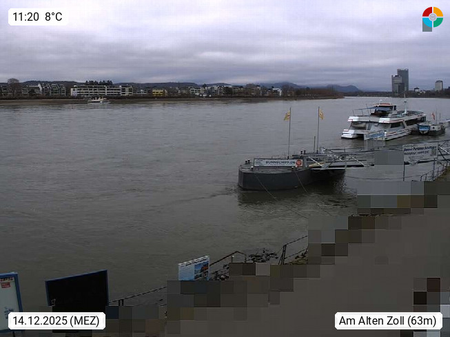 D 53111 Bonn 60m, Großstadt im Süden von Nordrhein Westfalen an beiden Ufern des Rhein und bis 1999 Regierungssitz der Bundesrepublik Deutschland. Blick vom Brassert Ufer am Alten Zoll über die Rheinpromenade Richtung Südosten über den Rhein flussaufwärts. Präsentiert von https://www.bonnschiff.de/.