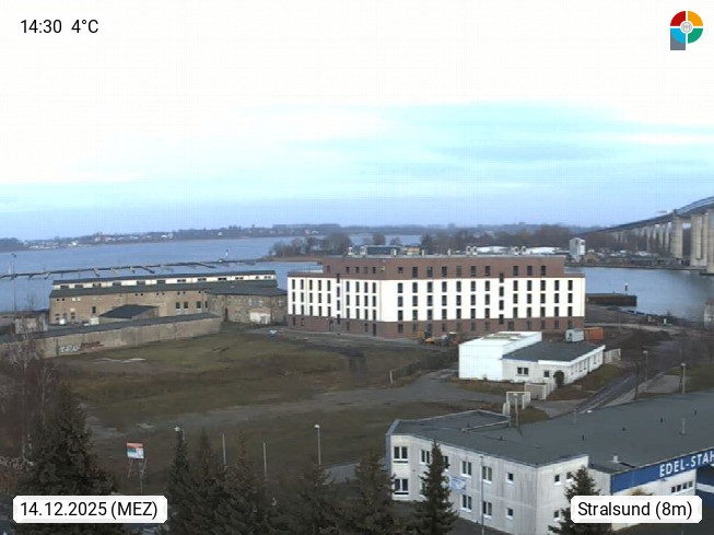 D 18439 Stralsund, Blick Richtung Norden über die Rügenbrücke Deutschlands grösste Hängebrücke zum Rügendamm der Hansestadt Stralsund. Präsentiert von http://www.haus-am-ruegendamm.de.