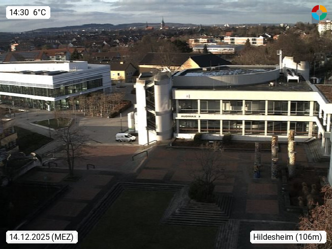 D 31141 Hildesheim 93m am rechten Ufer der Innerste, kreisfreie Stadt im Süden des Landes Niedersachsen. Blick über den Innenhof der Universität Hildesheim und den Kirchtürmen der Stadt zur Marienburger Höhe. Präsentiert von https://www.uni-hildesheim.de/.