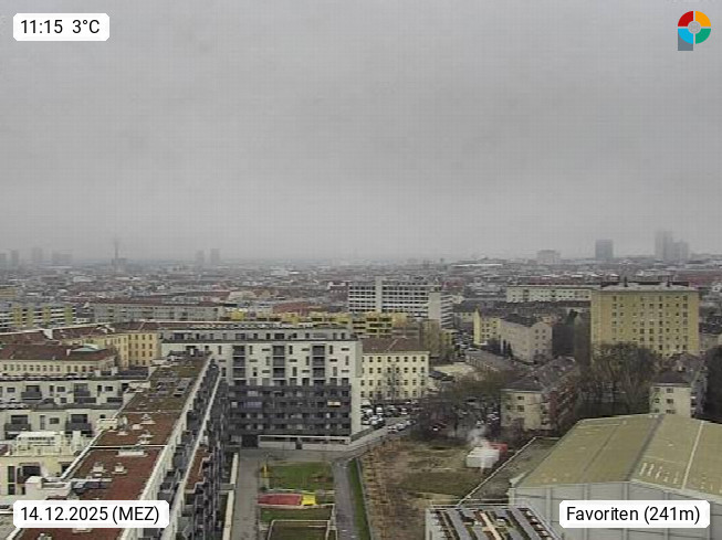 1100 Wien 241 m, Bundeshauptstadt und zugleich eines der neun Bundesländer Österreichs im nordwestlichen Bereich des Wiener Beckens an der Donau. Blick vom Wasserturm auf der Kuppe des Wienerberges Richtung Osten über Favoriten dem 10. Wiener Gemeindebezirk. Präsentiert von https://www.wien.gv.at/.