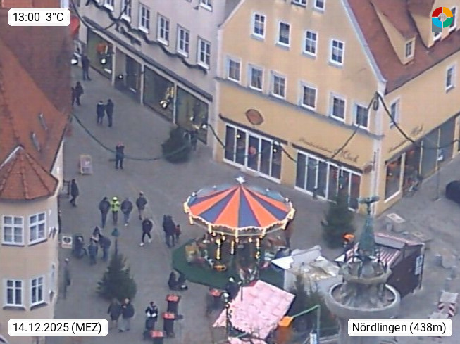 D 86720 Nördlingen 440m, Große Kreisstadt im schwäbischen Landkreis Donau-Ries. Blick von der St. Georgs Kirche, dem \"Daniel\" auf den Rübenmarkt in der Altstadt. Präsentiert von https://www.noerdlingen.biz/.