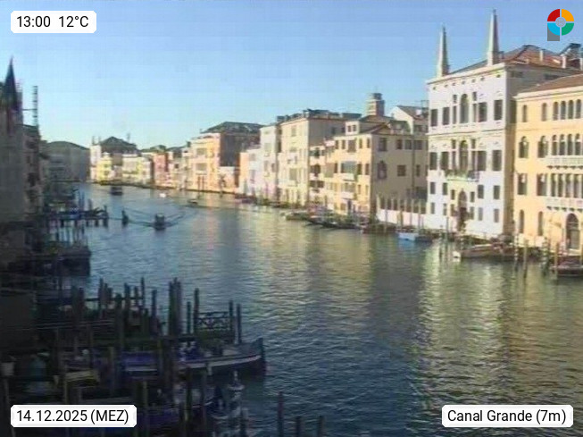 I 30120 Venedig - Canal Grande (Canalazzo), rund 4 km lange, zwischen 25 und 70 Meter breite Hauptwasserstraße in der Lagunenstadt Venedig. Blick von der Rialtobrücke Richtung Westen über den Canal Grande (Canalazzo). Präsentiert von https://www.comune.venezia.it/.