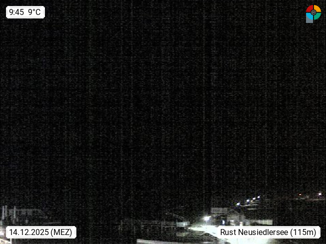 A 7071 Rust am Neusiedlersee 124m, ung. Ruszt, kroat. Rusta ist mit rund 1.900 Einwohnern der kleinste Verwaltungsbezirk und die kleinste Statutarstadt Österreichs. Bekannt ist Rust vor allem als Stadt der Störche und als Weinbaugemeinde. Blick vom Segelhafen Richtung Osten über den See. Präsentiert von https://www.seebadrust.at/.