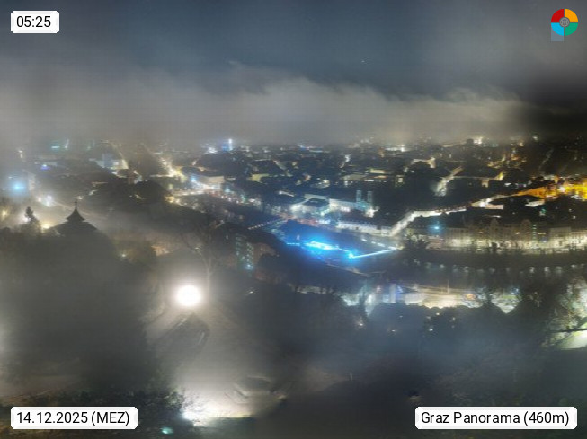 AT 8010 Graz Landeshauptstadt des Bundeslandes Steiermark an der Mur im Grazer Becken. Graz ist mit rund 300.000 einwohnern die zweitgrößte Stadt Österreichs. Panoramablick vom Schlossberg über den Süden von Graz. Präsentiert von https://www.graz.at.