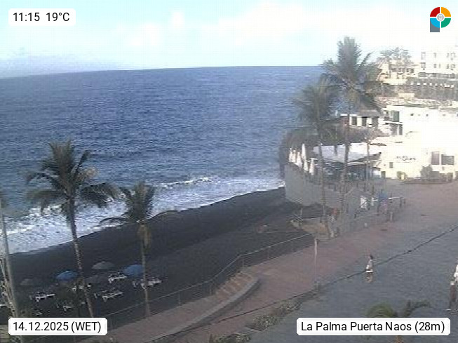 E–38769 Puerto Naos ist ein Gemeindeteil der Gemeinde Los Llanos de Aridane auf der zu Spanien gehörenden Kanareninsel La Palma. Der Ort gehört zu den wichtigsten Tourismuszentren auf der Insel. Blick auf die Promenade. Präsentiert von https://lapalmarentacar.com/.