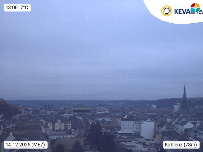 D 56068 Koblenz 60m, county-level city and one of the oldest cities in Germany at the mouth of the Moselle and Rhine in the so-called German Corner in northern Rheinland Pfalz. Panoramic view over the oldtown to the headland \"Deutsches Eck\" and the Fortress Ehrenbreitstein. Presented by https://www.sparkasse-koblenz.de/de/home.html.