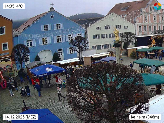 D 93309 Kelheim 343m, county seat at the output of the Danube breakthrough below the Michelmountain at the mouth of Altmühl into the Danube. Overlooking the town square to the west. Presented by https://www.kelheim.de/.