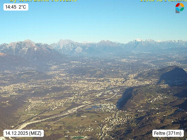I 32032 Feltre 325m, city in the province of Belluno, in the foothills of the Dolomites. View from Monte Telva west direction over the city. Presented by http://www.arifeltre.it.