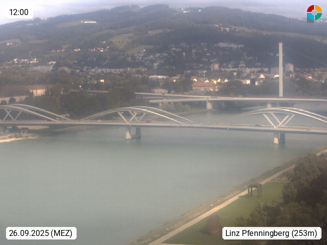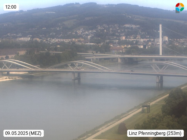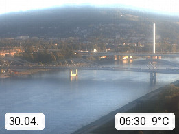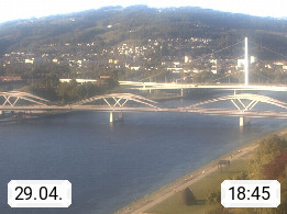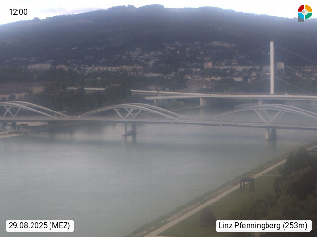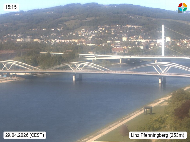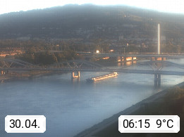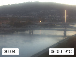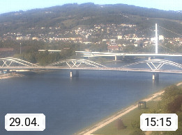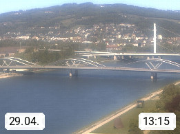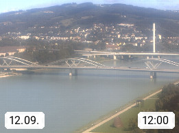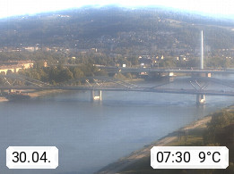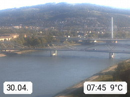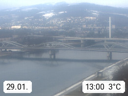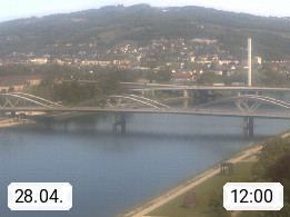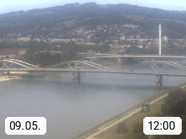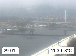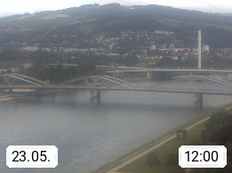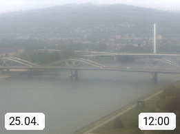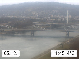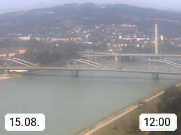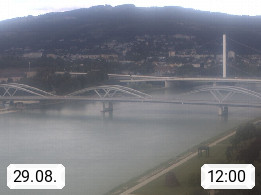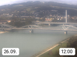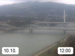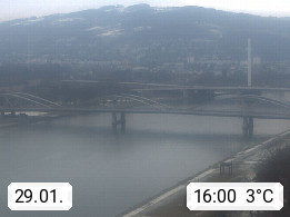 4020 Linz 266m, Landeshauptstadt von Oberösterreich an der Donau. Hier zu sehen sind die Abbrucharbeiten der Linzer Eisenbahnbrücke, mit dem im Juni 2016 begonnen wurde. Links im Bild die Manipulationsfläche, auf der die Brückenteile für den Weitertransport zerlegt werden. Im Hintergrund der Pfenningberg 616m. Presented by http://www.linznet.at.