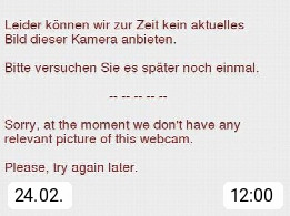 Mit diesem Code können Sie diesen Webcambaustein ganz einfach in Ihre Website einbauen. Klicken Sie dazu auf den Code, kopieren Sie diesen und fügen ihn anschließend ih Ihre Website ein. Der Baustein bietet die gleichen Funktionen, die auch auf panoramablick.com zu sehen sind: Livebild, Tagesverlauf und Archivbilder.