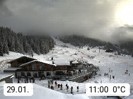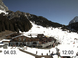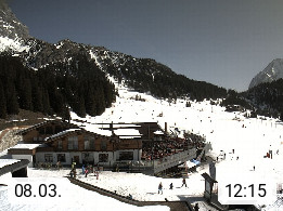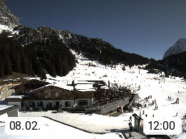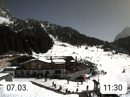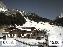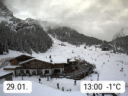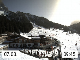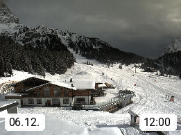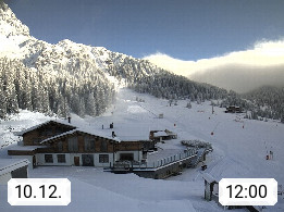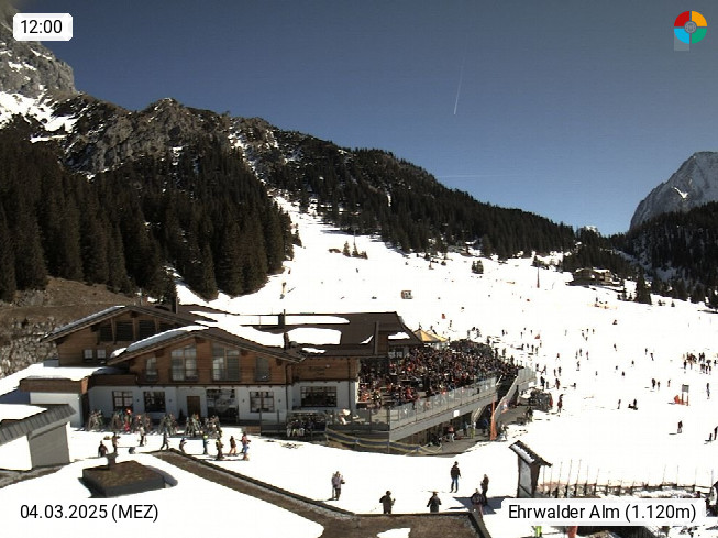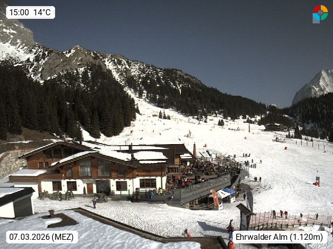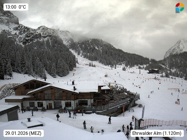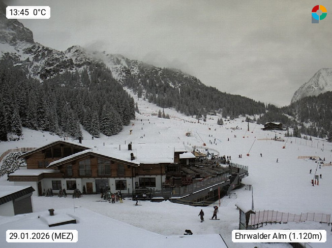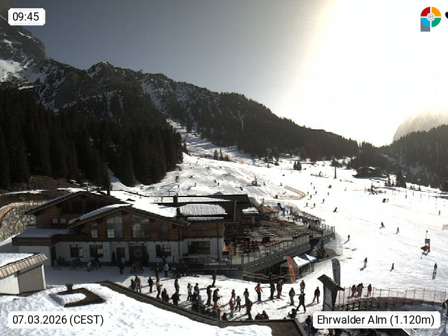 A 6632 Ehrwald 994m, near Wettersteingebirge mountains in the district Reutte. View in north direction over the Ehrwalder Alp 1.500m, to the Wetterstein massif, which highest peak 2.962m is called Zugsspitze. In winter the Ehrwalder Alp is a skiing region with 7 skilifts and 26 km ski pistes and a popular hiking and mountainbike paradise in summer. Presented by https://www.almbahn.at/.
