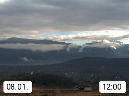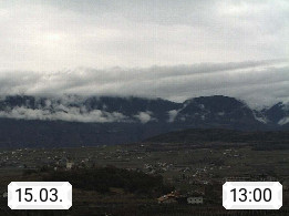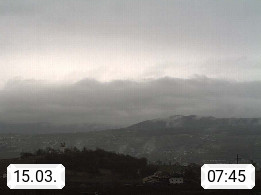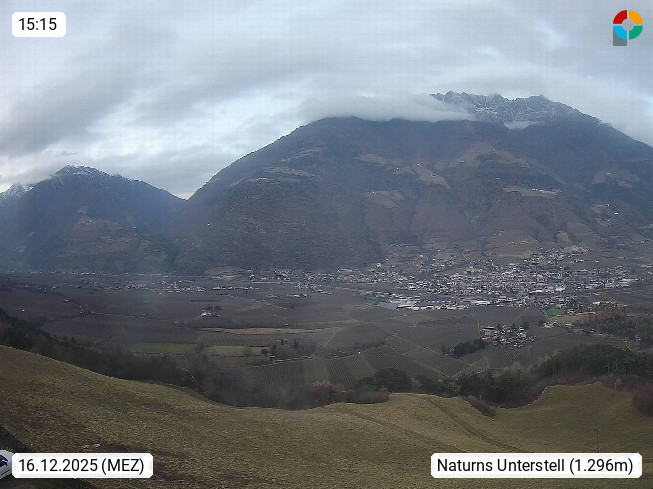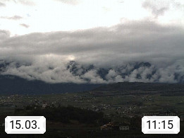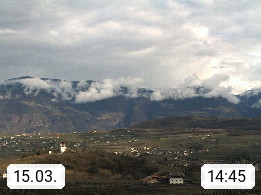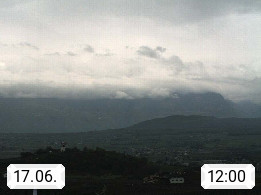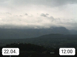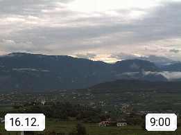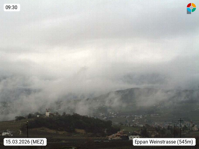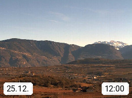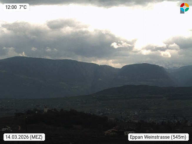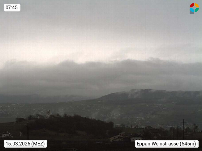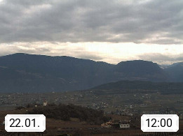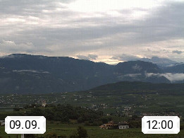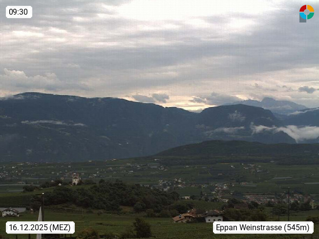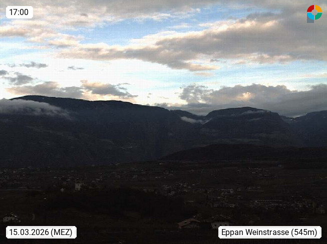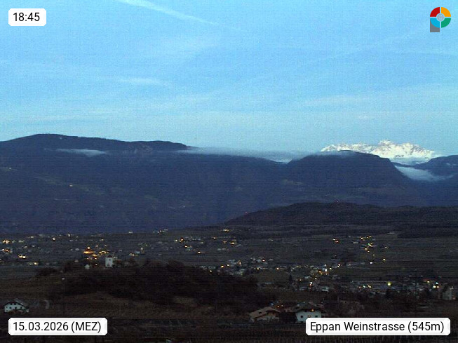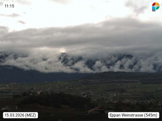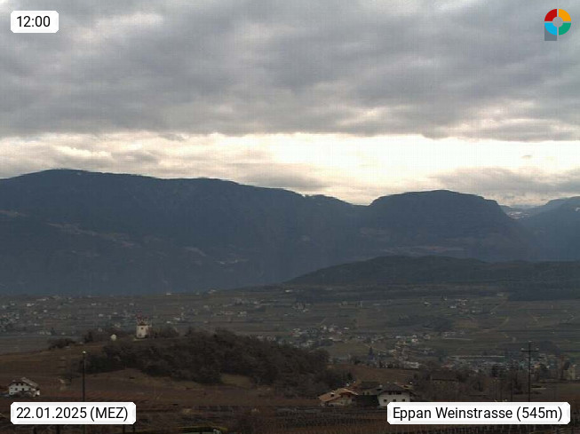 I 39057 Eppan on the Wineroad (Appiano sulla Strada del Vino) 430m, in Überetsch between Bozen (Bolzano) and Kaltern (Caldaro) on the slopes of the Mendola mountain ridge (Costiera della Mendola). Panoramic view towards the northeast to the Sarntaler Alps (Alpi Sarentine) Tschögglberg, Rittner Horn, Kohlerer Mountain, Schlern, Latemar and white horn. Presented by https://www.steinegger.it/.