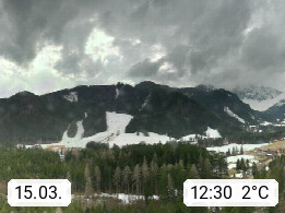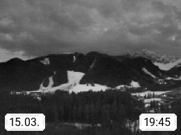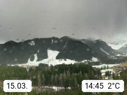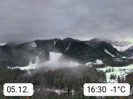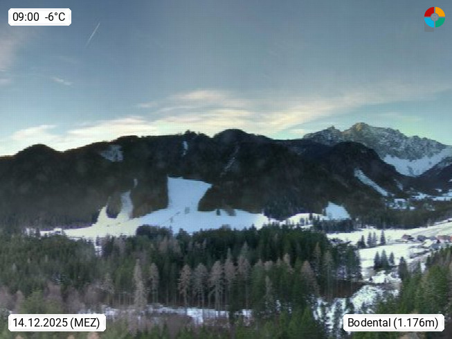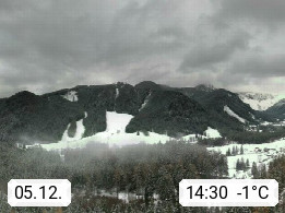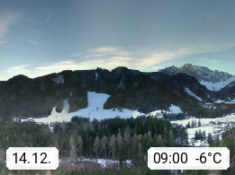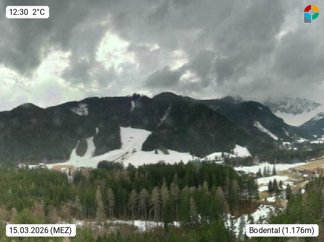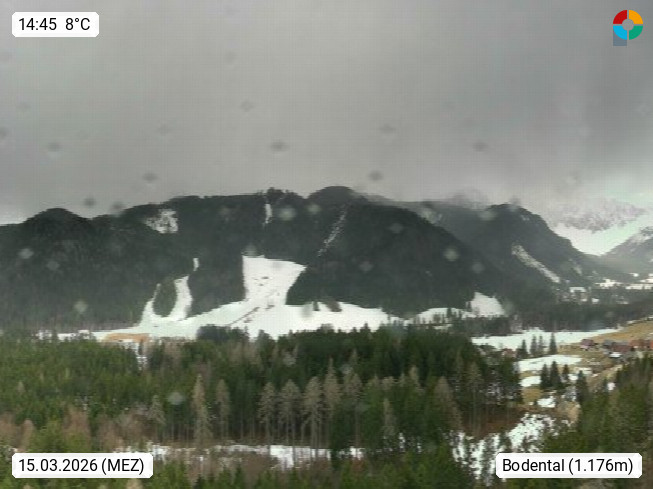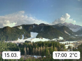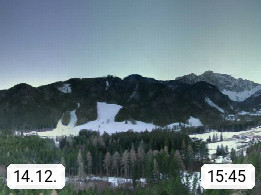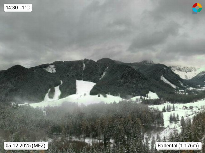 A 9170 Ferlach Austria's southernmost town. Panoramic view over the Bodental, Slovak Boden, a remote high valley in the Karawanks in southern Carinthia. In the background, the peak of Vertatscha 2,180 m, a border mountain between Austria and Slovenia. Presented by https://www.familienhof.at/.
