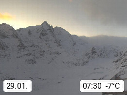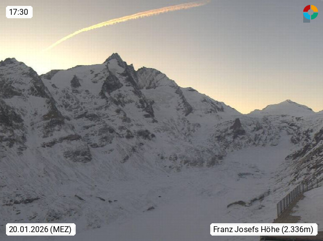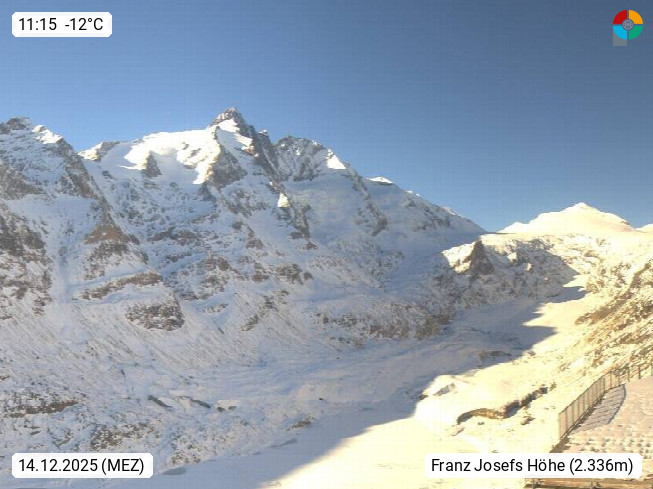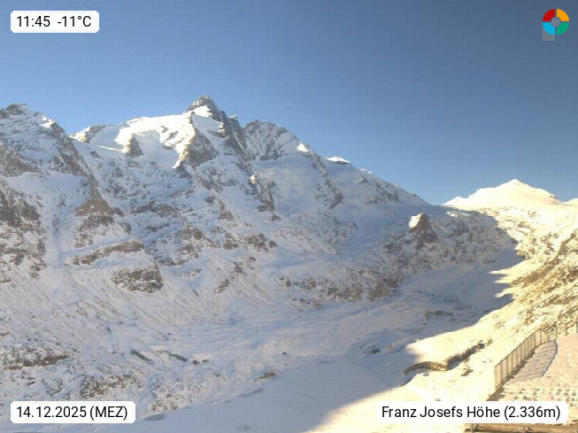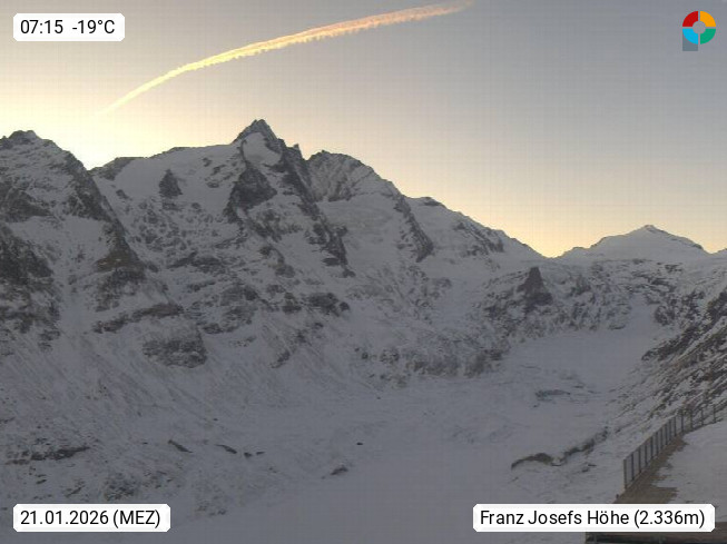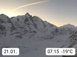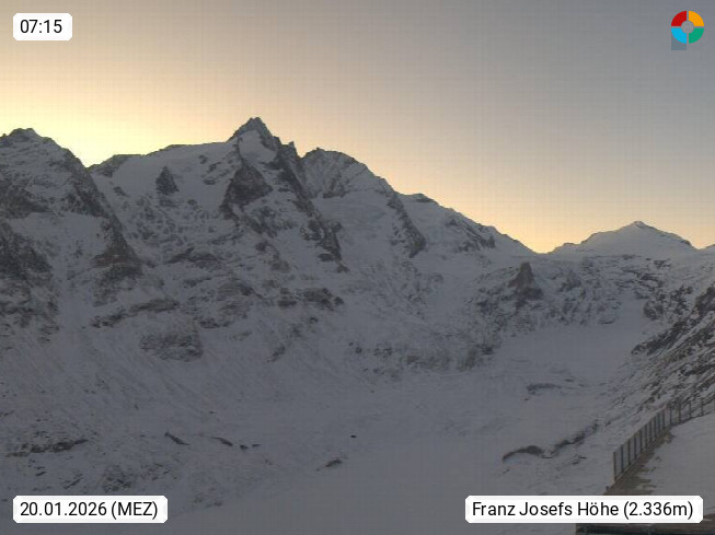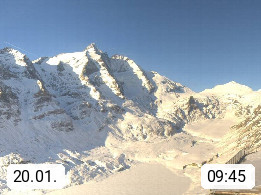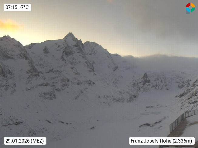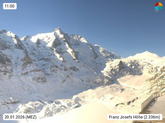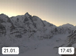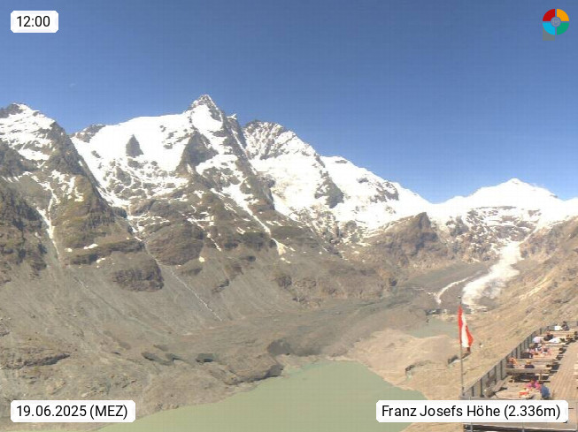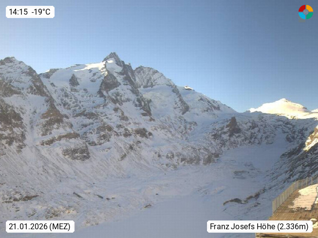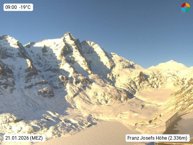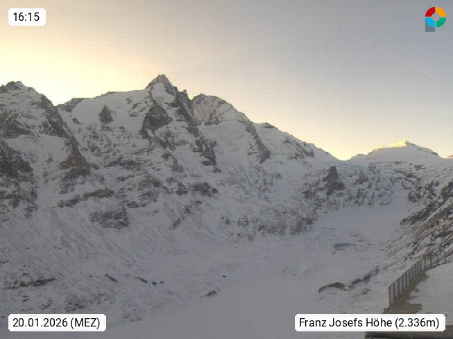 A 9844 Heiligenblut 1.288m, near the mountain Grossglockner at the Moelltal valley in the Nationalpark Hohe Tauern of the district Spittal at Drava, Cam position Glocknerhaus in 2.132m, panoramic view in southwest direction from Franz Joseph Hoehe 2.362m to Mount Grossglockner 3.798m, which is Austrias highest mountain. Presented by https://www.grossglockner.at/de.