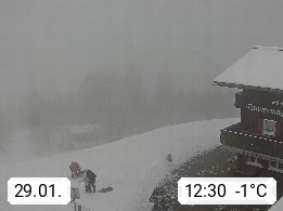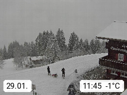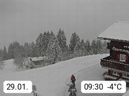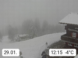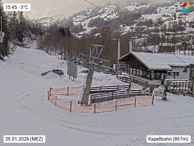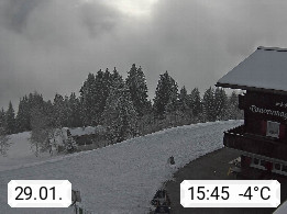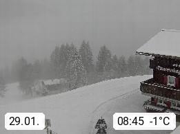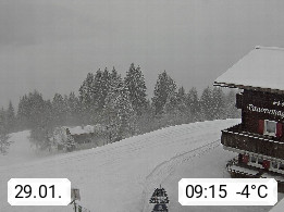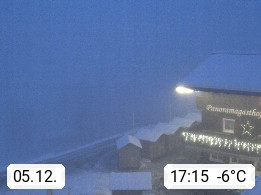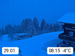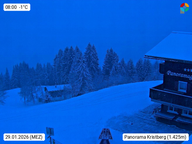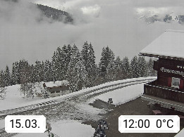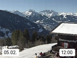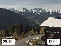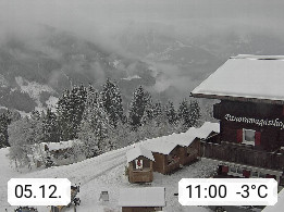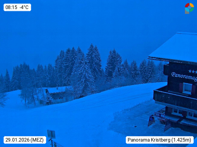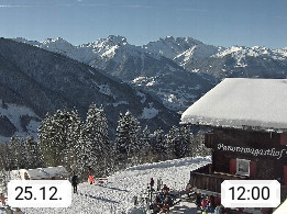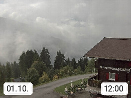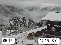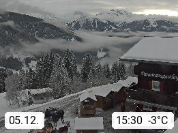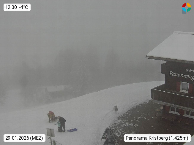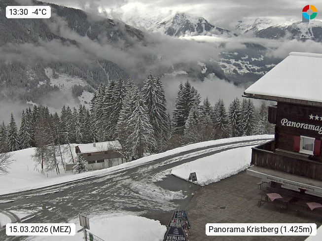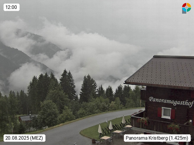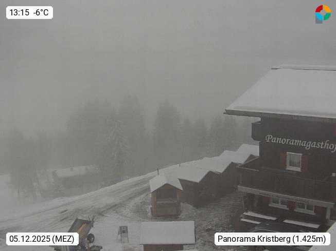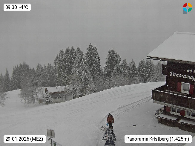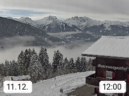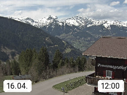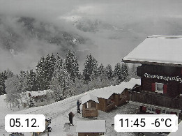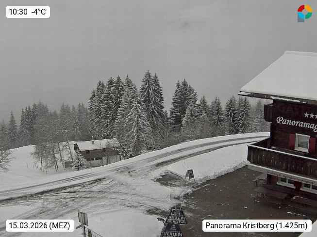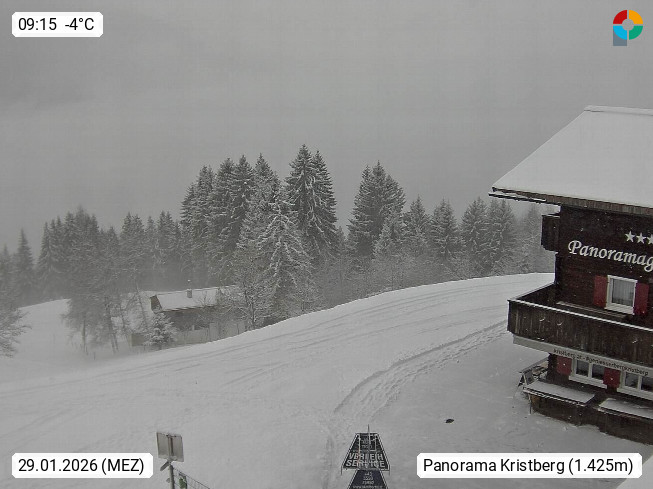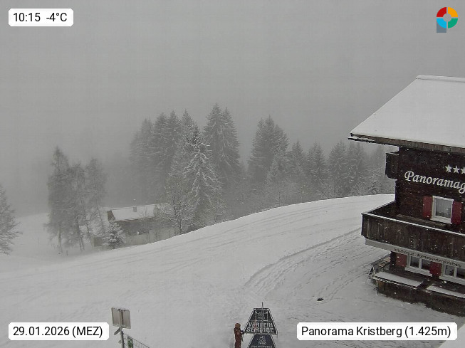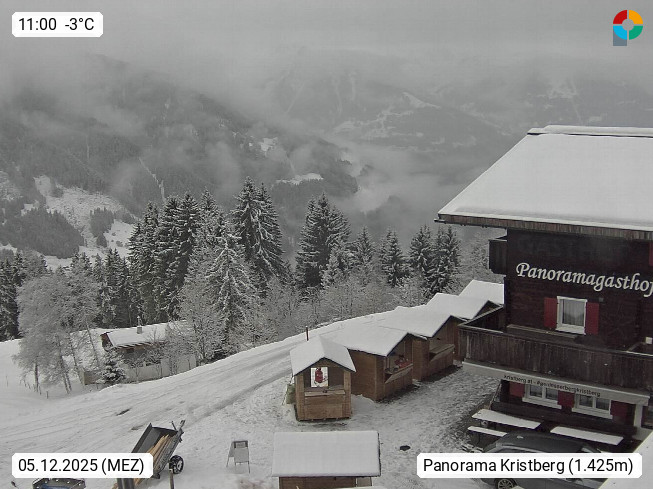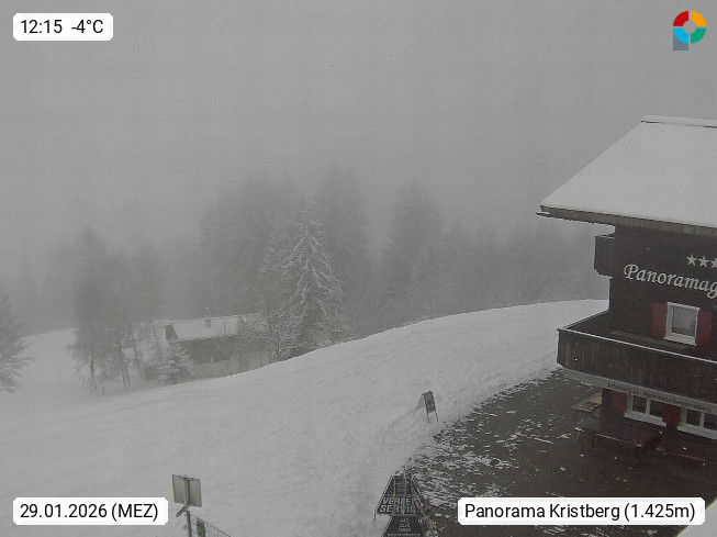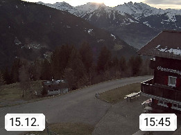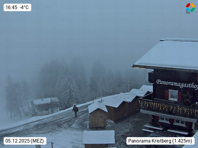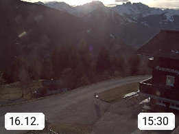 A 6780 Silbertal Kristberg 1.425m, located in a side valley of Montafon in the Verwall Alps in district Bludenz. View to the Panorama restaurant Kristberg, in the background the Rätikon mountaingroup, the villages Schruns Tschagguns and Golm. Deine Erholungsinfo gibt es auf www.kristberg.at