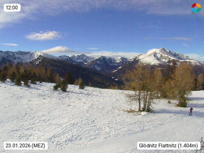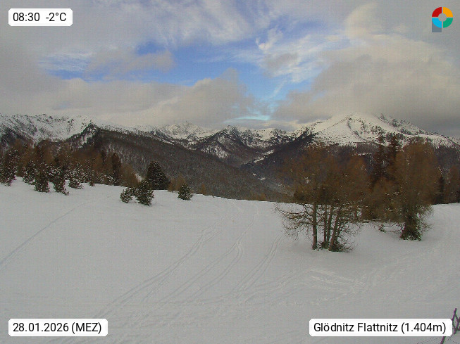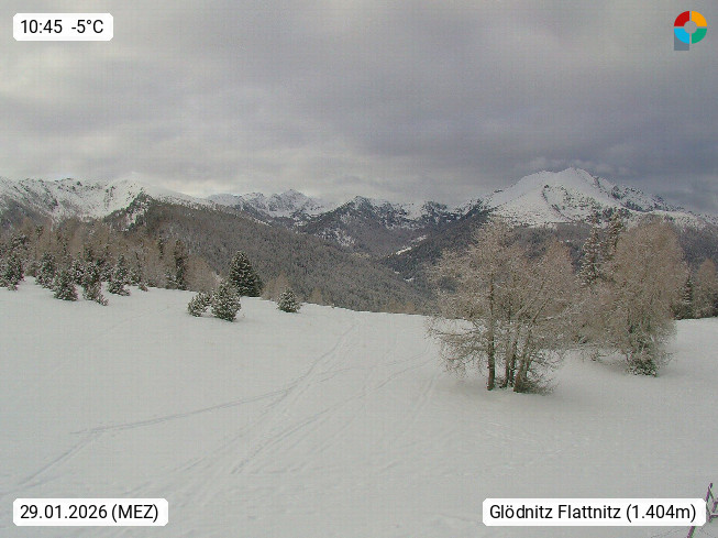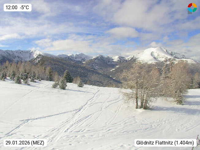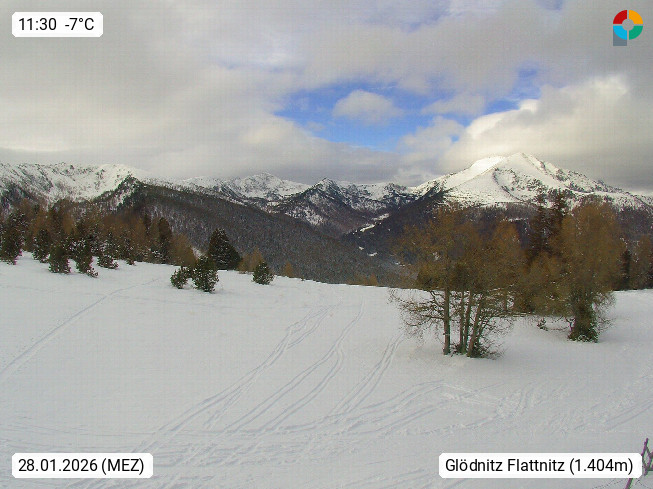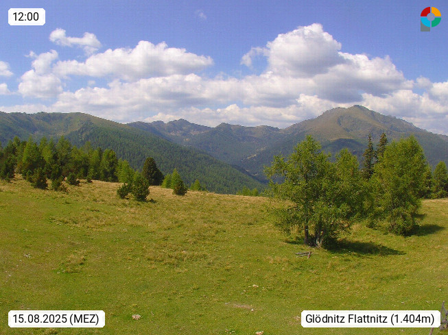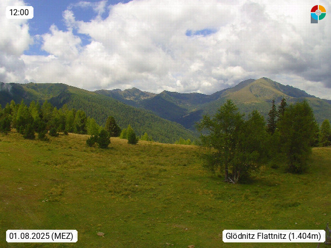 A 9346 Gloednitz 748m, in Gloednitztal valley, which is a tributary valley of the Gurktal valley in the Gurktaler Alps in the district Sankt Veit at the river Glan. Panoramic view from Flattnitz Pass 1.480m, a plateau between Gurktal valley in Carinthia and the municipality Stadl - Predlitz in the Murtal valley in Styria. Panoramic view in west direction to the mountain Kalleben 2.140 m, Lattersteighöhe 2.264 m, Straßburger Spitz 2.404 m, Wintertalernock 2.394 m and the Eisenhut with 2.441 m the highest peak in the Nocky mountains. Presented by https://www.gloednitz.com/.