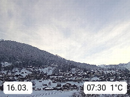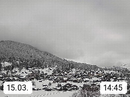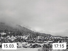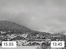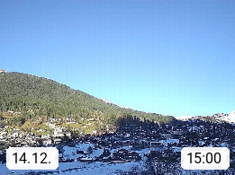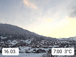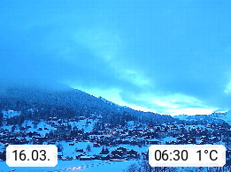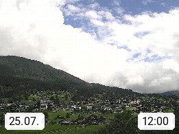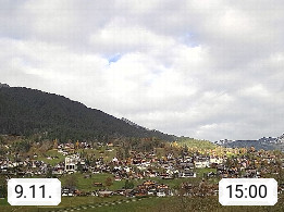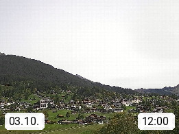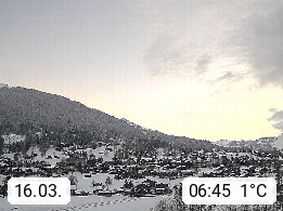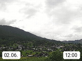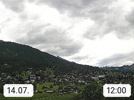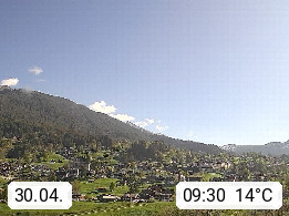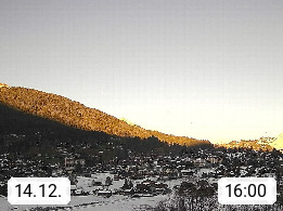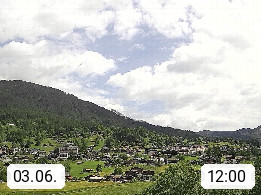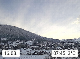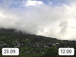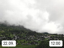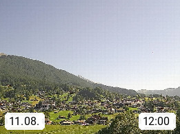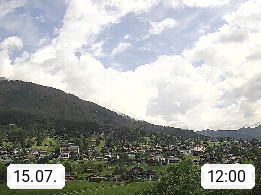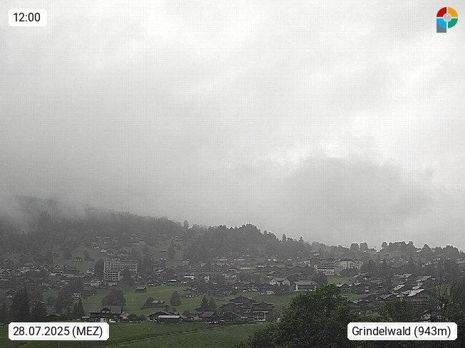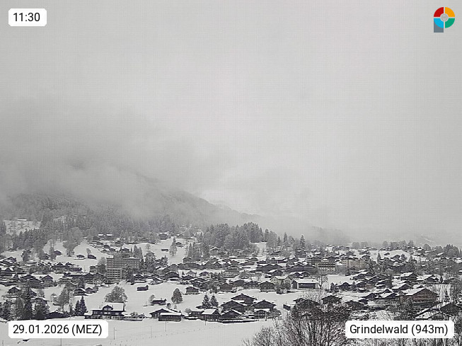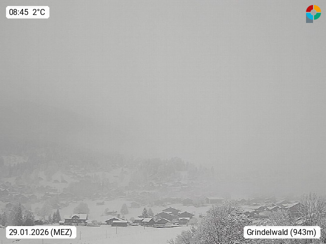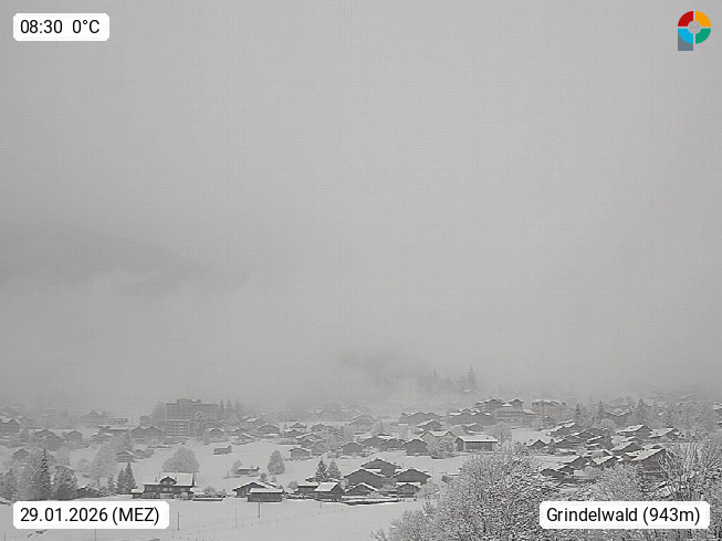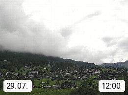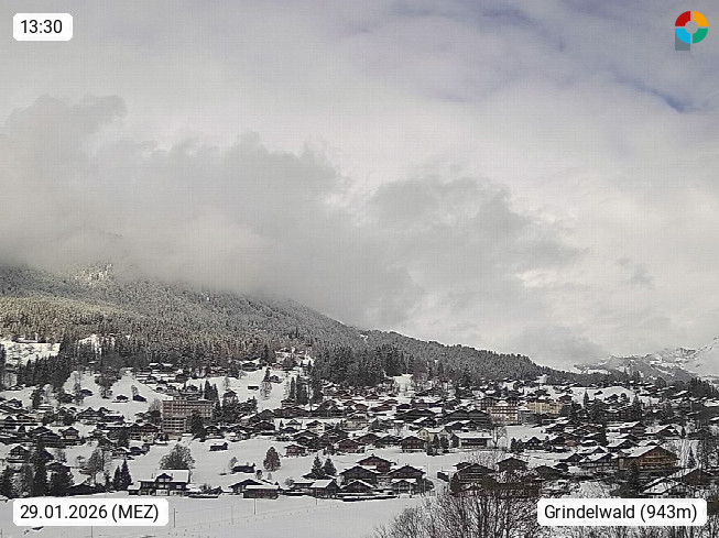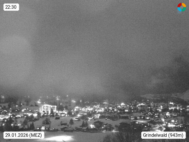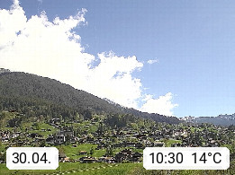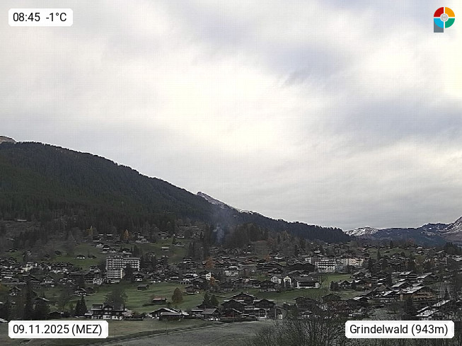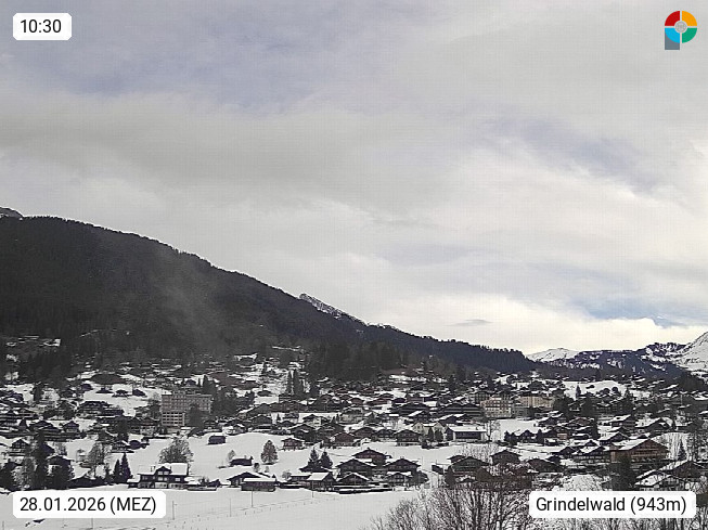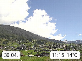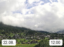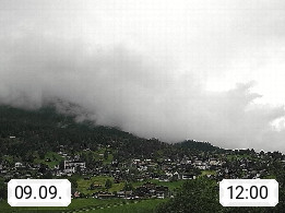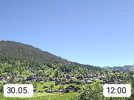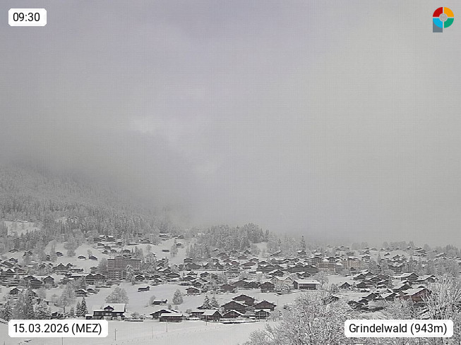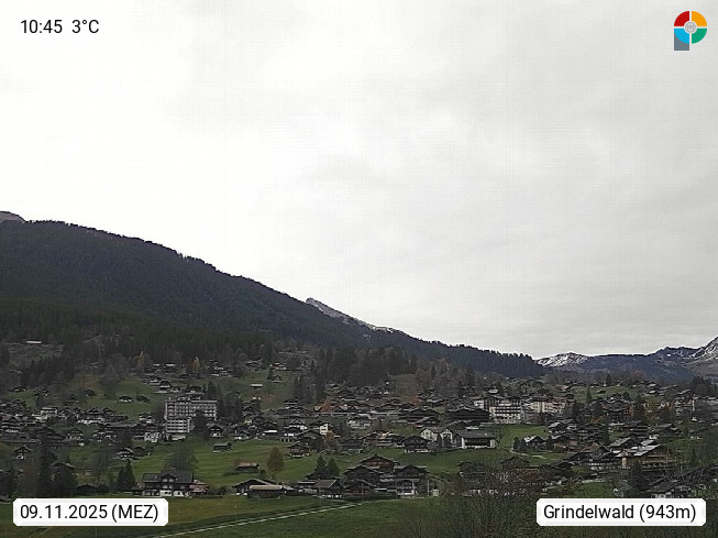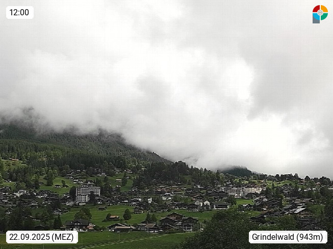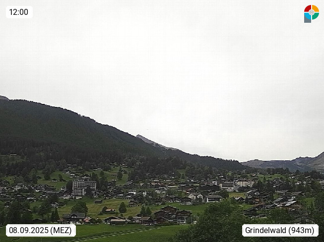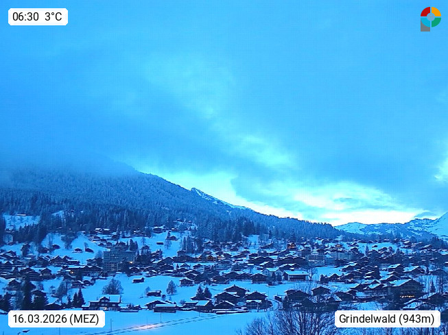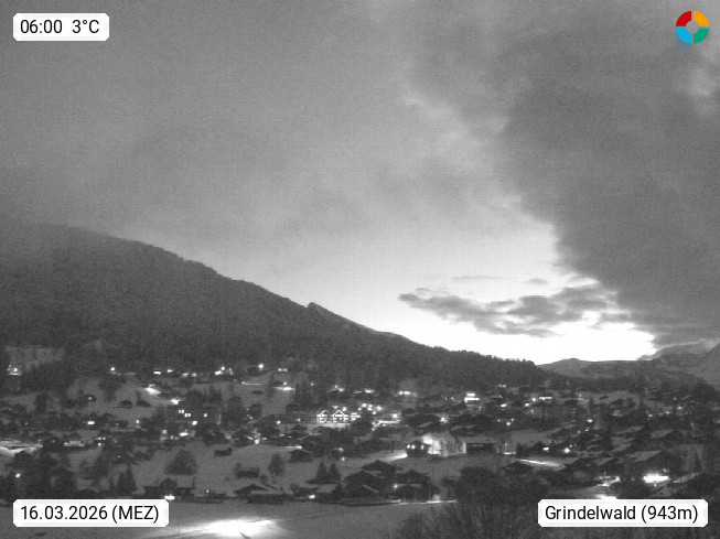 CH 3818 Grindelwald 1.034m, is a village in the district Interlaken in the canton Bern in region Bernese Oberland. The holiday resort presents with the mountains Wetterhorn 3.692m, Schreckhorn 4.078m, Eiger 3.970m, Moench 4.107m and Jungfrau 4.158m an impressing mountain landscape in the Alps of Bern. Panoramic view from the village centre in south direction to the mountain Wetterhorn 3.692m. Presented by https://www.grindelwald.net/.