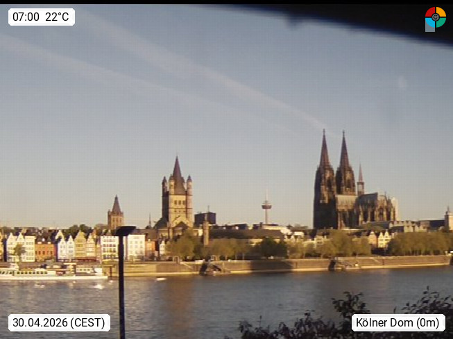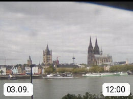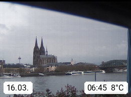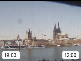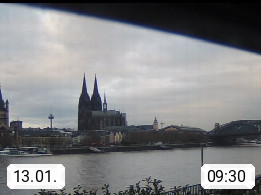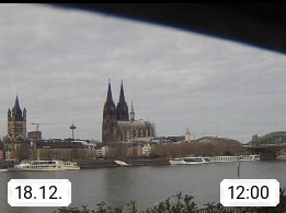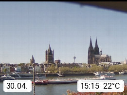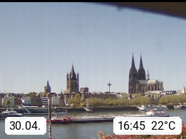 D 50679 Cologne 53m, until 1919 also called Coeln, in the Colognian dialect called Koelle, lies at the Rhine and is the largest city in the German state Nordrhein Westfalen. Colonia is located in the Colonian Bay of a valley landscape between the region Bergisch Land and the Eifel mountain range. Panoramic view from Kennedy Banks in west direction over the Rhine river to the Cologne Cathedral, the landmark of the city. Presented by https://restaurantoasis.de/.