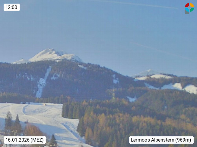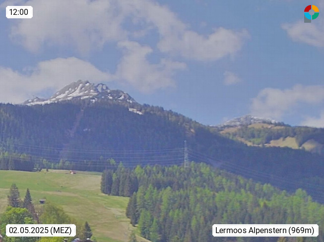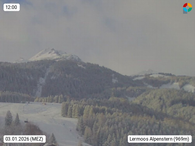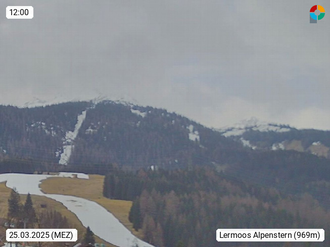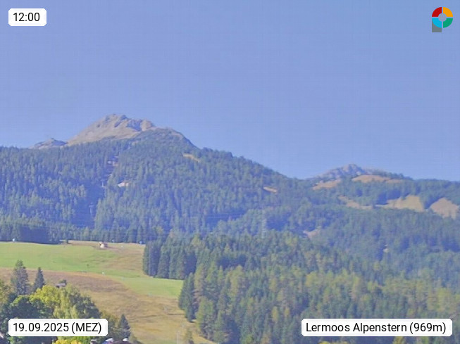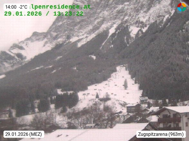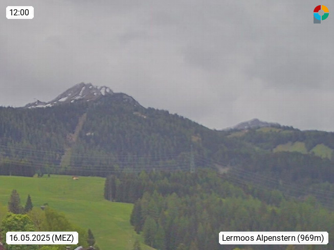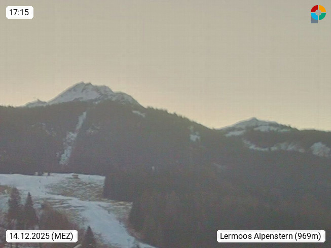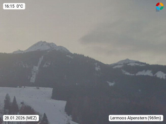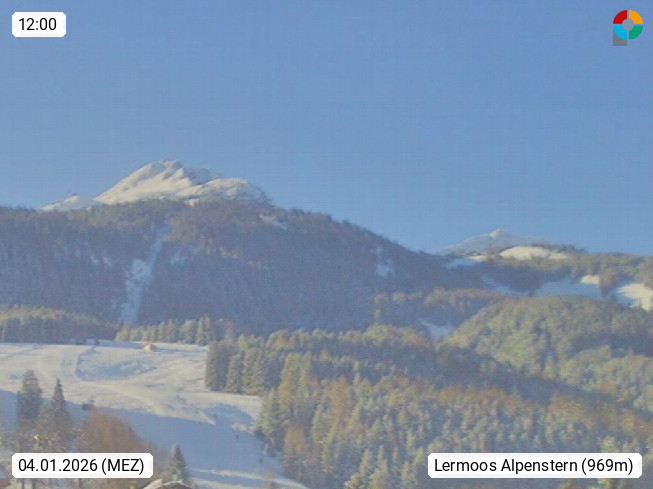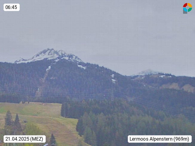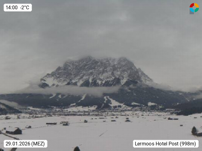 A 6631 Lermoos 1.004m, in the district Reutte in Ausserfern region between Lechtaler and Ammergauer Alps, Mieminger and the Wettersteingebirge mountains. View from the house Alpenstern in southwest direction to hiking and skiing mountain Mount Grubigstein 2.233m. Panoramic view to the Zugspitze, Germanys highest mountain with 2.962m. Presented by https://www.lermoos.net/.
