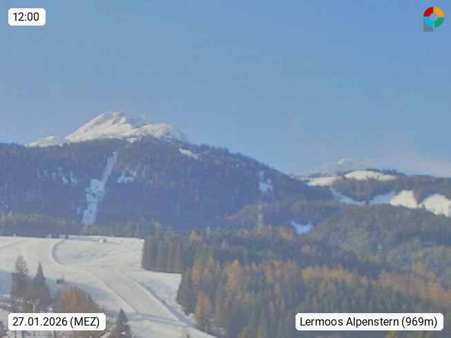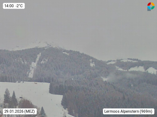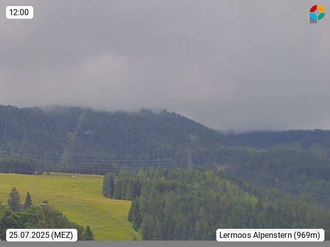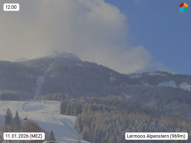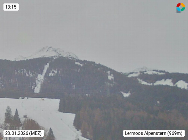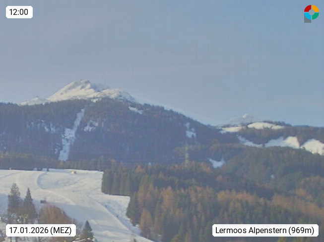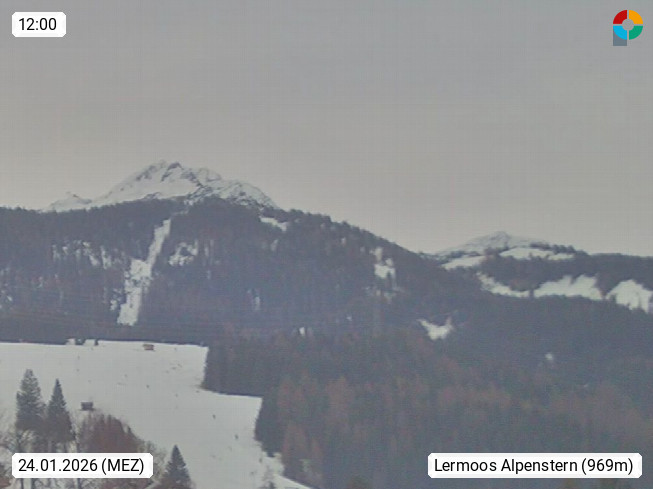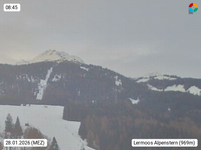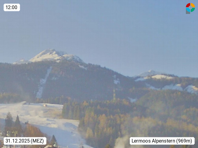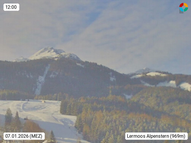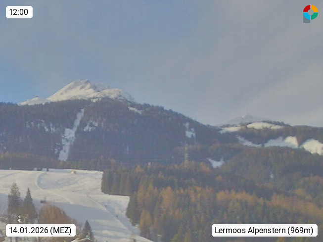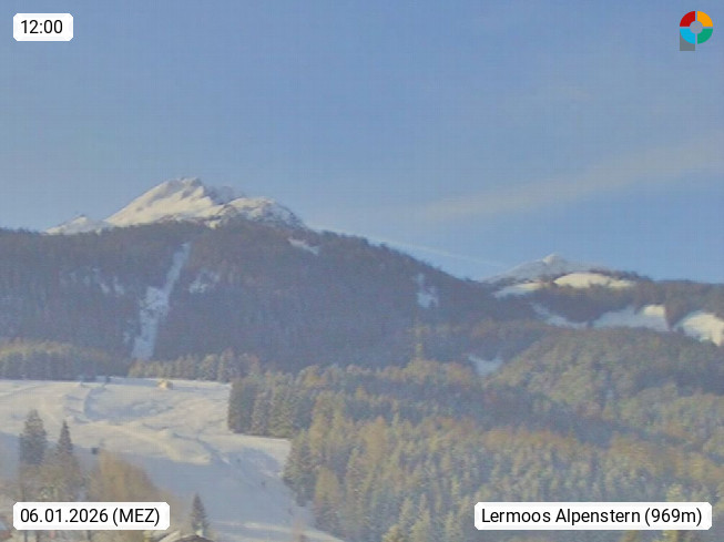 A 6631 Lermoos 1.004m, in the district Reutte in Ausserfern region between Lechtaler and Ammergauer Alps, Mieminger and the Wettersteingebirge mountains. View from the house Alpenstern in southwest direction to hiking and skiing mountain Mount Grubigstein 2.233m. Panoramic view to the Zugspitze, Germanys highest mountain with 2.962m. Presented by https://www.lermoos.net/.