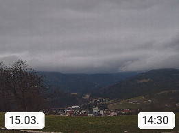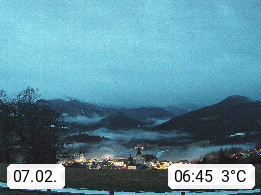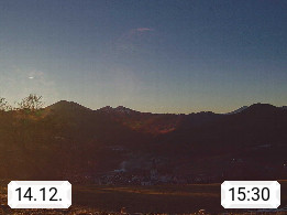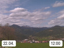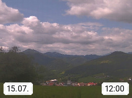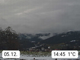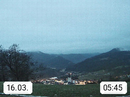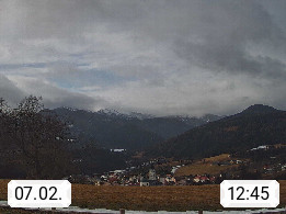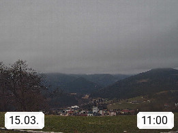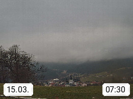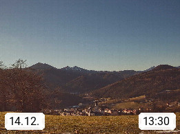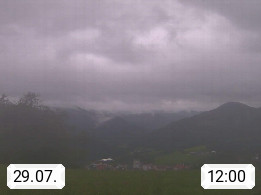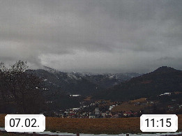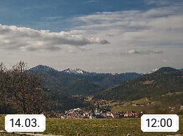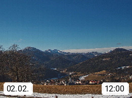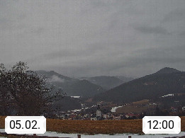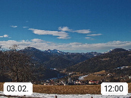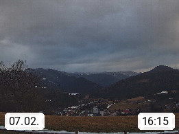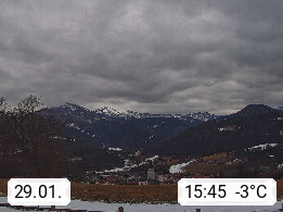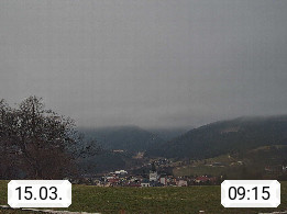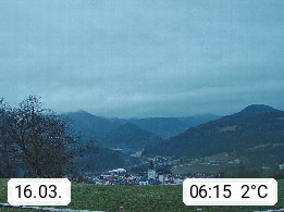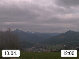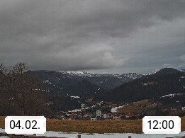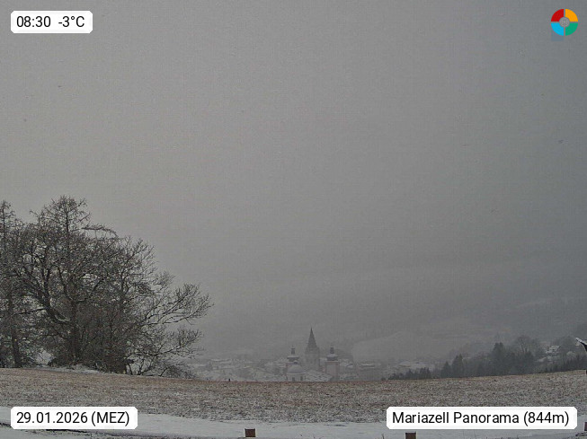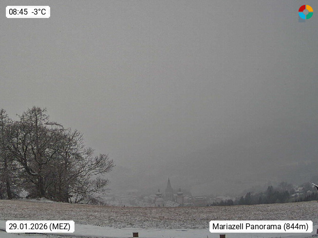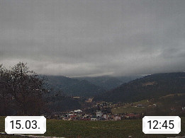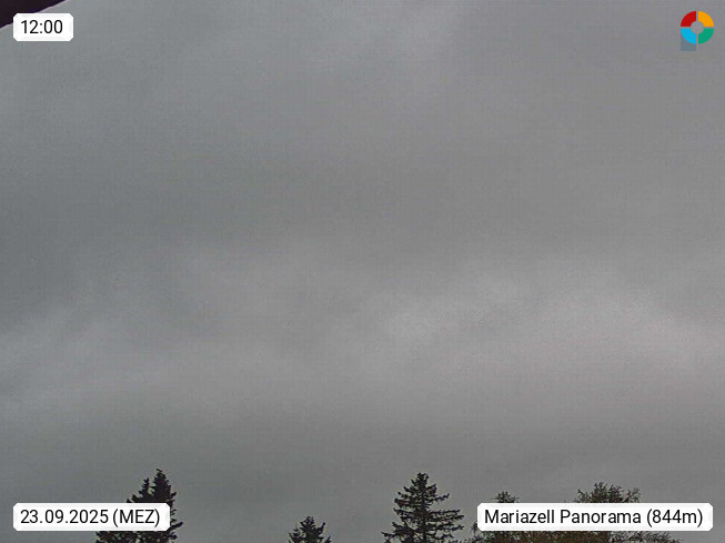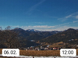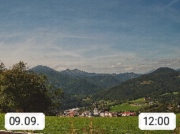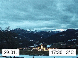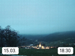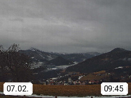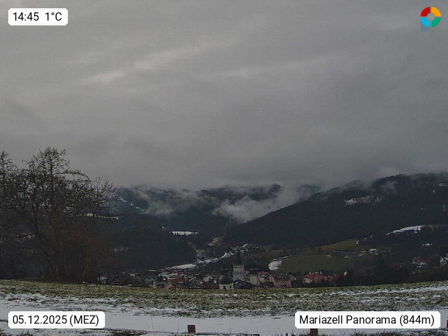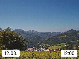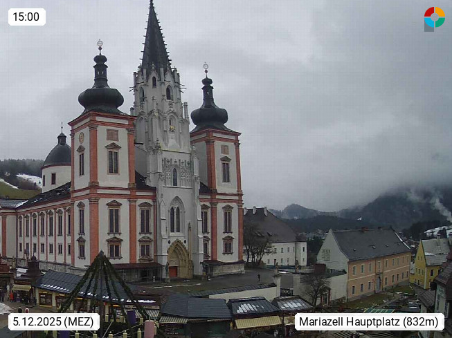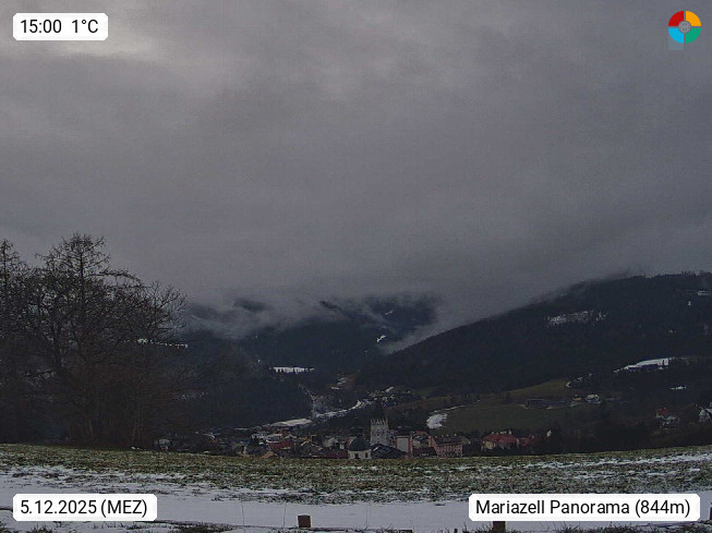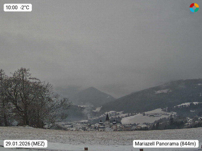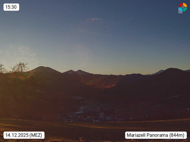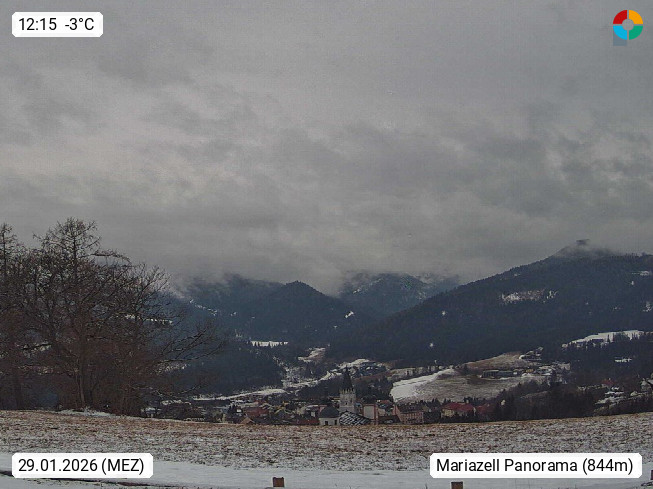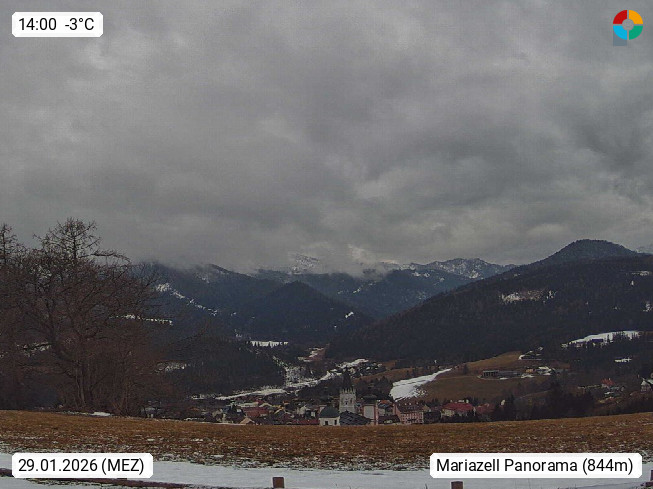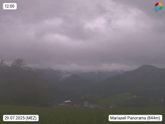 A 8630 Mariazell 868m, Austrias most important place of pilgrimage, which is located in the northern Upper Styria region in district Bruck at Mur. Panoramic view from the public observatory1.008m, in west direction to the steeples of the Basilica over Salzatal valley to Mount Zellerhut 1.689m and Duernstein village. Presented by http://www.sbm-web.at.