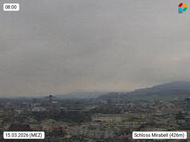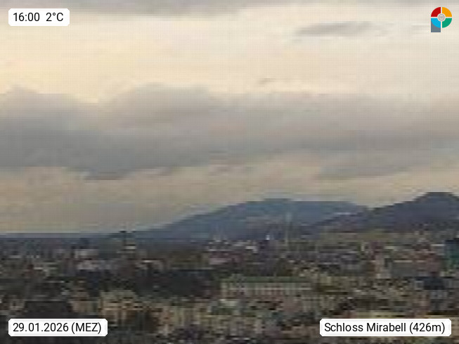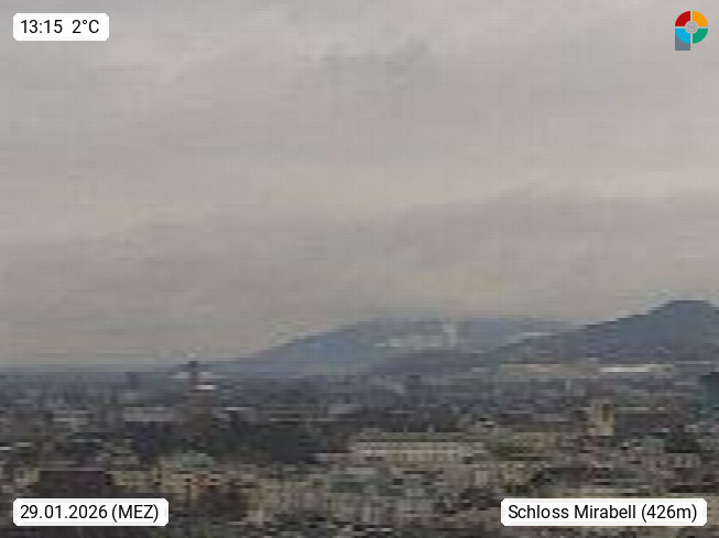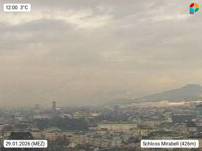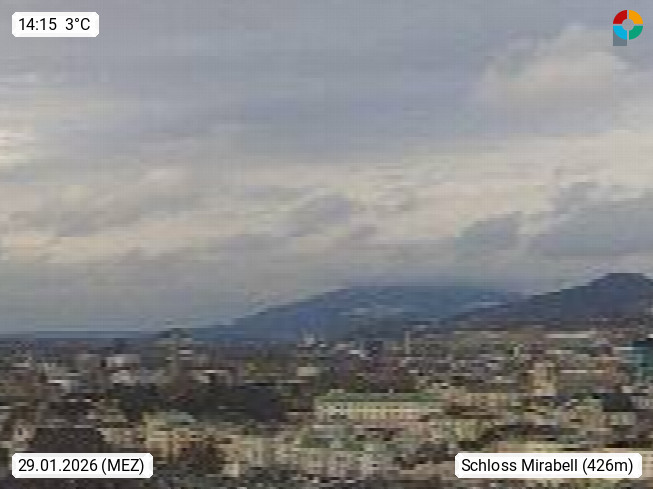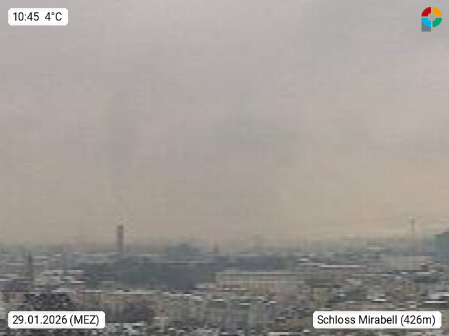 A 5024 Salzburg 424m, view in direction east over the over the Salzburg old town to Mirabell Palace with park, Andrae Church town district Schallmoos and Salzburg lake district. In the festival and Mozart town Salzburg are the oldest tunnel of Austria called Sigmunds Gate, Hohensalzburg Castle the biggest maintained fortress of Central Europe, the alpine canal the oldest water tunnel of the Middle Ages in Central Europe, the worldwide oldest cable railway, the worldwide best maintained Renaissance watergames in Hellbrunn and the Hellbrunn Alley. Promoted by http://www.panocams.at. Presented by https://www.salzburg-ag.at.