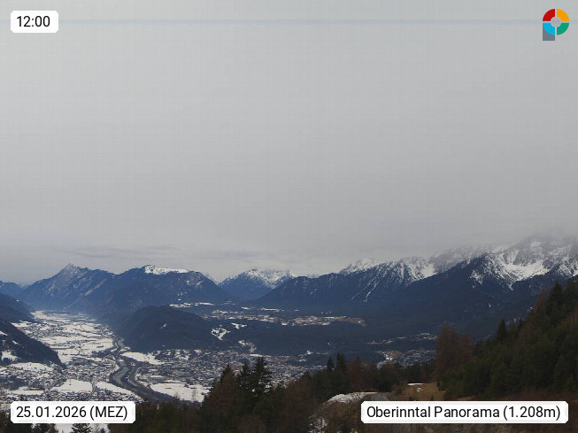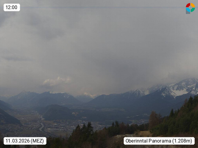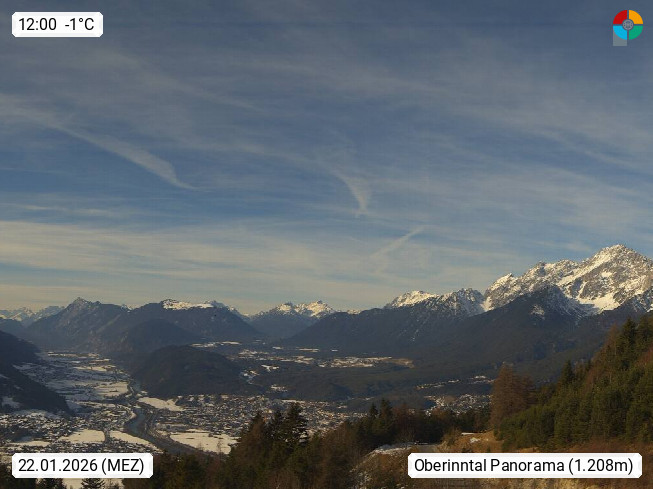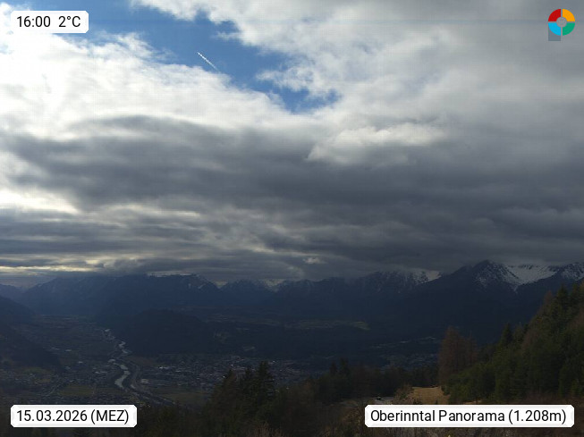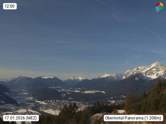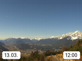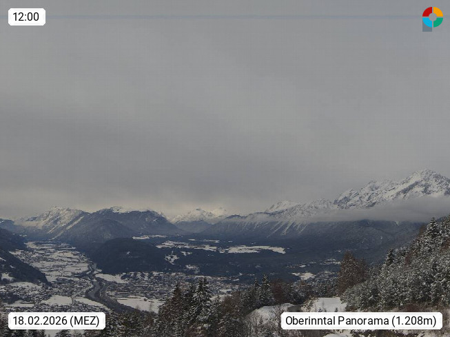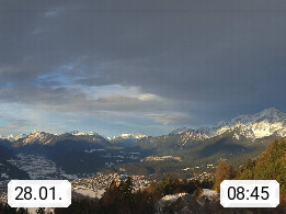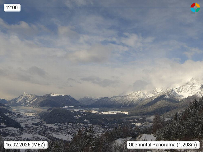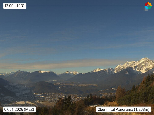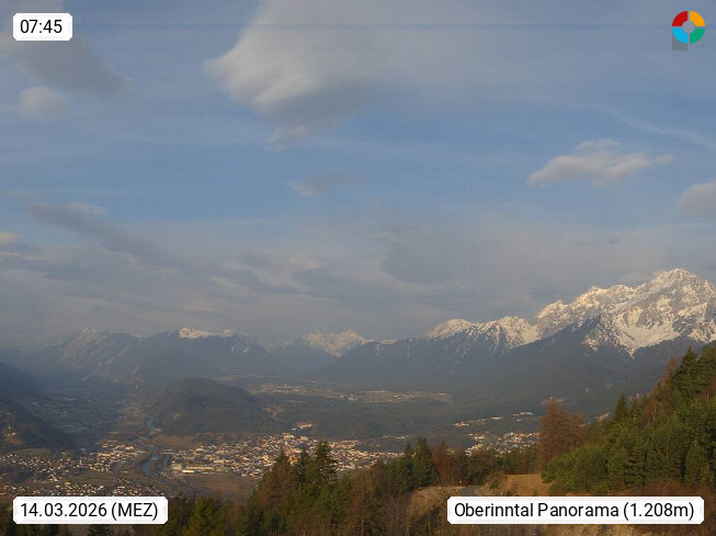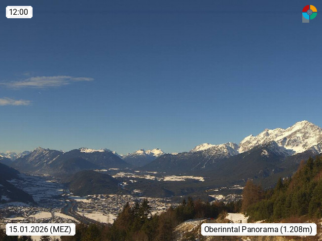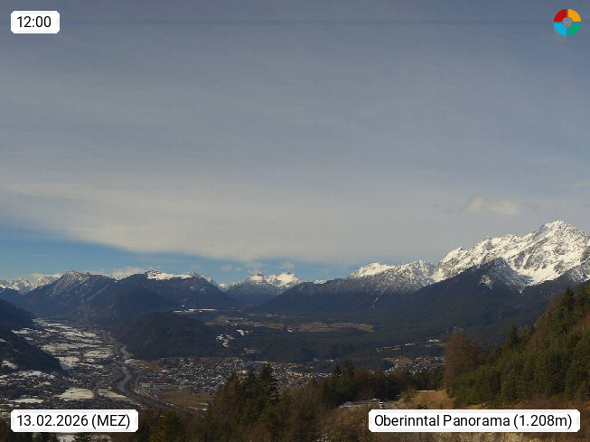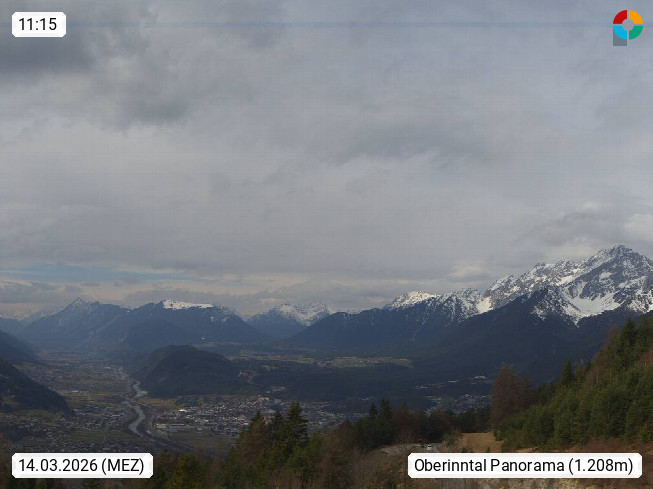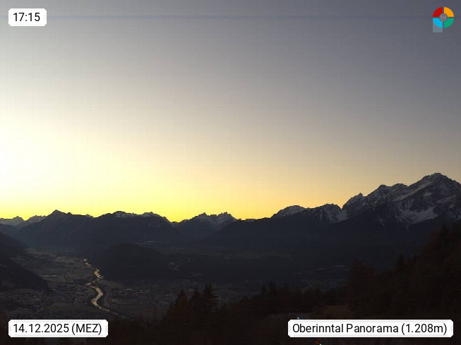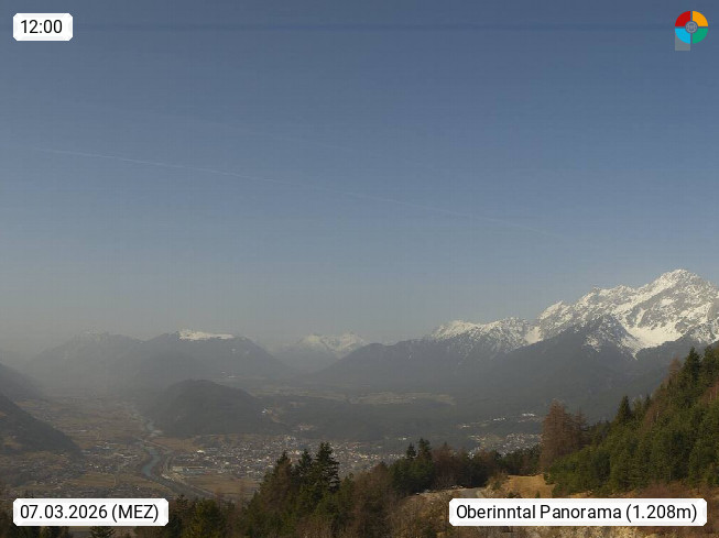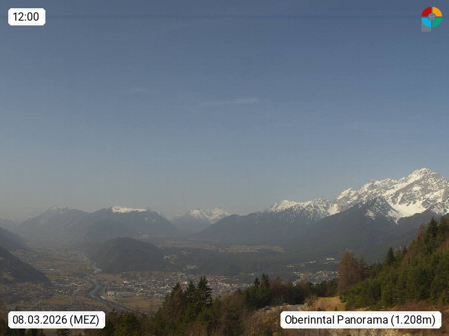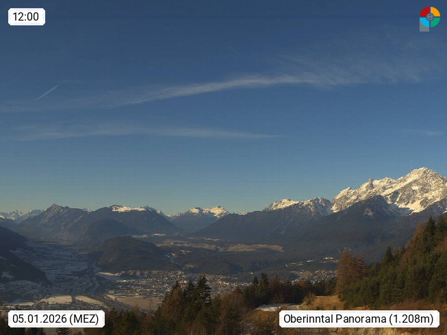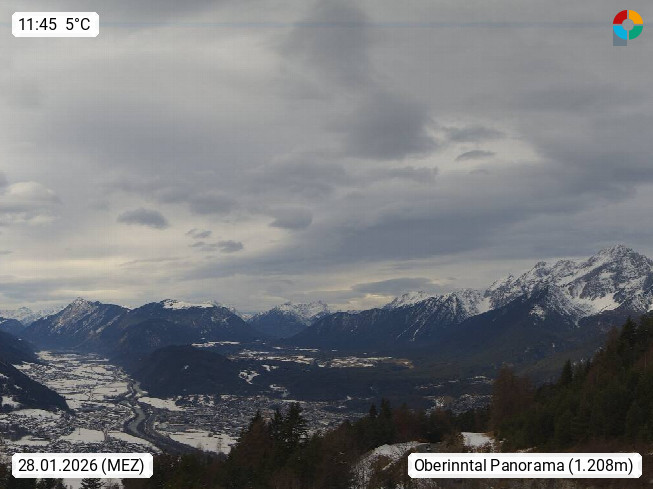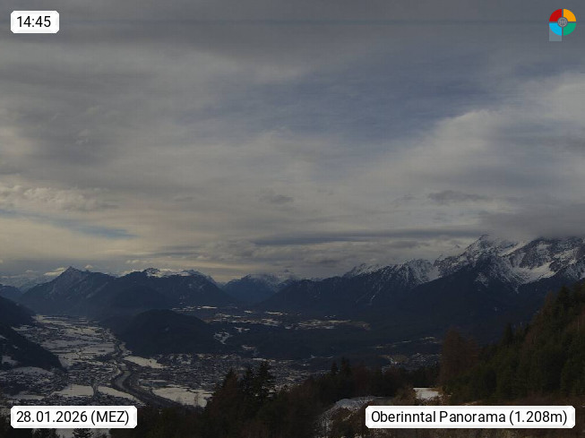 A 6100 Moesern near Seefeld 1.206m, Peace Village in the central Inn Valley, municipality Telfs, in the Olympic region of Seefeld. Panoramic view from Inntaler Hof toward the west, in fine weather to the Arlberg.To the left the Hocheder 2.796m and Rietzer Grießkogel 2.884m in the Stubai Alps. In the valley left of the Inn river you can see Oberpfaffenhofen and right the municipality Telfs. Presented by https://www.inntalerhof.at.