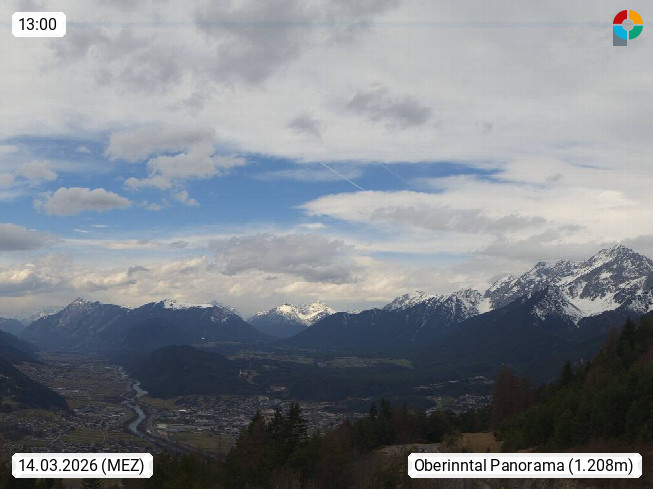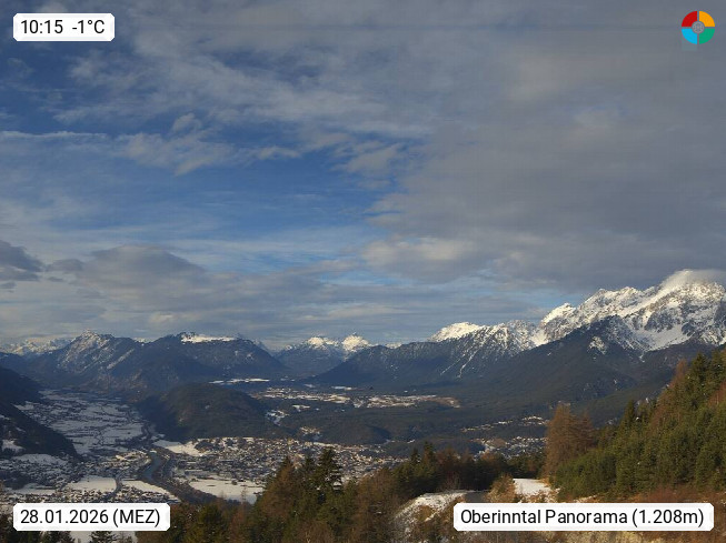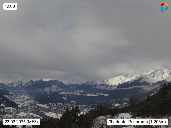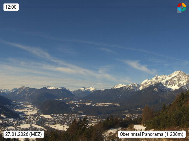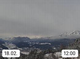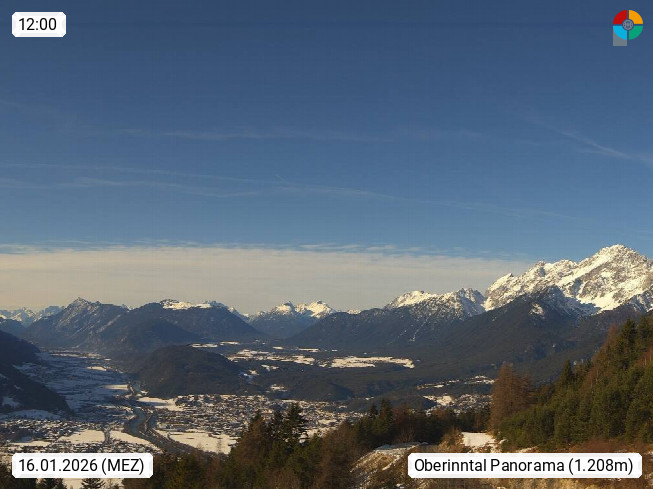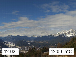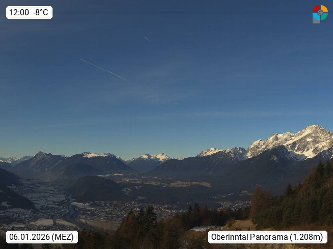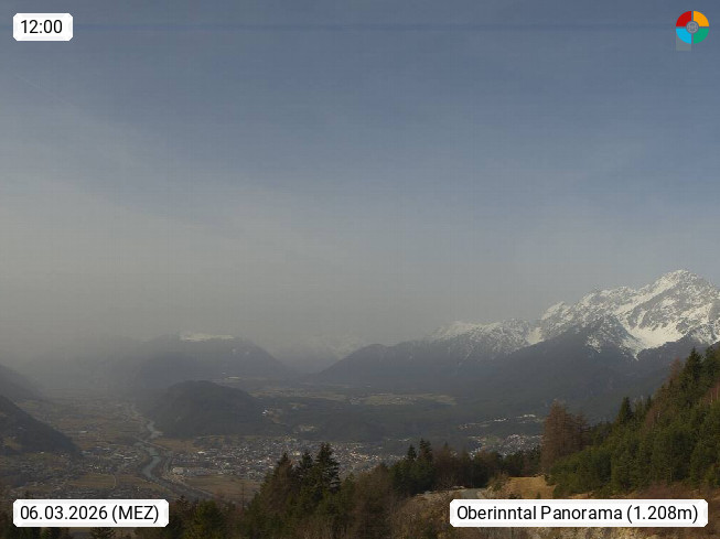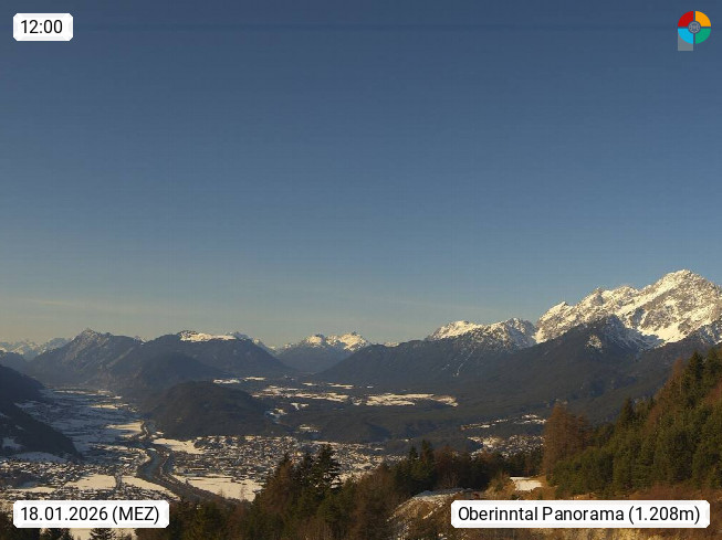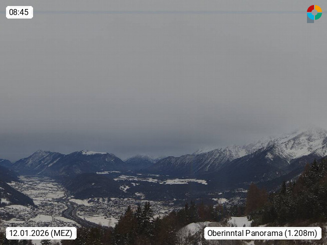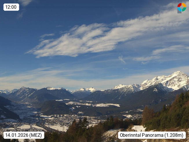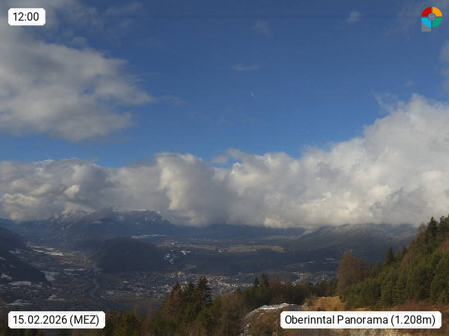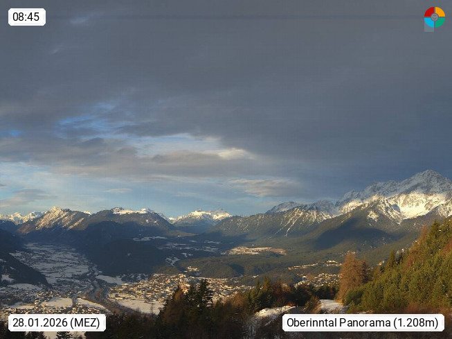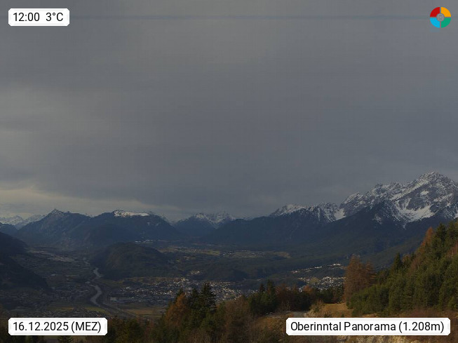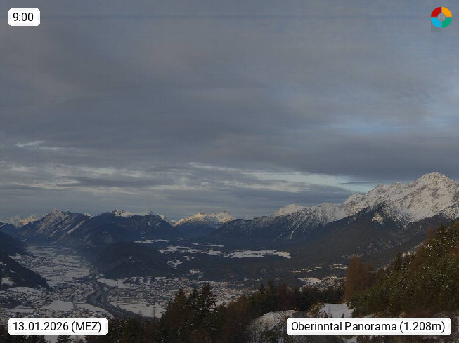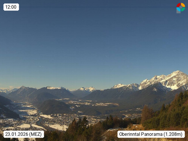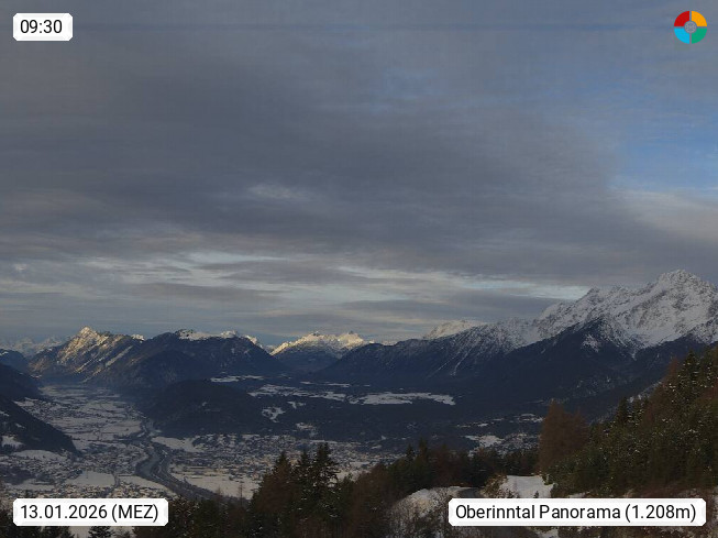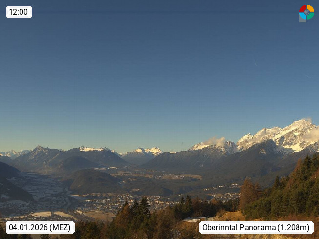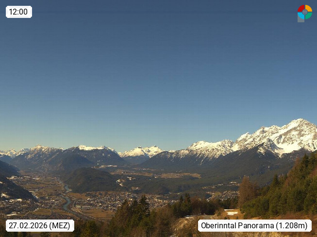 A 6100 Moesern near Seefeld 1.206m, Peace Village in the central Inn Valley, municipality Telfs, in the Olympic region of Seefeld. Panoramic view from Inntaler Hof toward the west, in fine weather to the Arlberg.To the left the Hocheder 2.796m and Rietzer Grießkogel 2.884m in the Stubai Alps. In the valley left of the Inn river you can see Oberpfaffenhofen and right the municipality Telfs. Presented by https://www.inntalerhof.at.