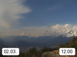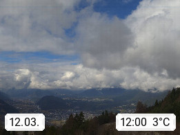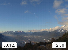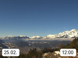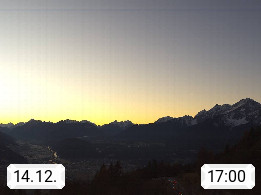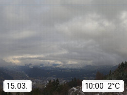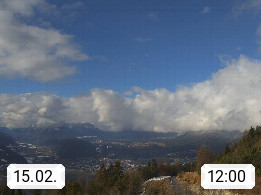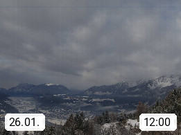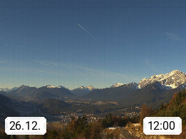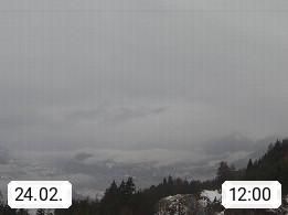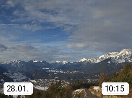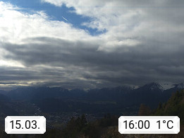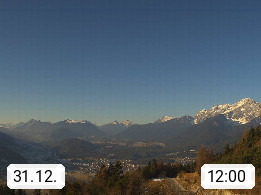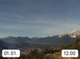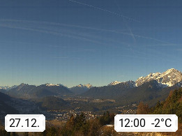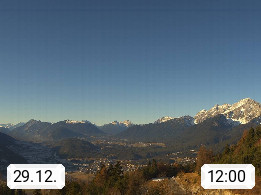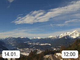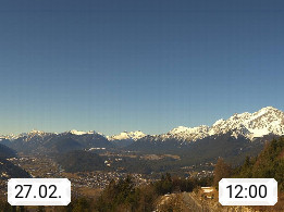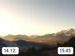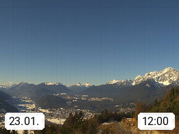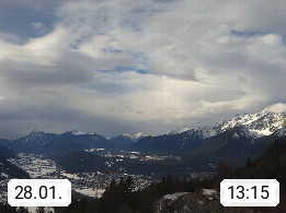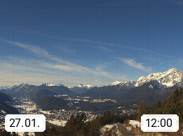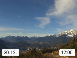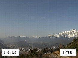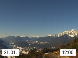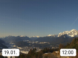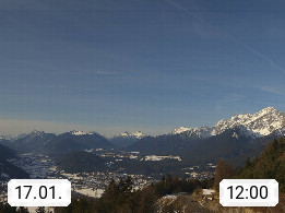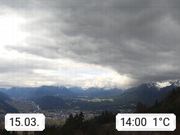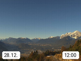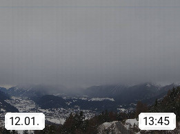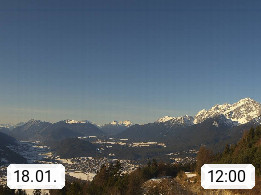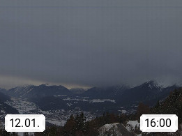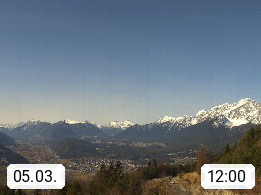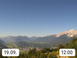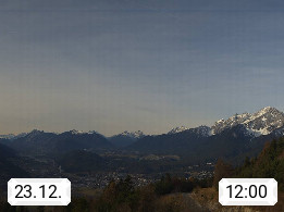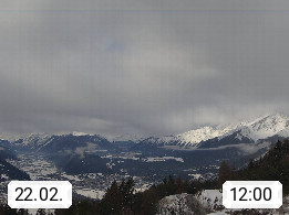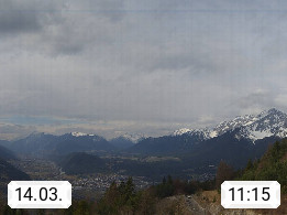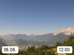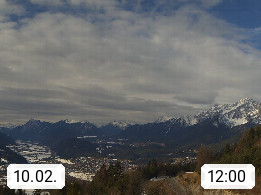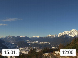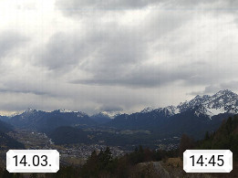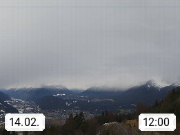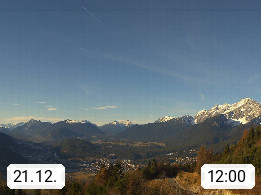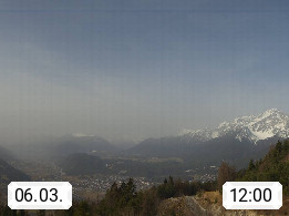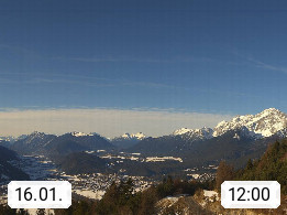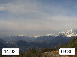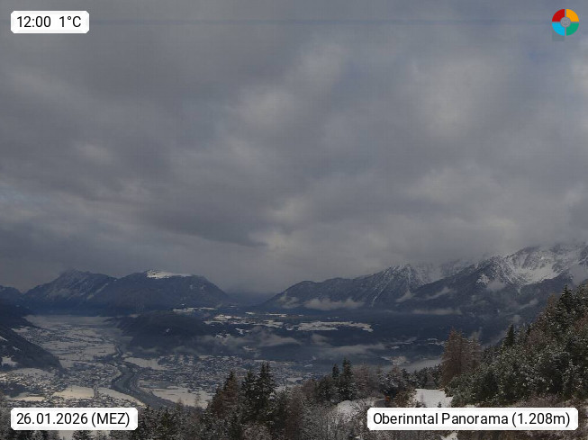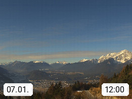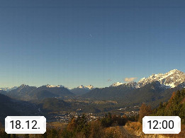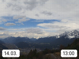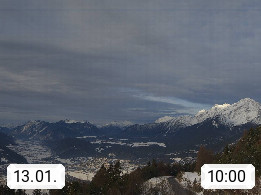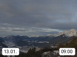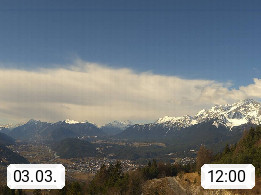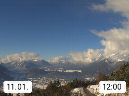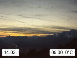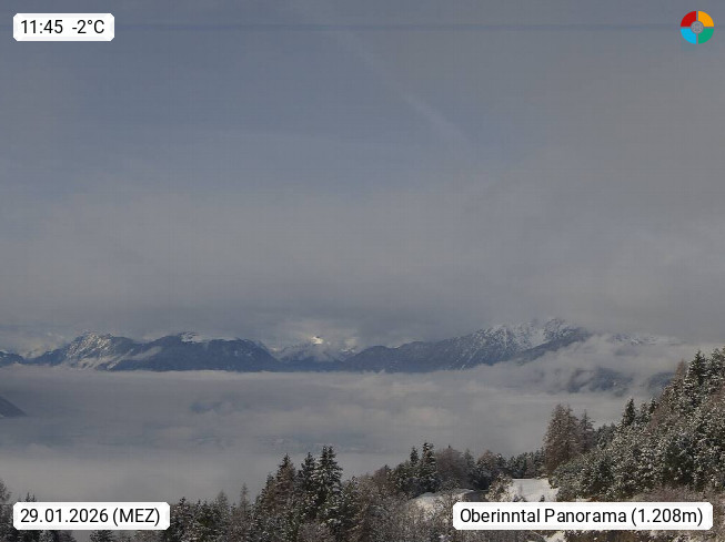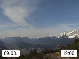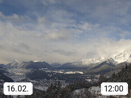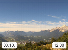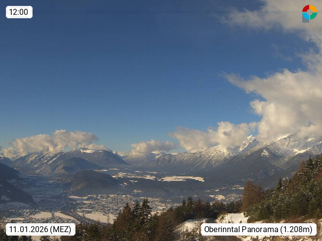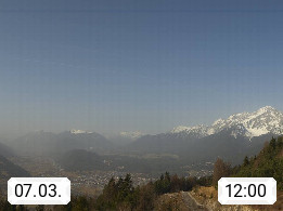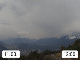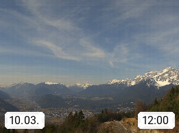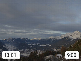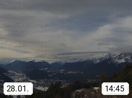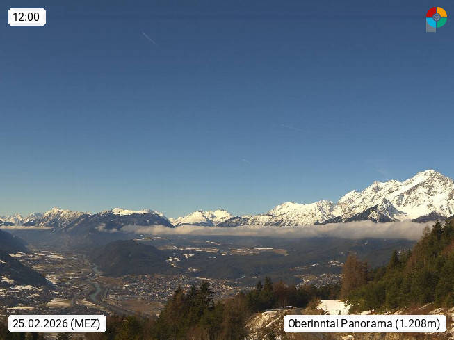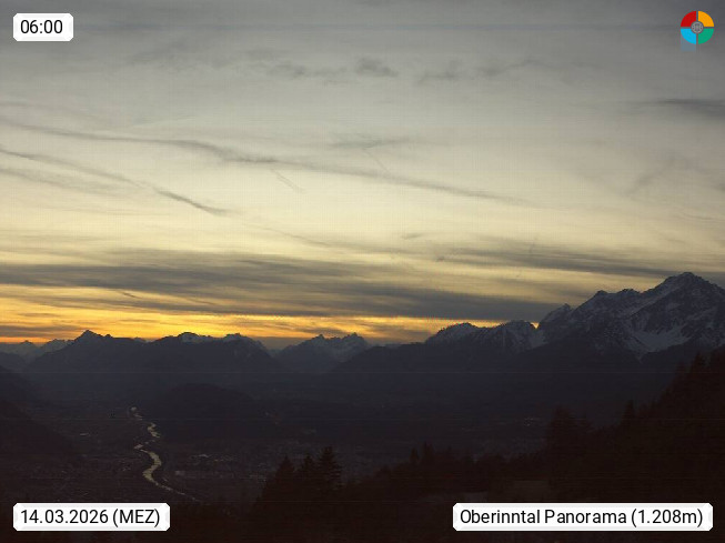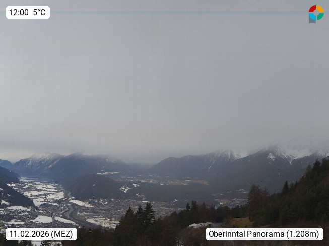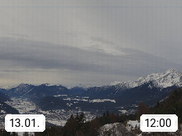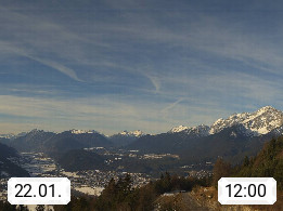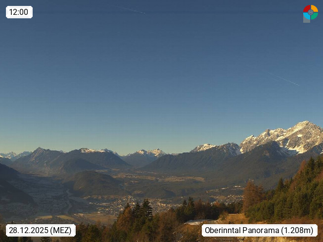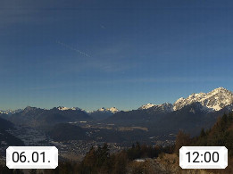 A 6100 Moesern near Seefeld 1.206m, Peace Village in the central Inn Valley, municipality Telfs, in the Olympic region of Seefeld. Panoramic view from Inntaler Hof toward the west, in fine weather to the Arlberg.To the left the Hocheder 2.796m and Rietzer Grießkogel 2.884m in the Stubai Alps. In the valley left of the Inn river you can see Oberpfaffenhofen and right the municipality Telfs. Presented by https://www.inntalerhof.at.