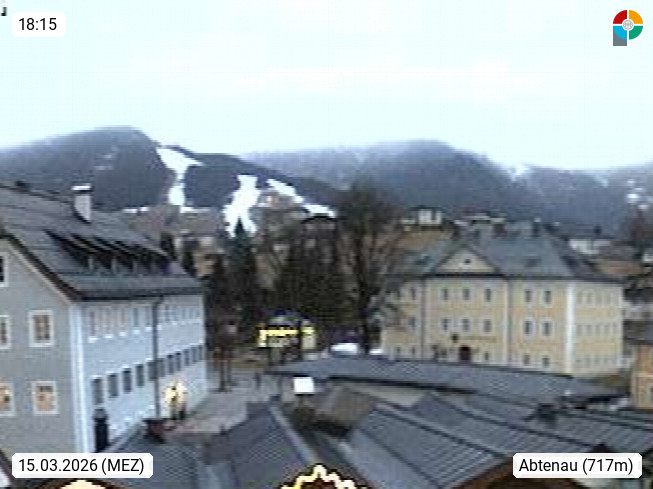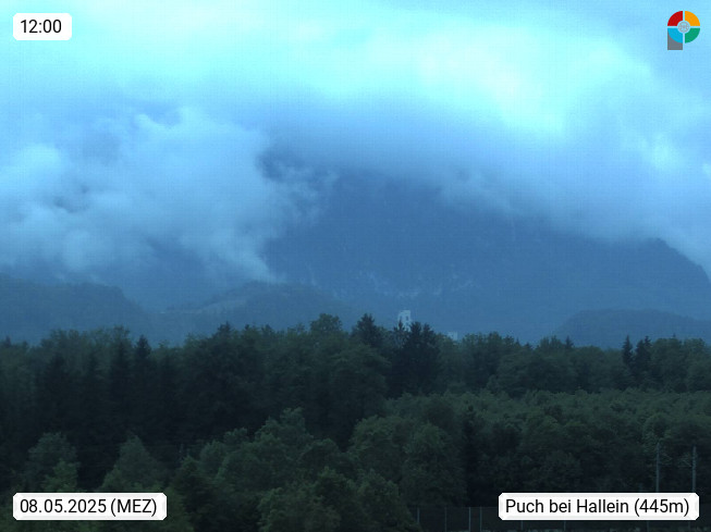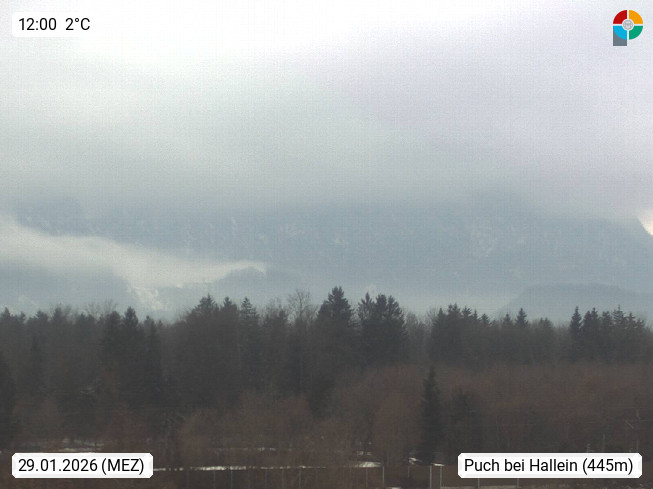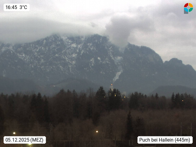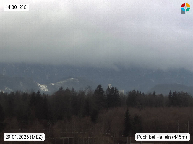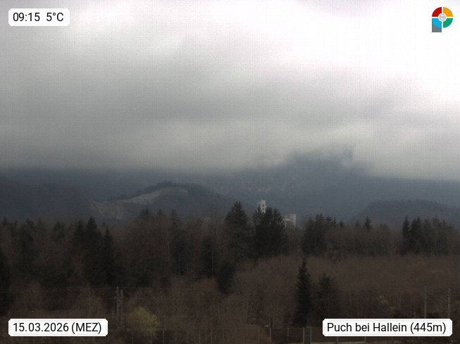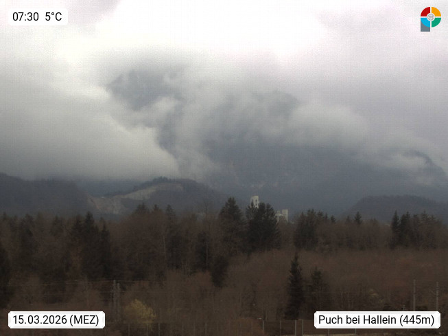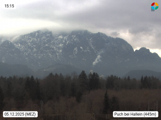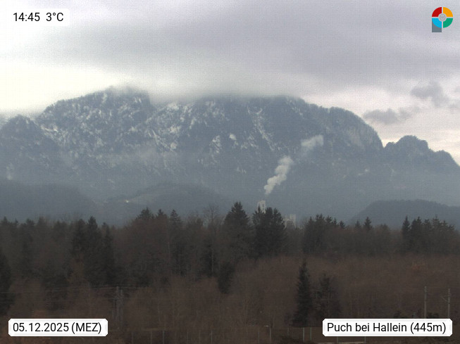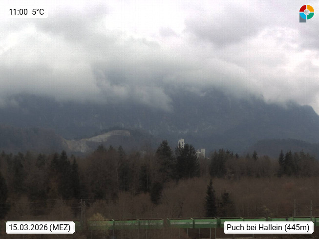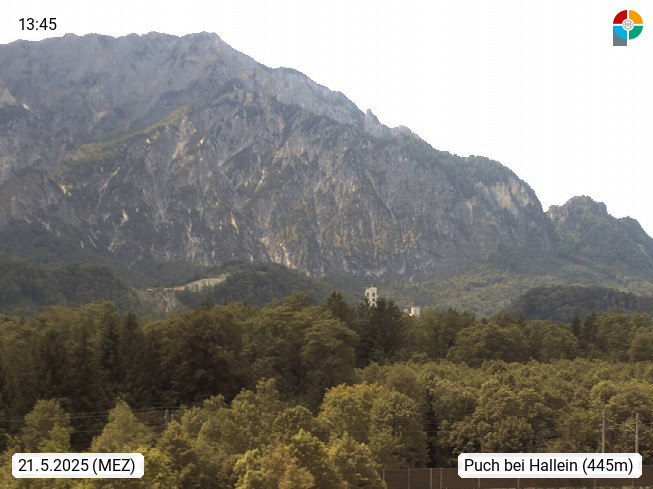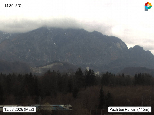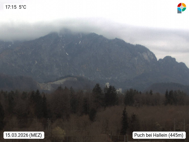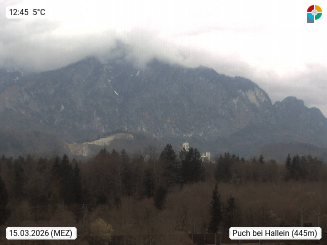 A 5412 Puch at Hallein 444m, is a municipality in the region Salzburger Land in the district Hallein, approximate 10 km south of Salzburg city. Panoramic view in northwest direction to Untersberg mountain, the most northern foothills of the Berchtesgadener Alps with the mountains Berchtesgadener 1.973m and Salzburger 1.853m HOCHTRON. Presented by https://www.kirchenwirt.at/.