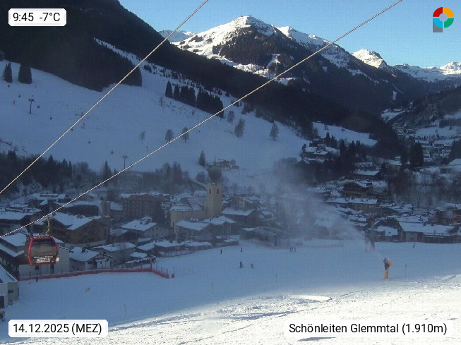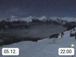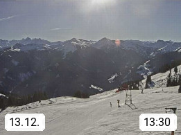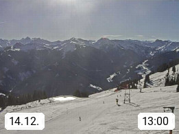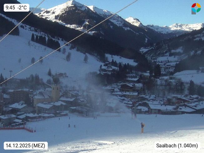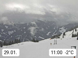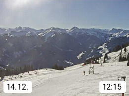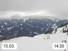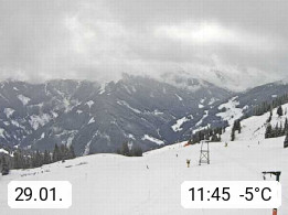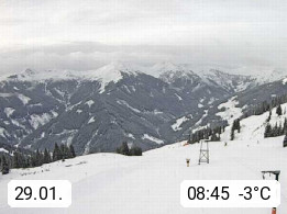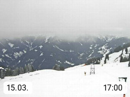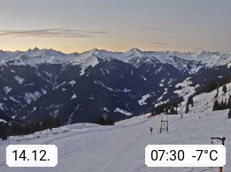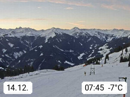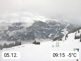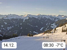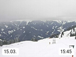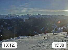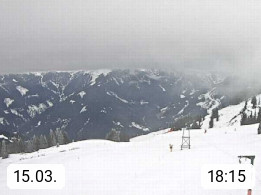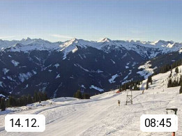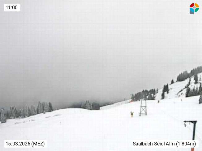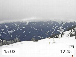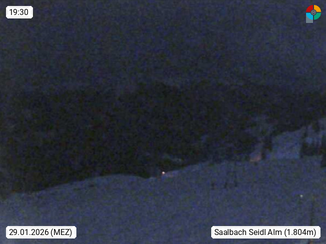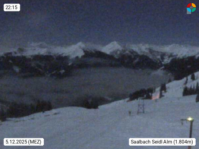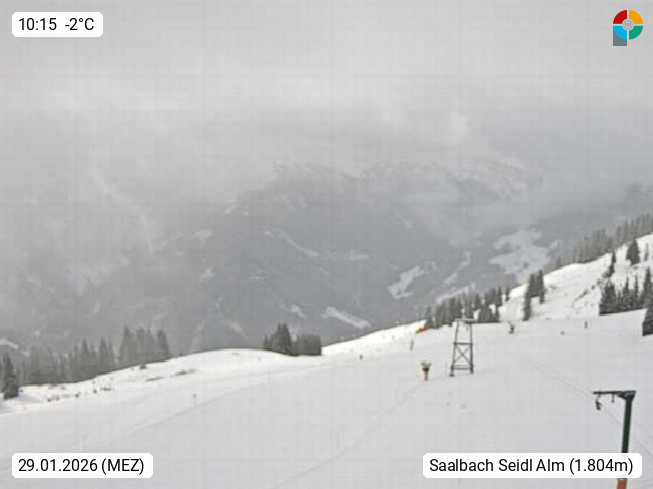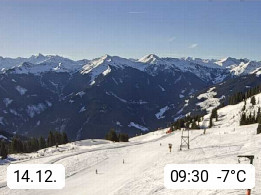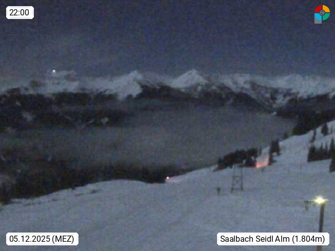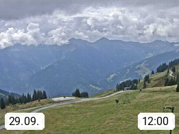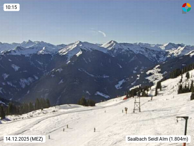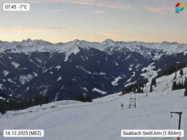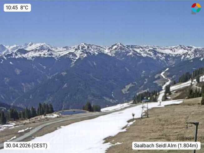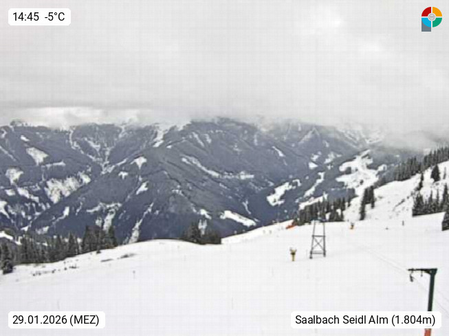 A 5753 Saalbach Hinterglemm Seidl Alp 1.804m, Holidayresort in the region Pinzgau in the valley of the river Saalach, wich runs from west to east and belongs to the region of the Kitzbuehler Alps. Panoramic view from the mountain restaurant and Hotel Seidl Alp in 1.804m in south direction to Mount Schattberg 2.095m. Presented by https://seidl-alm.com.