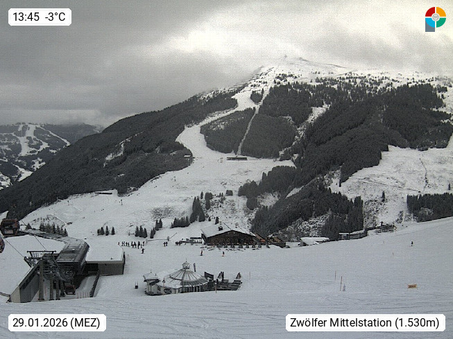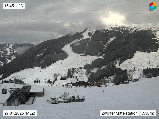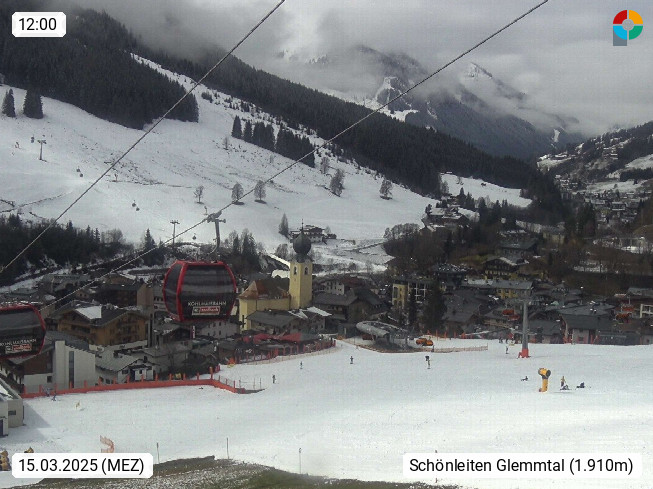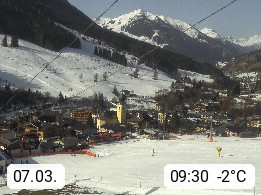 A 5753 Saalbach Hinterglemm 1003m, Holidayresort in the region Pinzgau in the valley of the river Saalach, wich runs from west to east and belongs to the region of the Kitzbuehler Alps in the district Zell am See. Panoramic view over the Schoenleiten at Mount Asitz Kogel 1.910m in the skiing area Skischaukel Saalbach - Leogang in west direction to the Glemmtal valley. Presented by https://www.saalbach.com/.