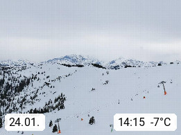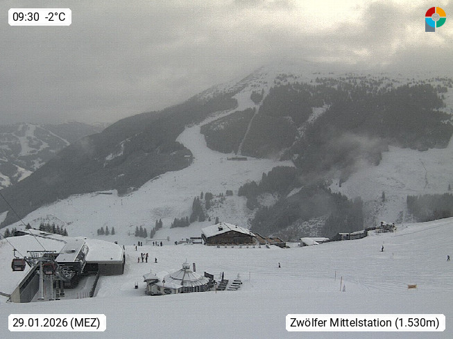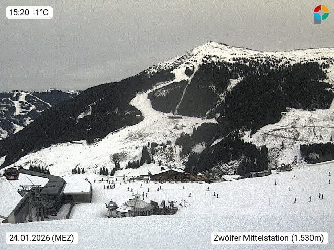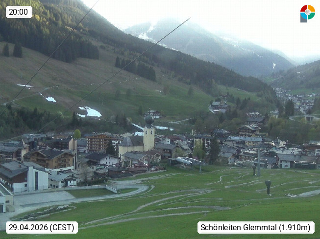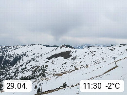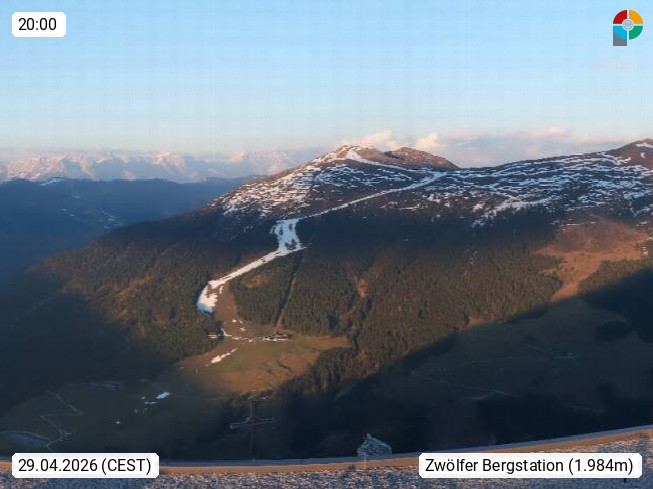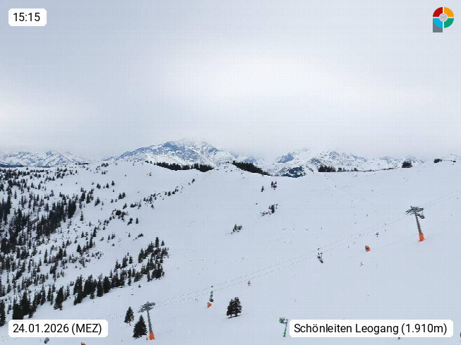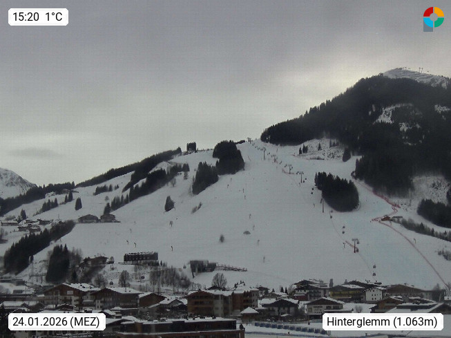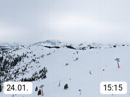 A 5753 Saalbach Hinterglemm 1003m, Holidayresort in the region Pinzgau in the valley of the river Saalach, wich runs from west to east and belongs to the region of the Kitzbuehler Alps in the district Zell am See. Panoramic view over the Schoenleiten at Mount Asitz Kogel 1.910m in the skiing area Skischaukel Saalbach - Leogang. In the background in east direction are the peaks of the Steinernes Meer mountain range. Presented by https://www.saalbach.com/.