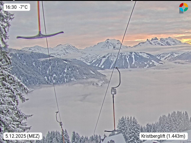 A 6780 Silbertal Kristberg 1.425m, located in a side valley of Montafon in the Verwall Alps in district Bludenz. View towards the east over children's land of ski school Silbertal to the rear Silbertal with the Lobspitzmassiv 2.605m, Fellimännlegipfe 2.209m and Valschavieler Maderer 2.769m. Deine Erholungsinfo gibt es auf www.montafon.at