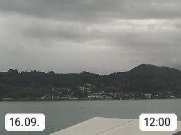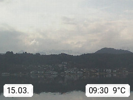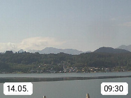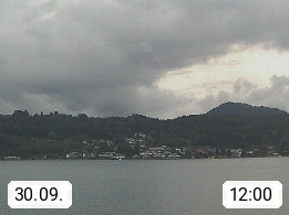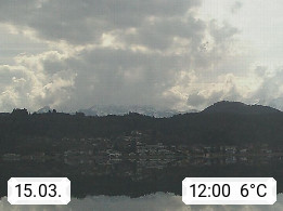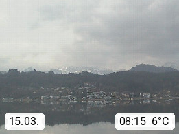 A 9212 Techelsberg on Woerthersee 465m, village in the district Klagenfurt Land. View from the KELAG power plant Forstsee, first storage power station of Carinthia, which has been started in 1925 and it lies between Velden and Pörtschach, southwest direction. On a clear day you can see the Karawanken mountains in the background. Promoted by http://www.kelag.at. Presented by https://www.woerthersee.info.