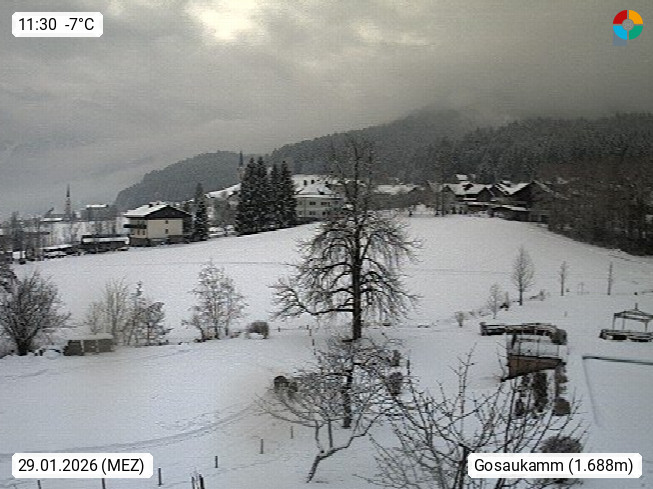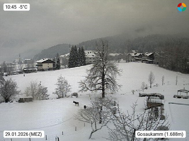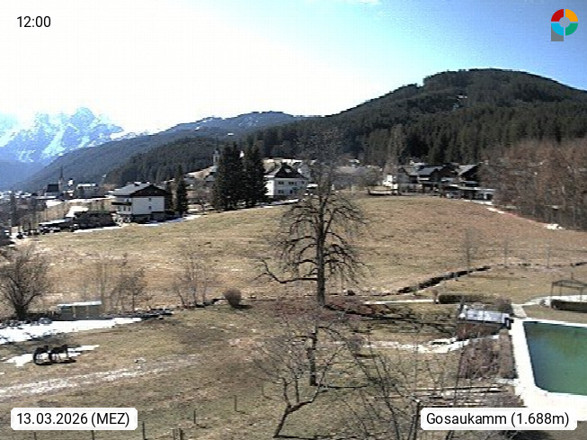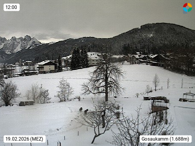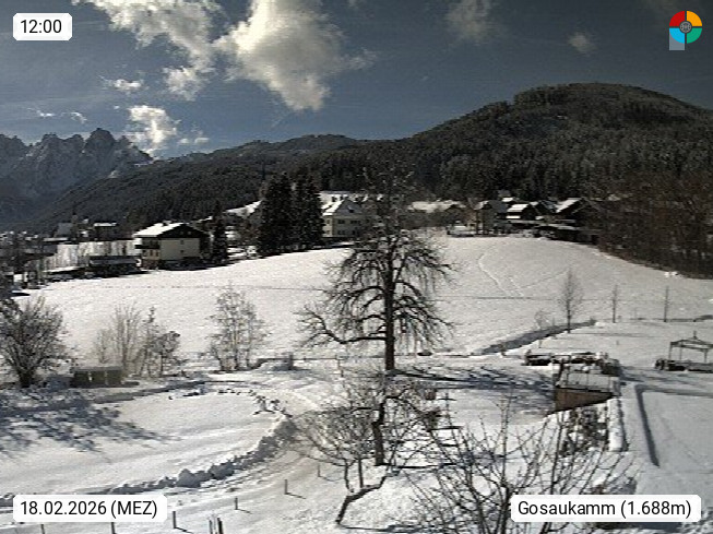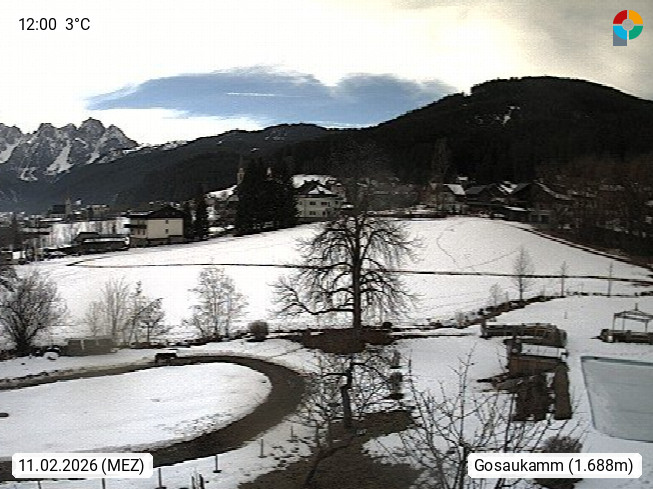 A 4824 Gosau Gosau 767m, im Bezirk Gmunden im Traunviertel, Blick Richtung Süden zum Gosaukamm, mit seinem schroffen Felsgrat mit Höhen über 2.000 Meter, eine unverwechselbare Kulisse an der Grenze zwischen den Bundesländern Salzburg und Oberösterreich. Presented by https://www.hotel-koller.com.