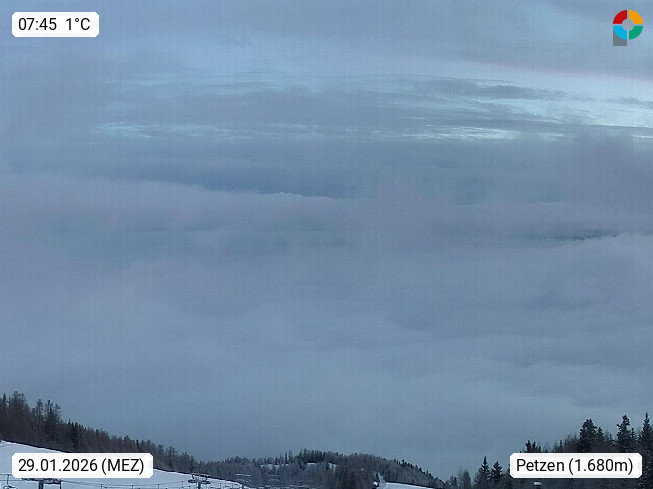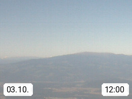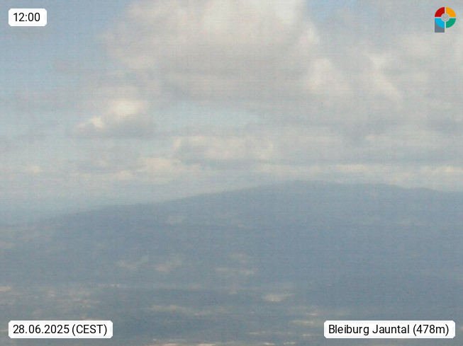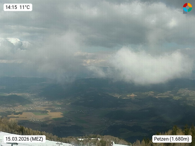 A 9150 Bleiburg slow. Pliberk 479m, Stadt im Bezirk Völkermarkt im Jauntal am Fuße der Petzen slow. Peca 2.126m. Panoramablick von der Bergstation der Petzen Seilbahn in 1.700m Richtung Norden über die Stadt Bleiburg und das Jauntal. Im Hintergrund sieht man die Saualpe, Mittelgebirgszug verlaufend vom Klippitztörl bis zum Drautal. Präsentiert von https://www.kelag.at.