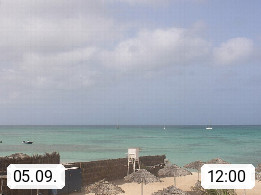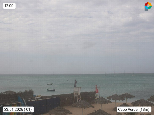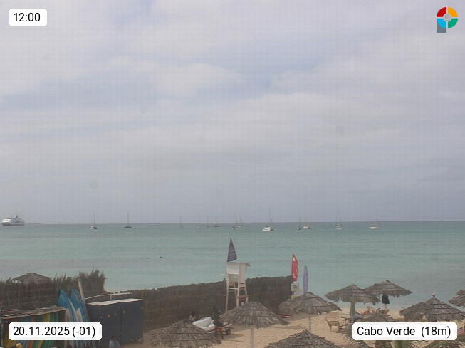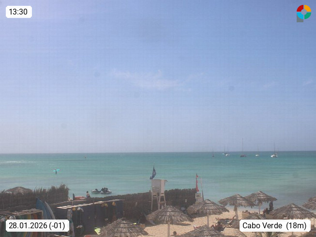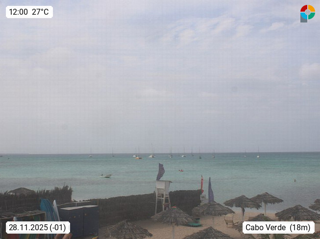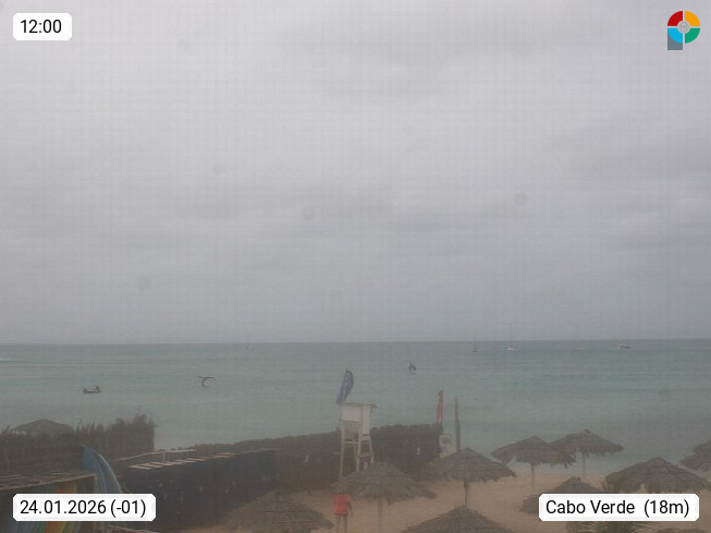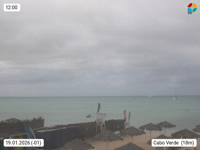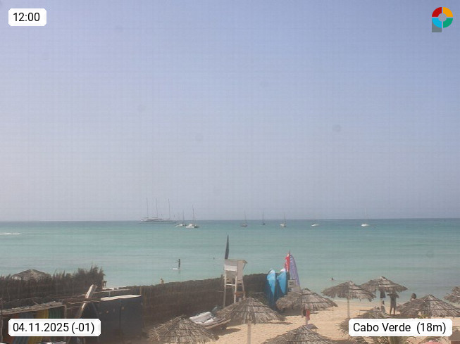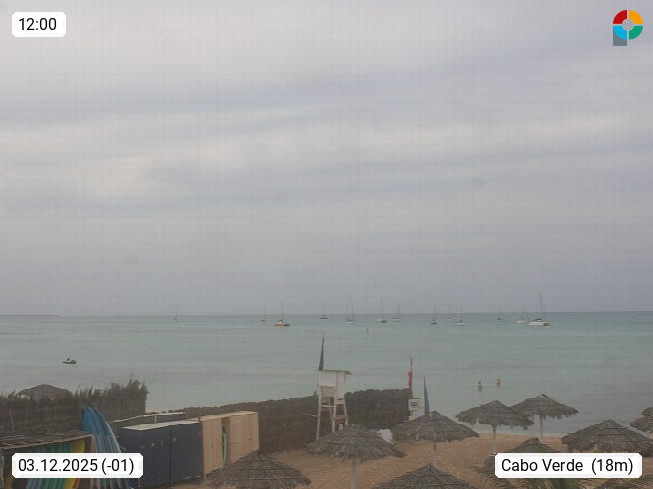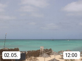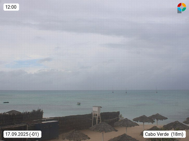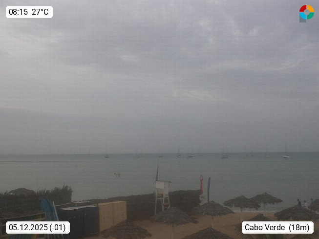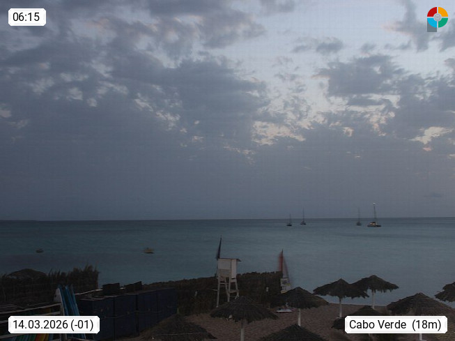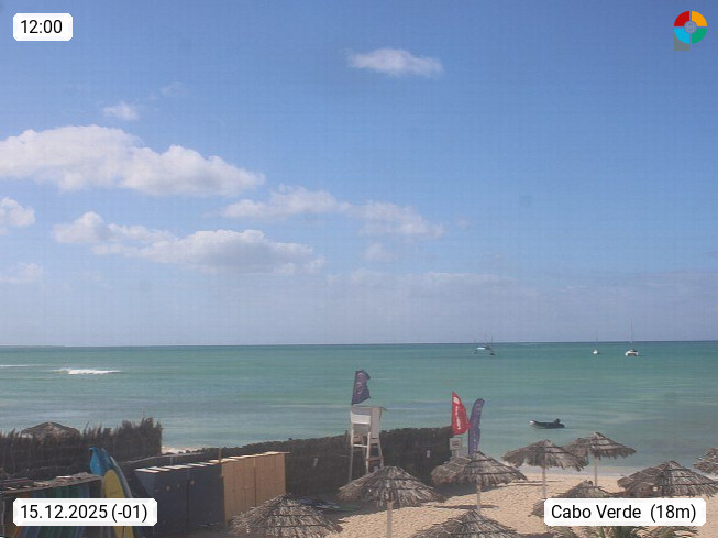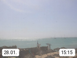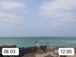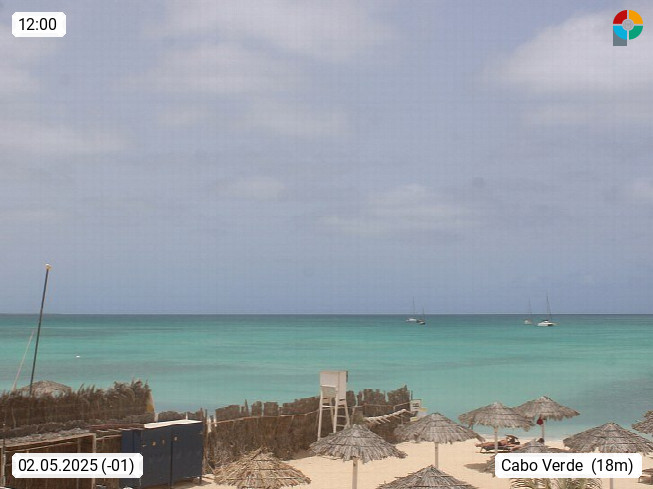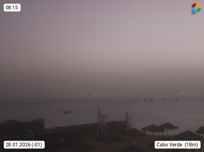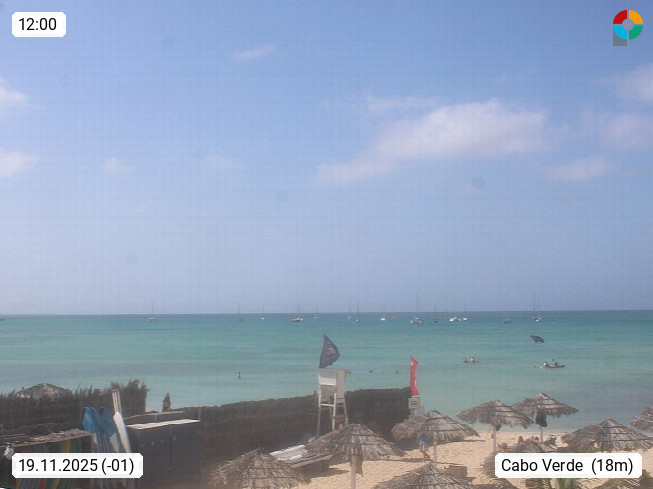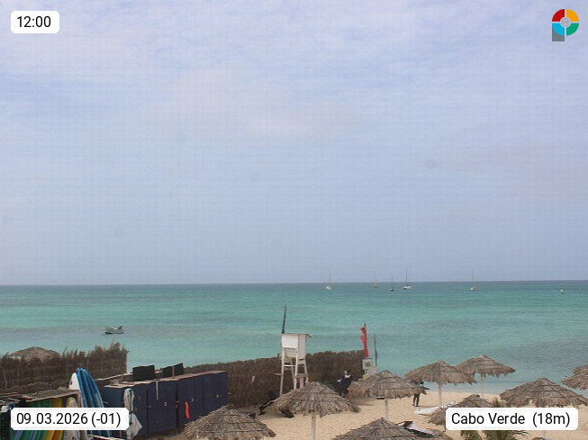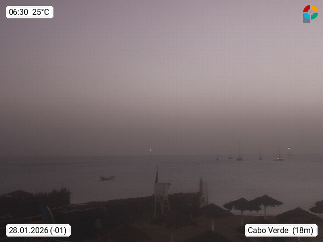 Kap Verde (Cabo Verde), Kapverden, Kapverdische Inseln, ist ein afrikanischer Inselstaat mit insgesamt 15 Inseln, 460 Kilometer vor der Westküste Afrikas. Die Inseln werden unterschieden zwischen den Inseln über dem Wind (Barlavento) und unter dem Wind (Sotavento). Blick über den Strand bei Boa Vista, auf der Insel Sal Richtung Westen. Präsentiert von https://www.addicted-sports.com.