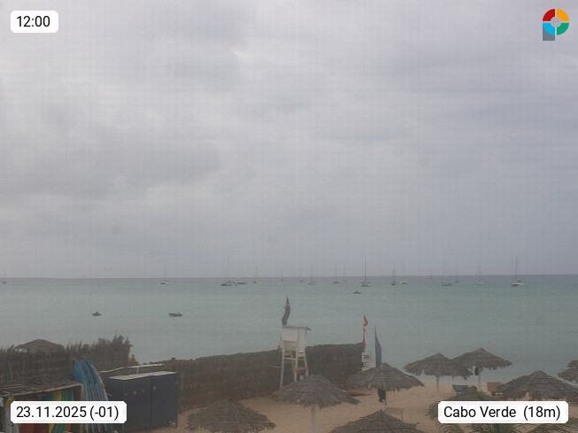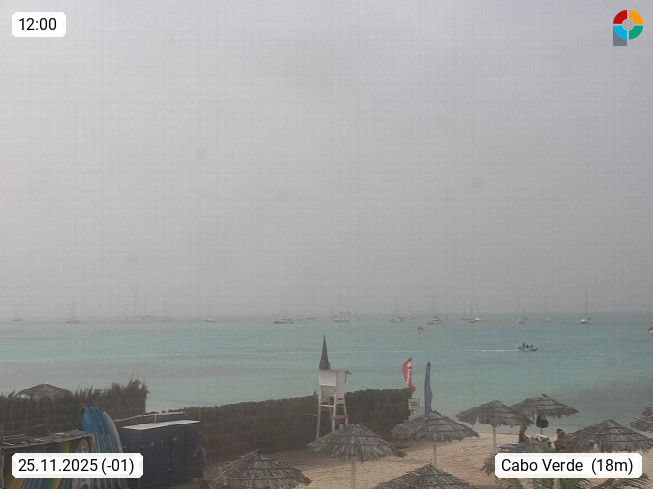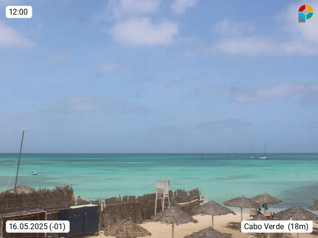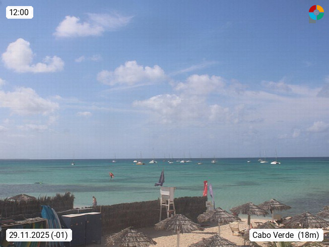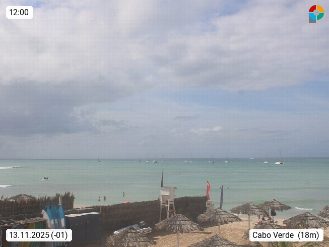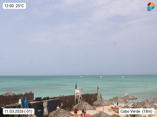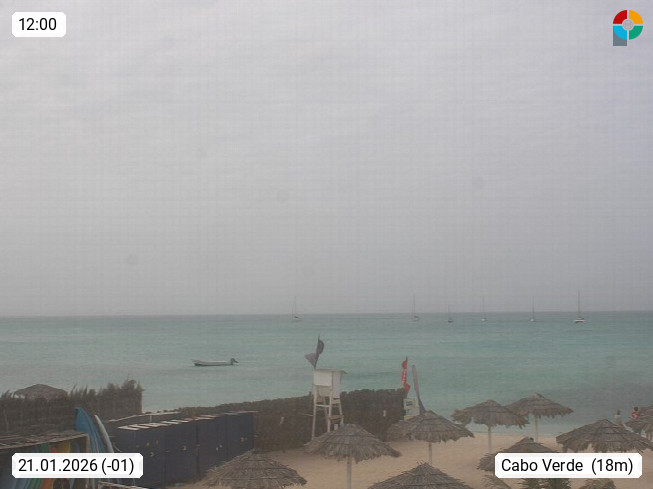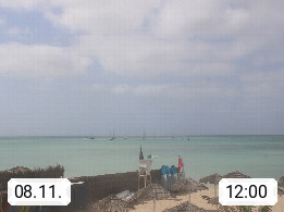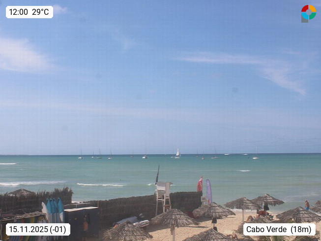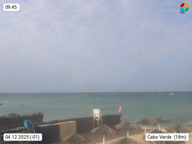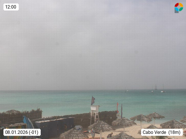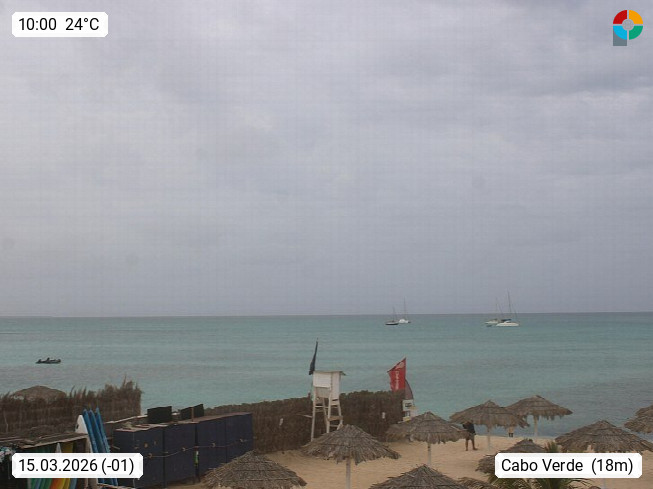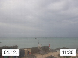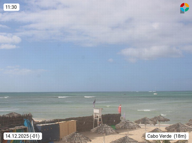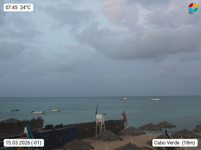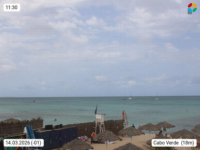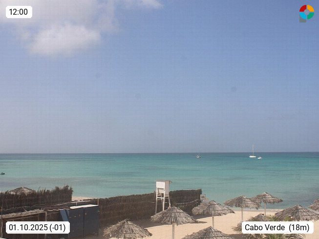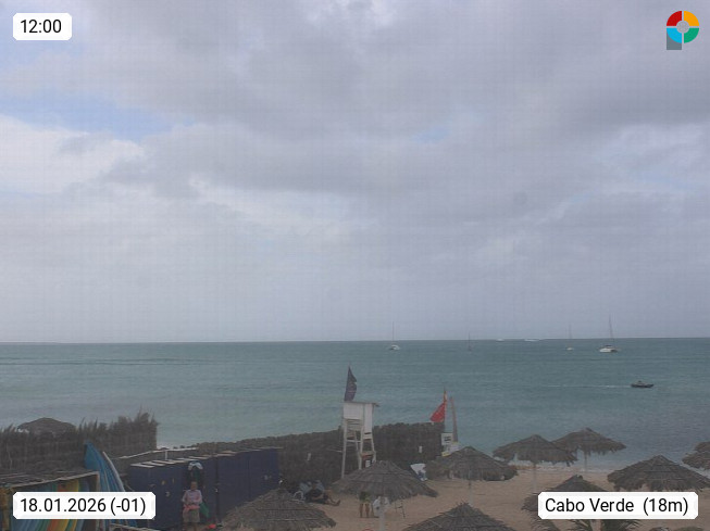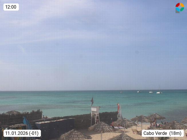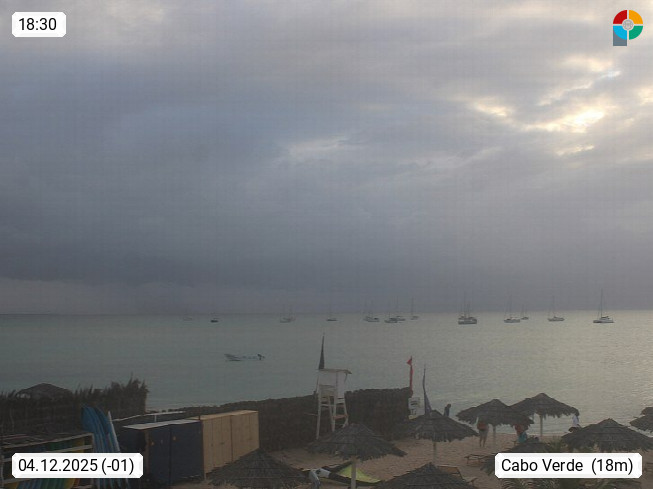 Kap Verde (Cabo Verde), Kapverden, Kapverdische Inseln, ist ein afrikanischer Inselstaat mit insgesamt 15 Inseln, 460 Kilometer vor der Westküste Afrikas. Die Inseln werden unterschieden zwischen den Inseln über dem Wind (Barlavento) und unter dem Wind (Sotavento). Blick über den Strand bei Boa Vista, auf der Insel Sal Richtung Westen. Präsentiert von https://www.addicted-sports.com.