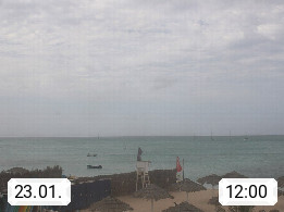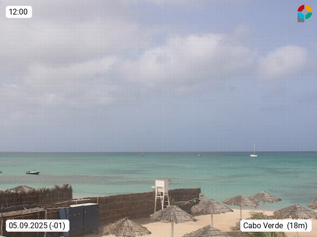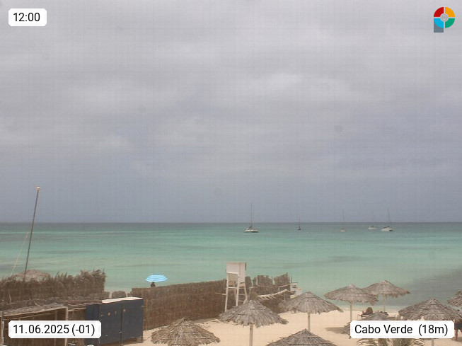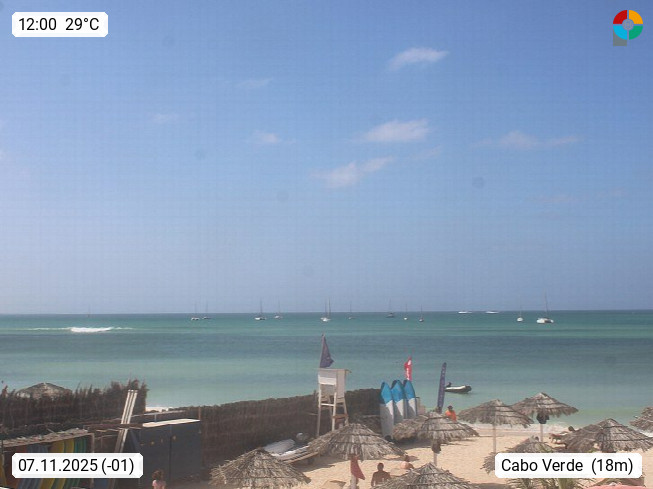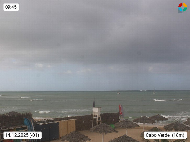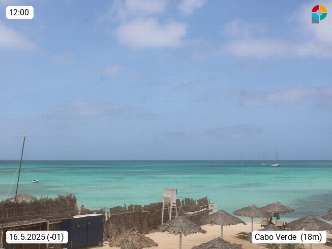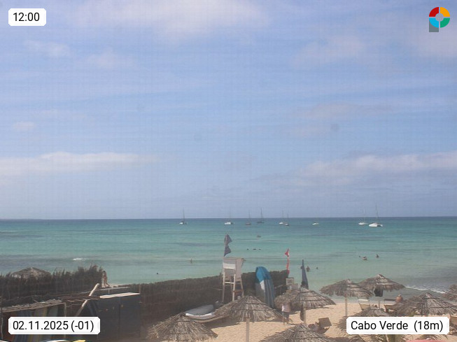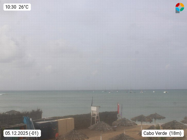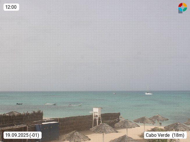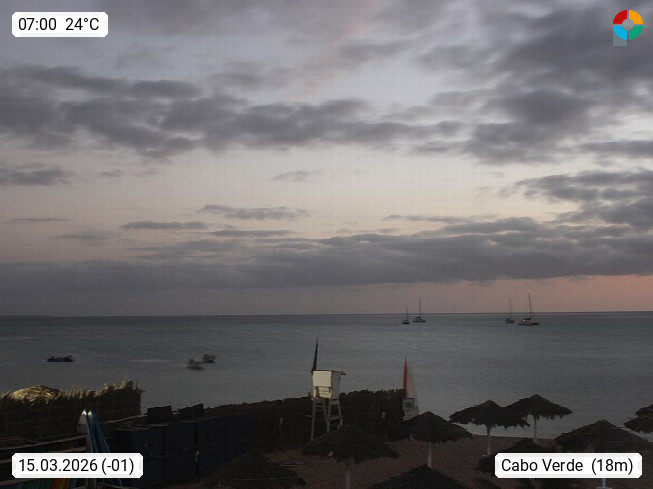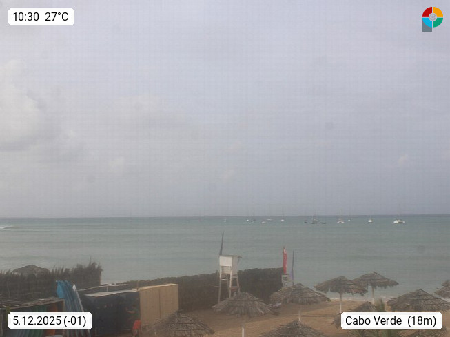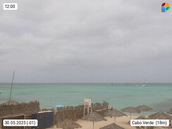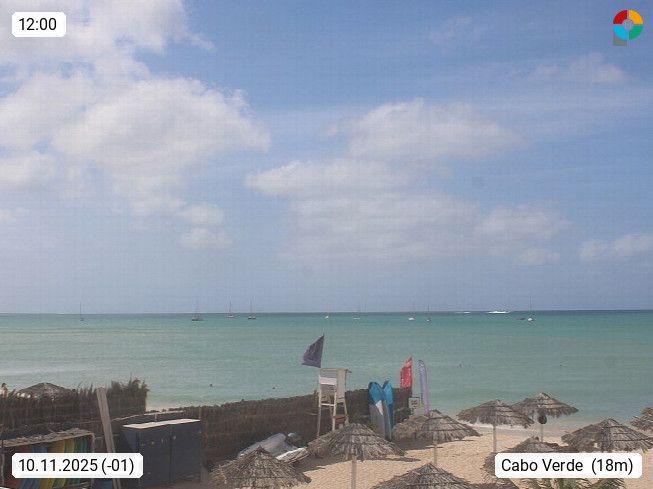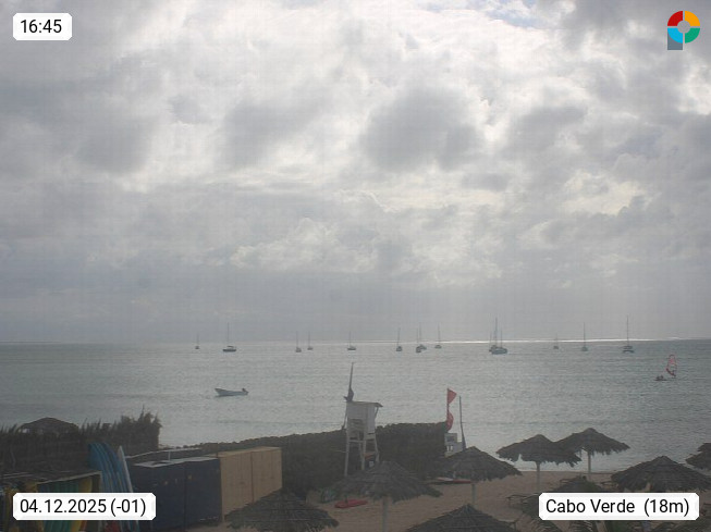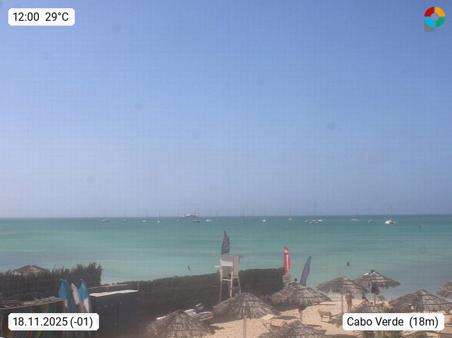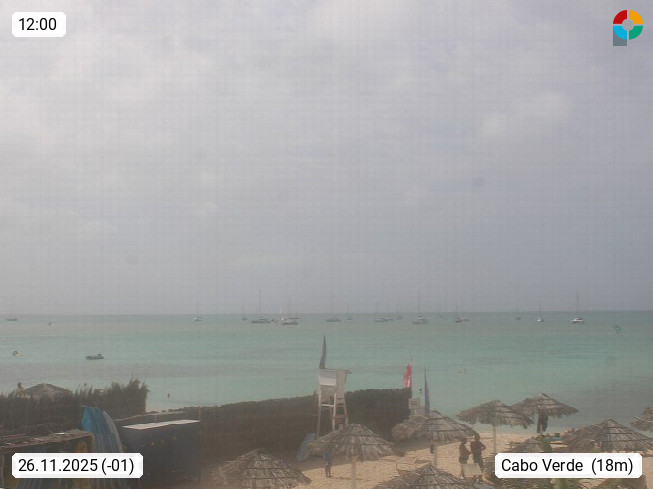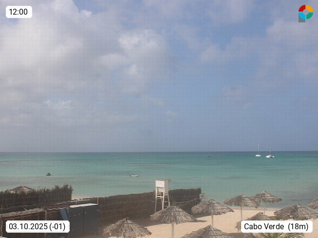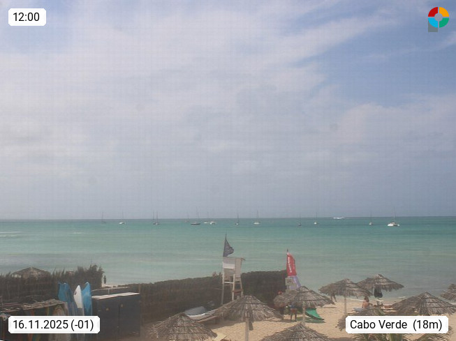 Kap Verde (Cabo Verde), Kapverden, Kapverdische Inseln, ist ein afrikanischer Inselstaat mit insgesamt 15 Inseln, 460 Kilometer vor der Westküste Afrikas. Die Inseln werden unterschieden zwischen den Inseln über dem Wind (Barlavento) und unter dem Wind (Sotavento). Blick über den Strand bei Boa Vista, auf der Insel Sal Richtung Westen. Präsentiert von https://www.addicted-sports.com.