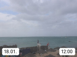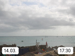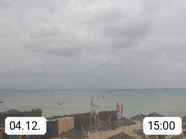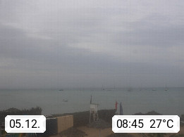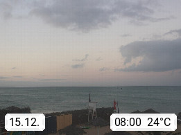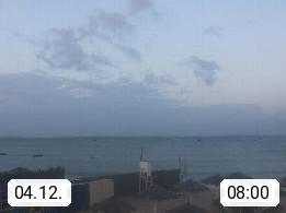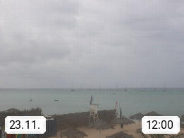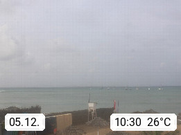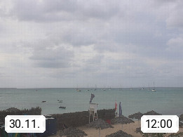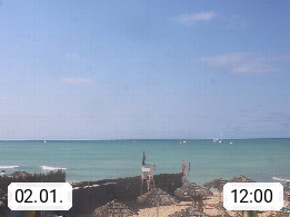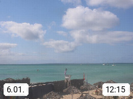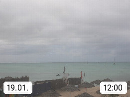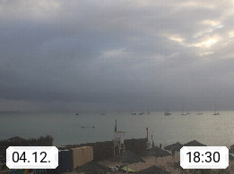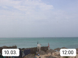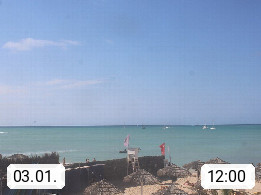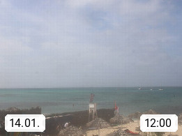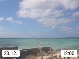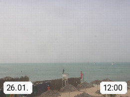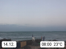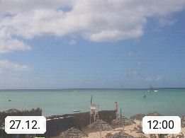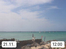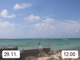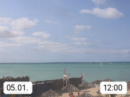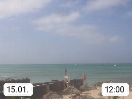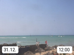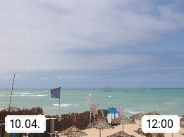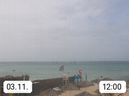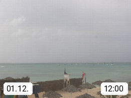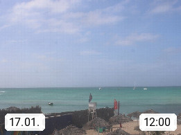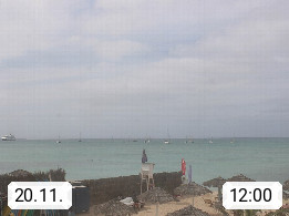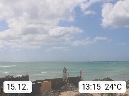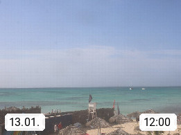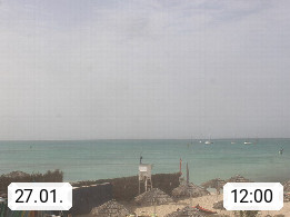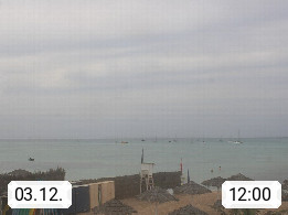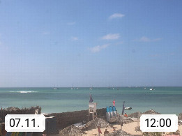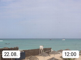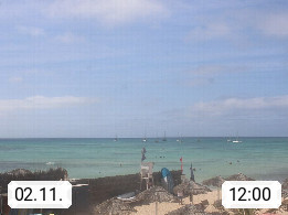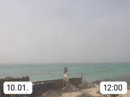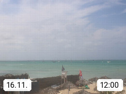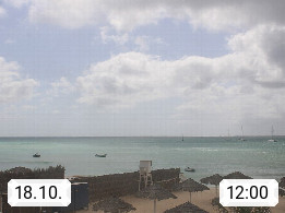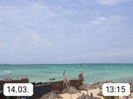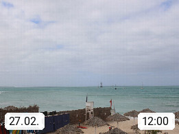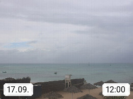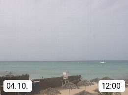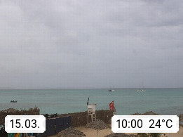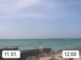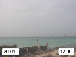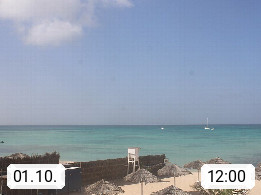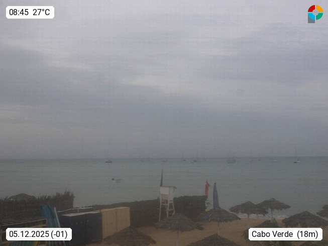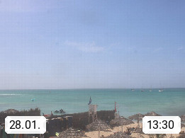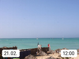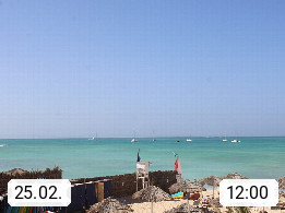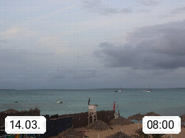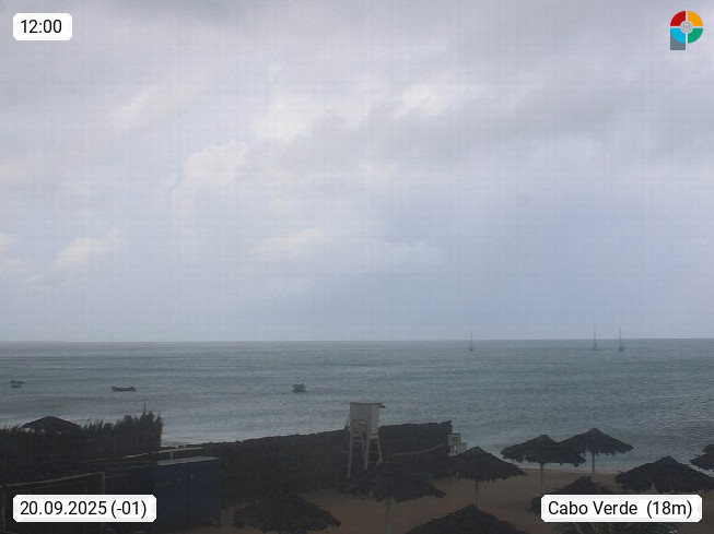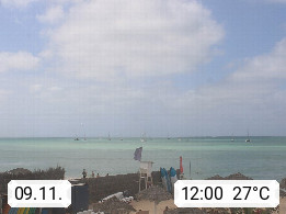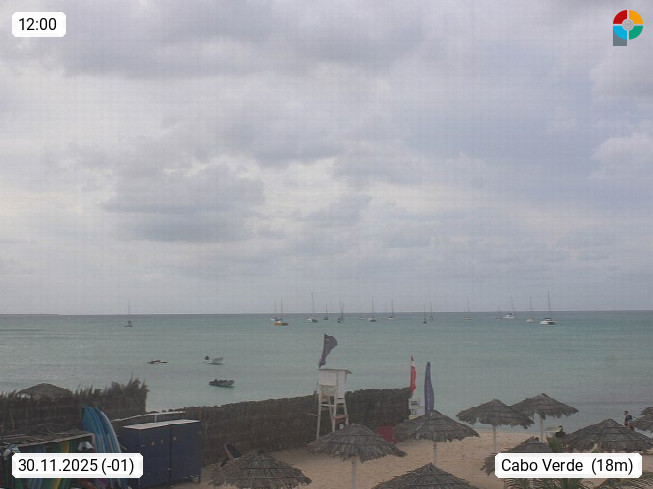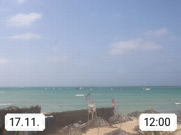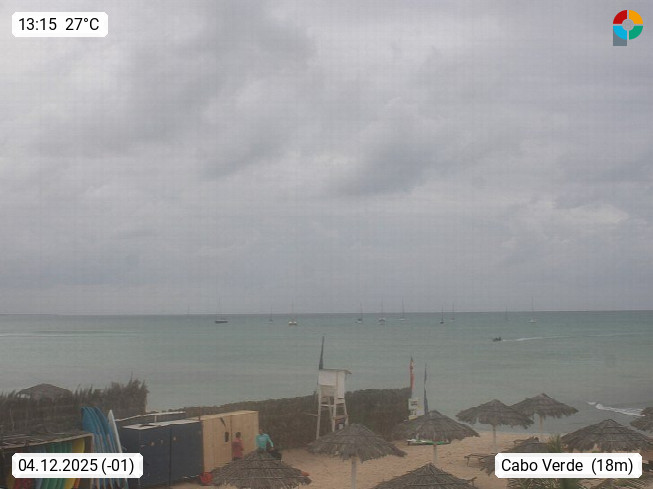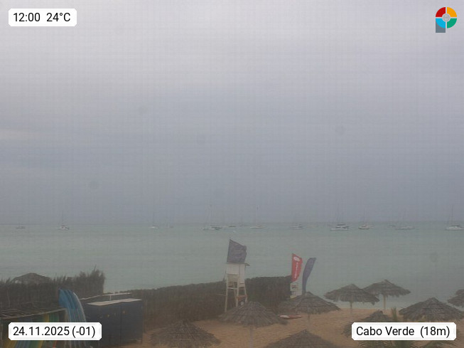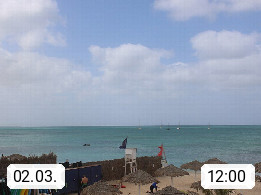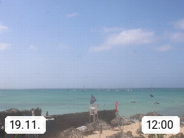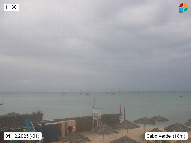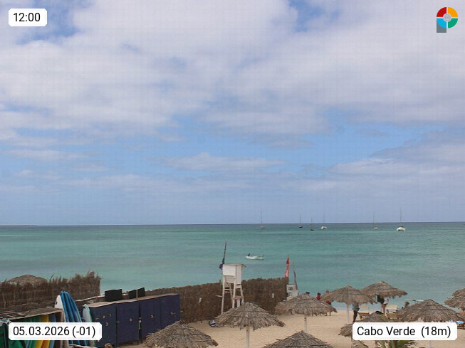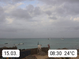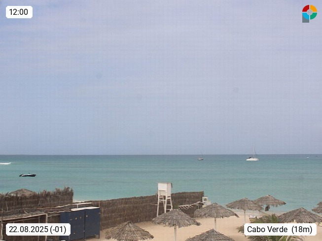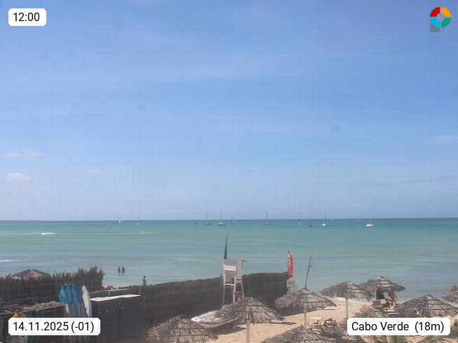 Kap Verde (Cabo Verde), Kapverden, Kapverdische Inseln, ist ein afrikanischer Inselstaat mit insgesamt 15 Inseln, 460 Kilometer vor der Westküste Afrikas. Die Inseln werden unterschieden zwischen den Inseln über dem Wind (Barlavento) und unter dem Wind (Sotavento). Blick über den Strand bei Boa Vista, auf der Insel Sal Richtung Westen. Präsentiert von https://www.addicted-sports.com.