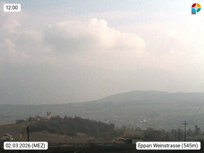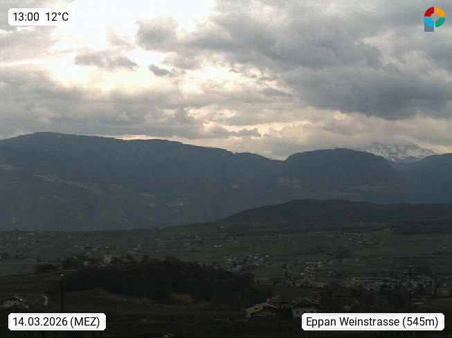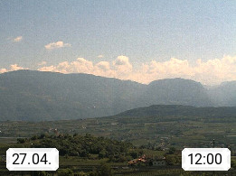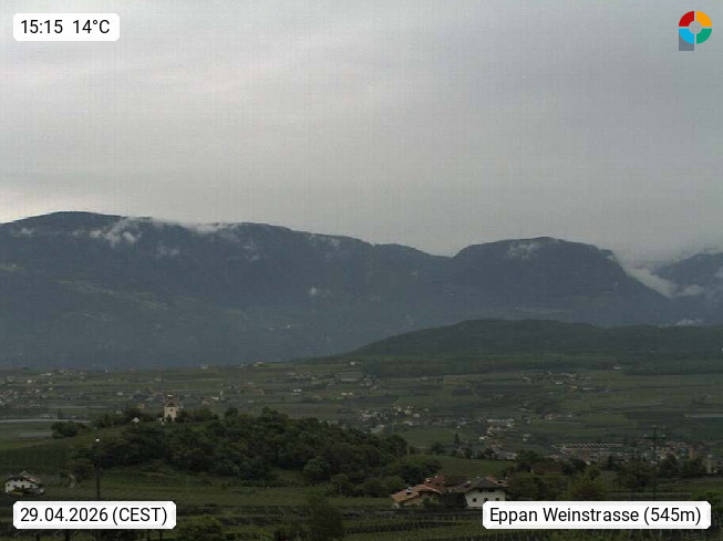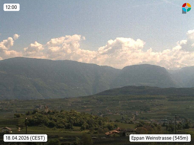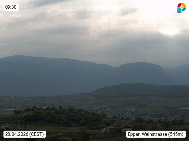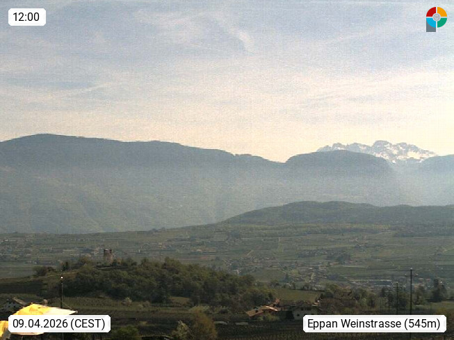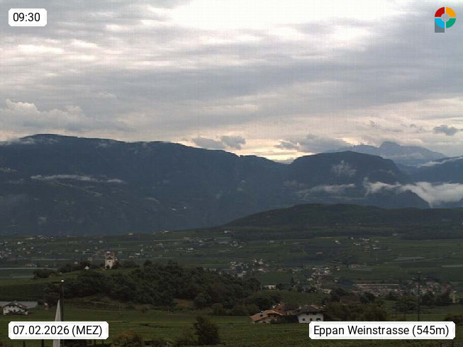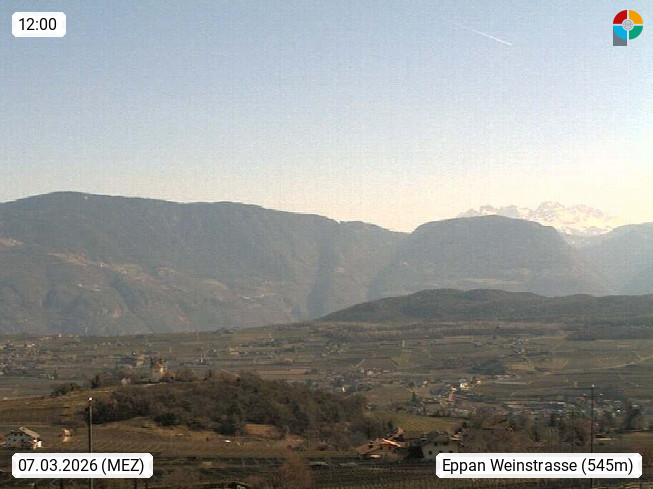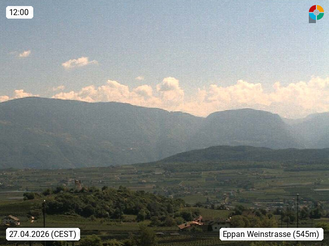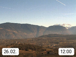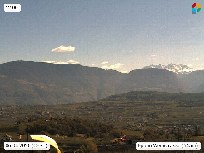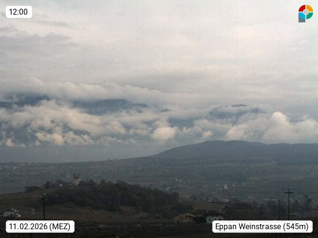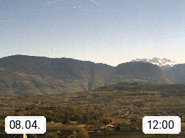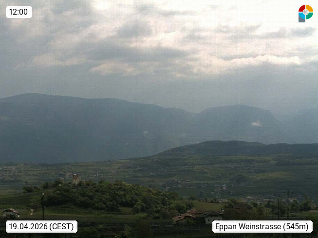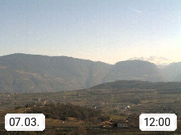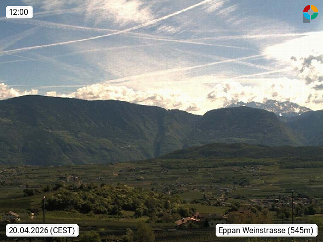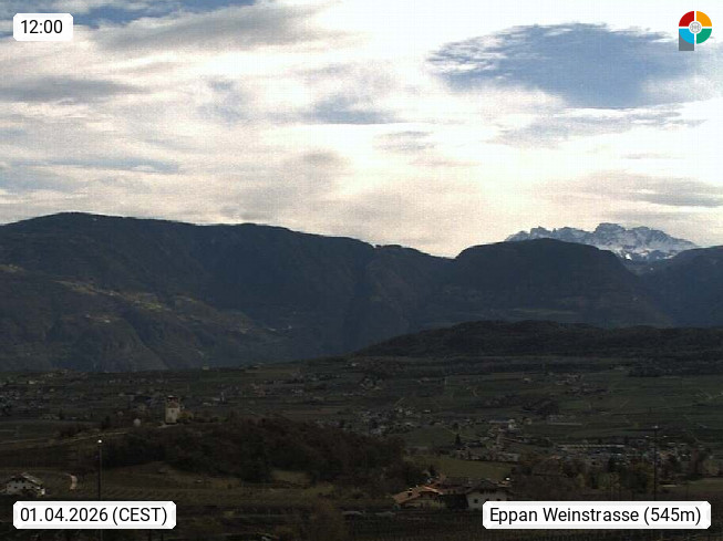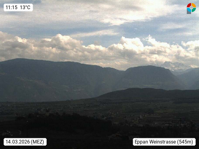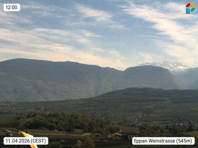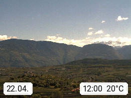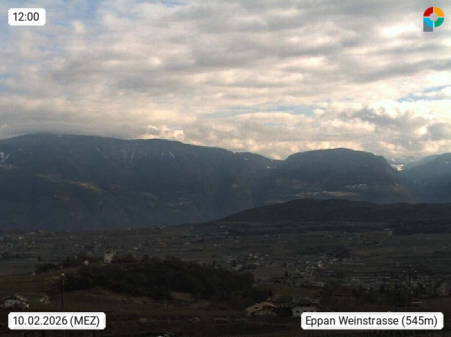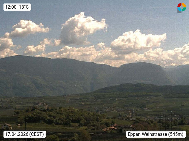 I 39057 Eppan an der Weinstraße (Appiano sulla Strada del Vino) 430m, im Überetsch zwischen Bozen (Bolzano) und Kaltern (Caldaro) an den Hängen des Mendelkamm (Costiera della Mendola). Panoramablick Richtung Nordosten zu den Sarntaler Alpen (Alpi Sarentine), Tschögglberg, Rittner Horn, Kohlerer Berg, Schlern, Latemar und Weißhorn. Präsentiert von https://www.steinegger.it/.