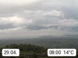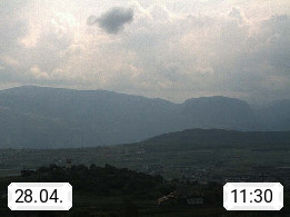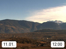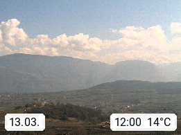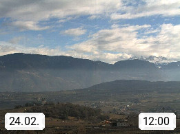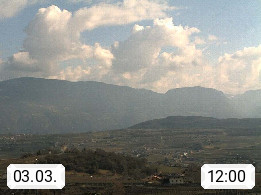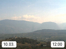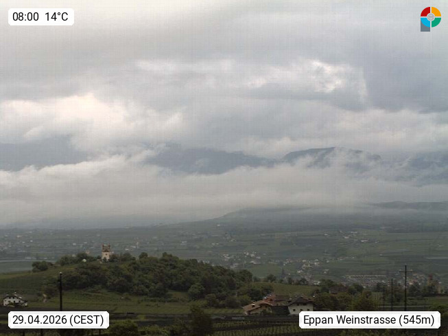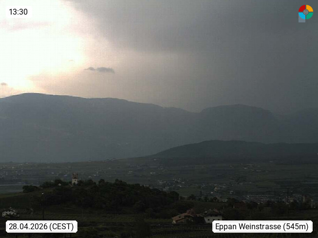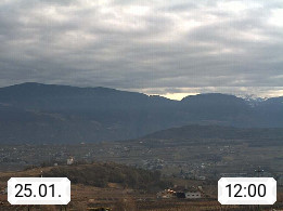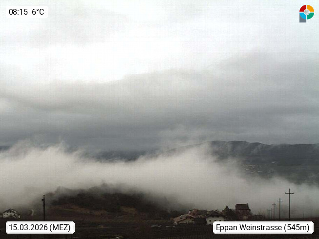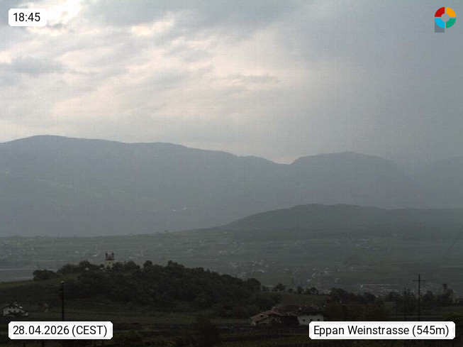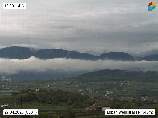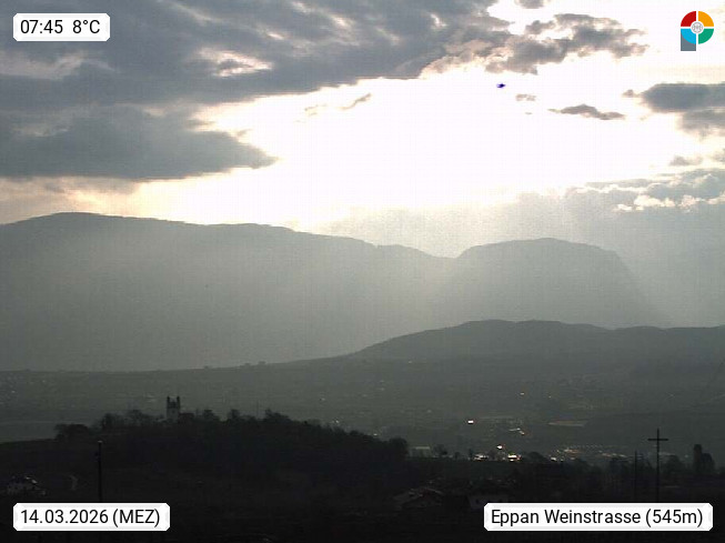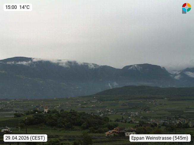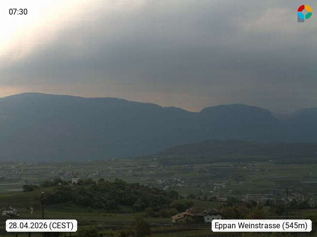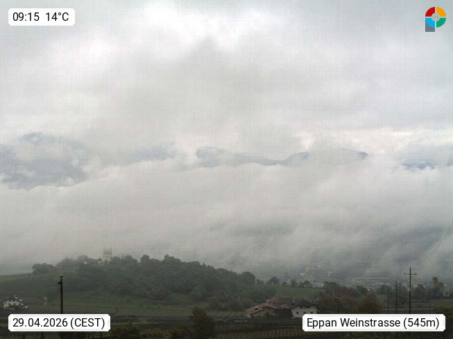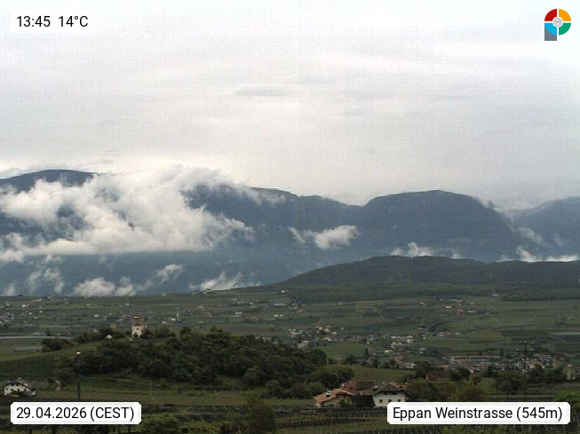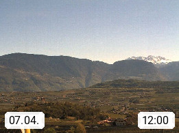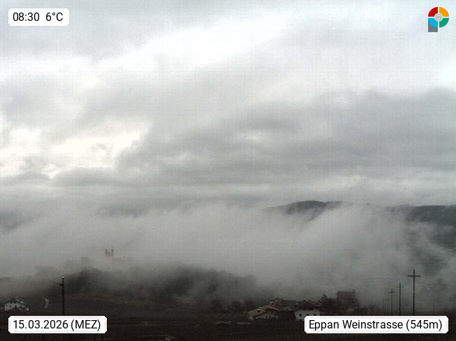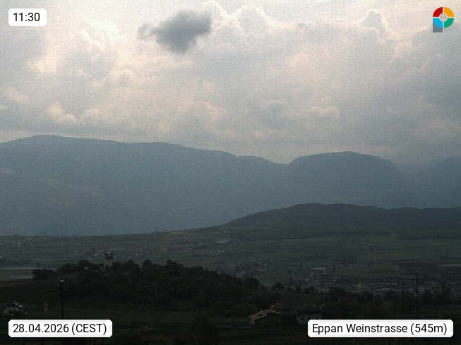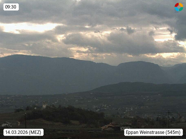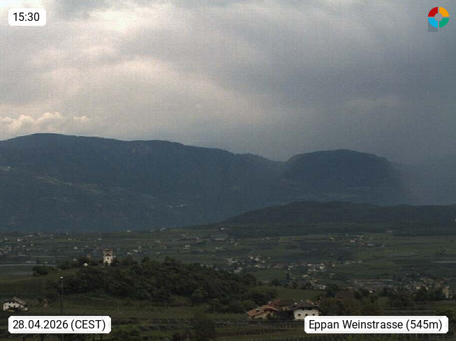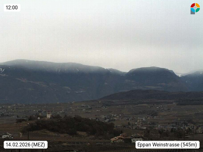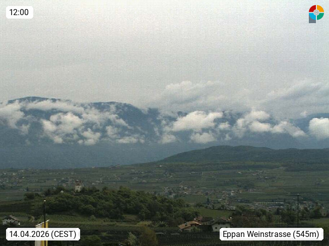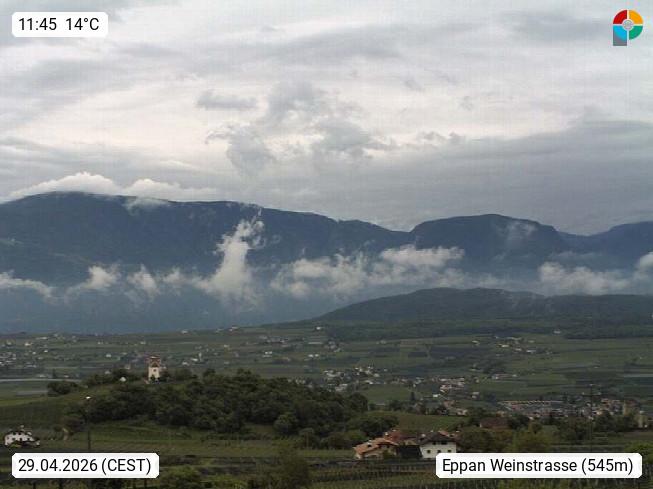 I 39057 Eppan an der Weinstraße (Appiano sulla Strada del Vino) 430m, im Überetsch zwischen Bozen (Bolzano) und Kaltern (Caldaro) an den Hängen des Mendelkamm (Costiera della Mendola). Panoramablick Richtung Nordosten zu den Sarntaler Alpen (Alpi Sarentine), Tschögglberg, Rittner Horn, Kohlerer Berg, Schlern, Latemar und Weißhorn. Präsentiert von https://www.steinegger.it/.