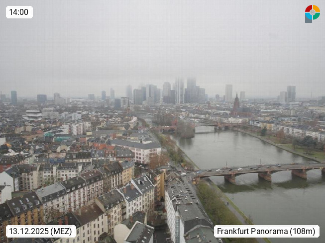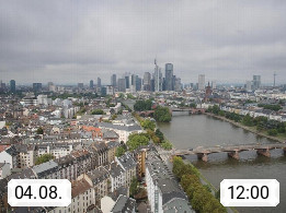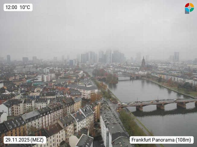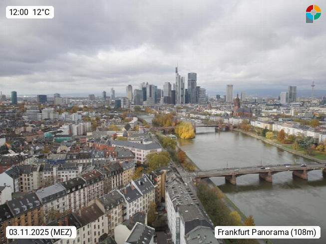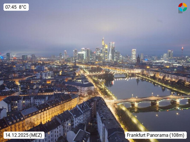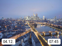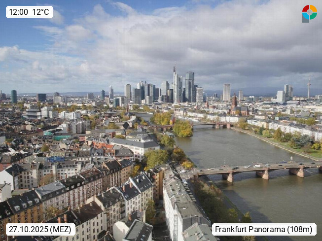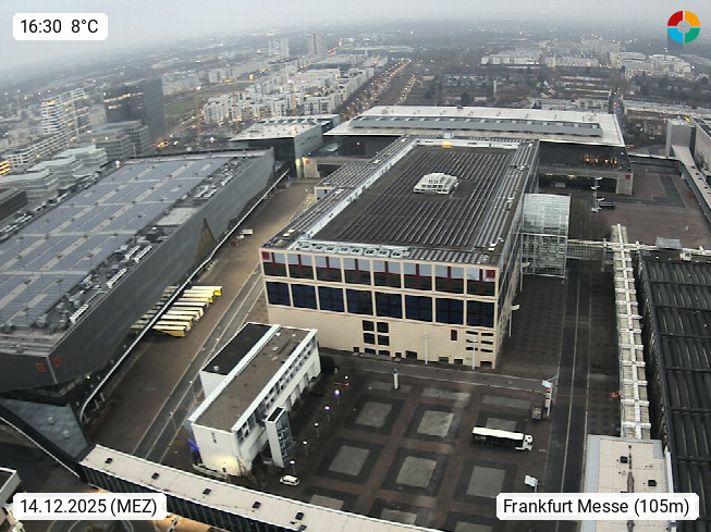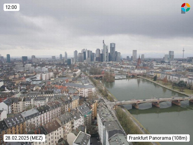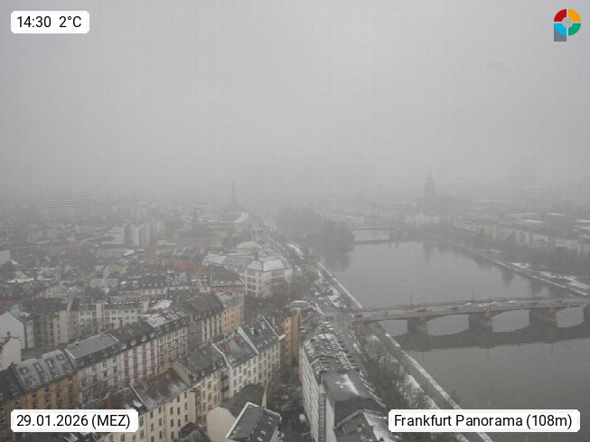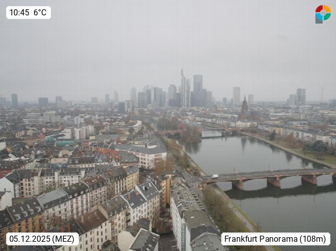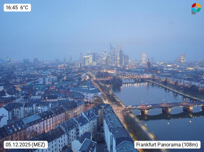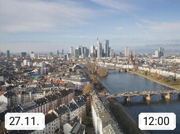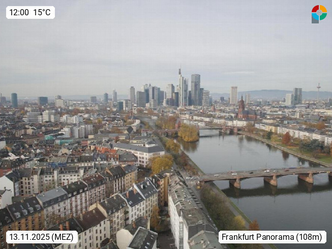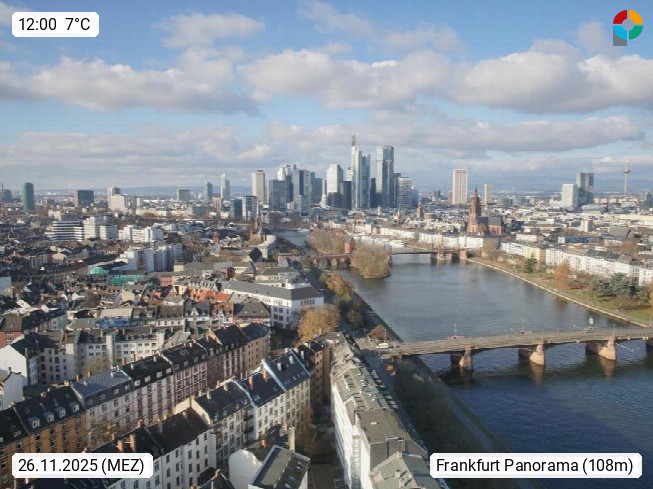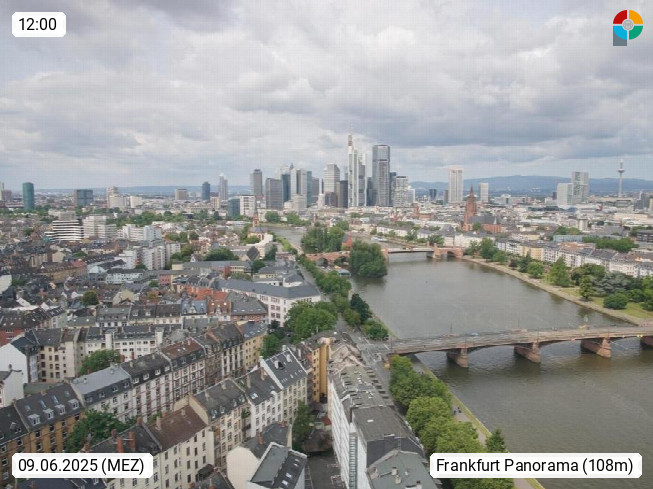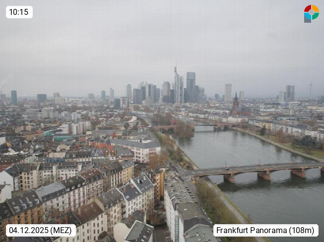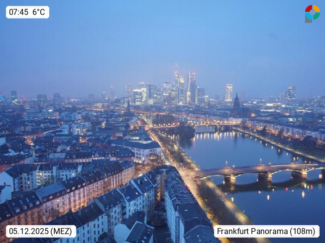 D 60327 Frankfurt am Main 112m, größte Stadt Hessens und eine der reichsten Großstädte Europas sowie Banken, Literatur und Kulturmetropole. Die Stadt liegt auf beiden Seiten des Untermains südöstlich des Taunus und ist Geburtsort von Johann Wolfgang von Goethe. Panoramablick vom Dach des Torhauses des Messezentrums Richtung Süden zu den Bürohäusern der Bankenmetropole Frankfurt am Main. Präsentiert von https://www.bergfex.de/.