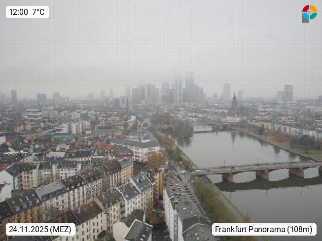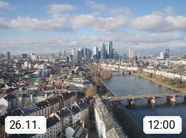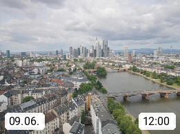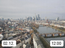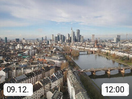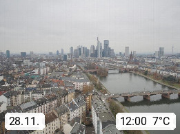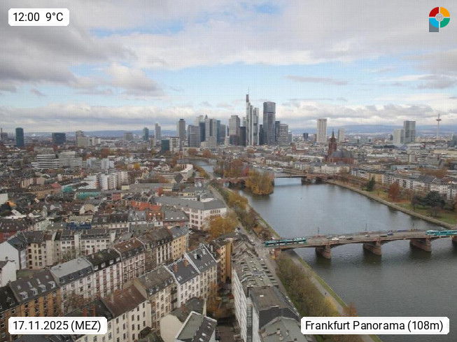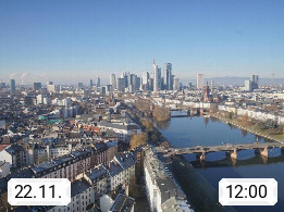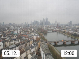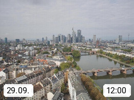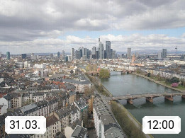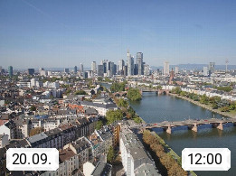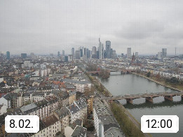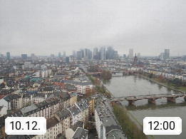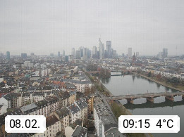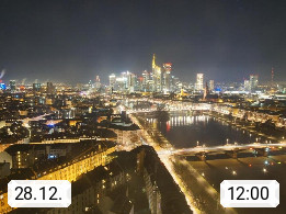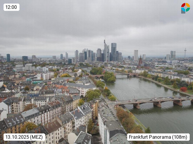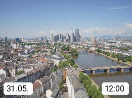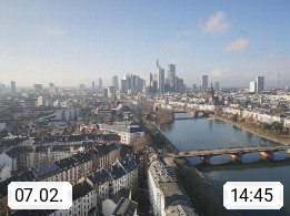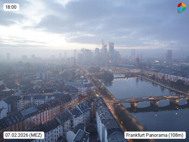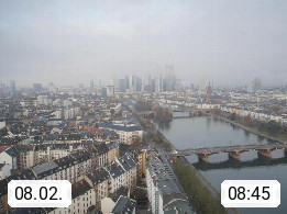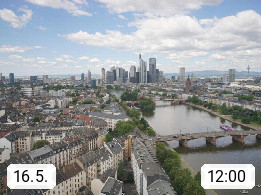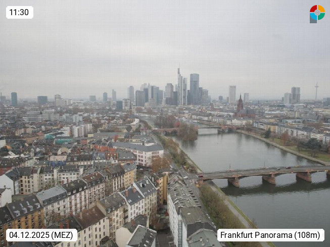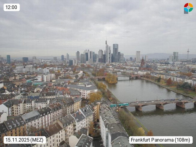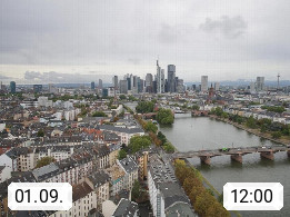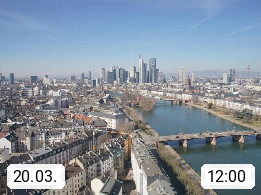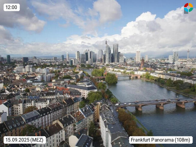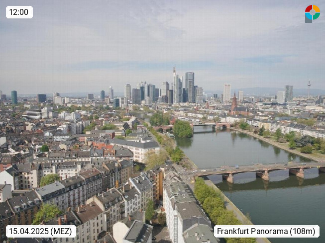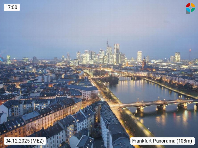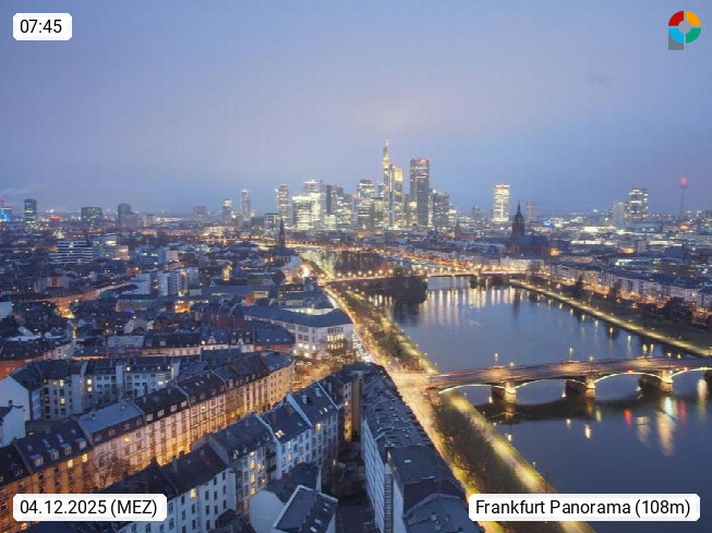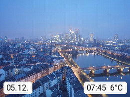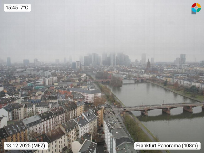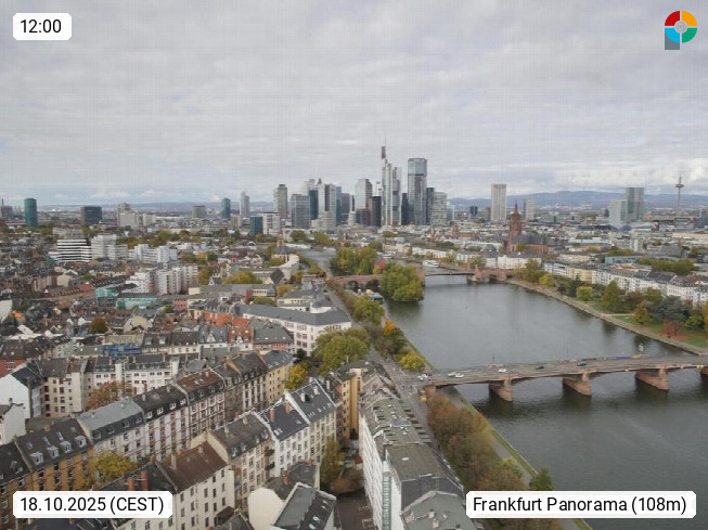 D 60327 Frankfurt am Main 112m, größte Stadt Hessens und eine der reichsten Großstädte Europas sowie Banken, Literatur und Kulturmetropole. Die Stadt liegt auf beiden Seiten des Untermains südöstlich des Taunus und ist Geburtsort von Johann Wolfgang von Goethe. Panoramablick vom Dach des Torhauses des Messezentrums Richtung Süden zu den Bürohäusern der Bankenmetropole Frankfurt am Main. Präsentiert von https://www.bergfex.de/.