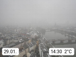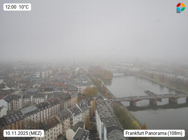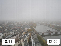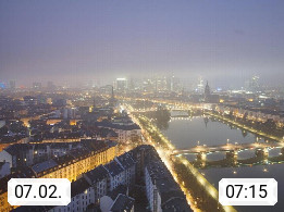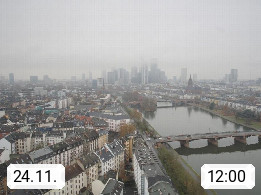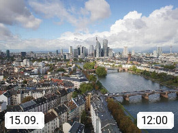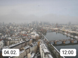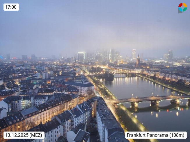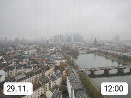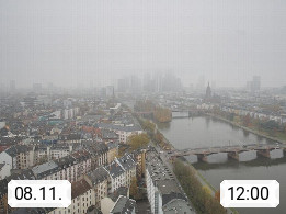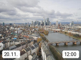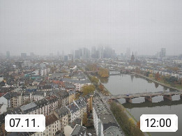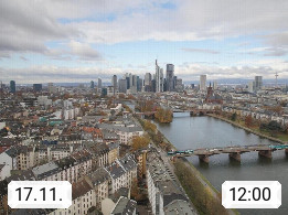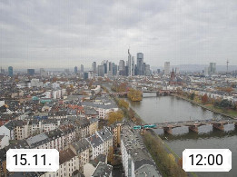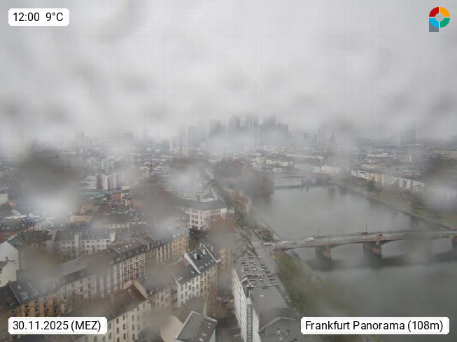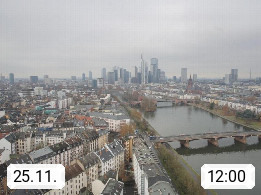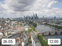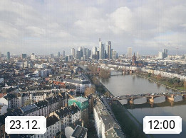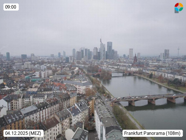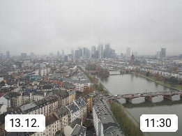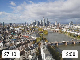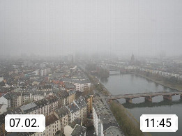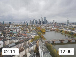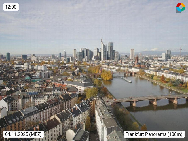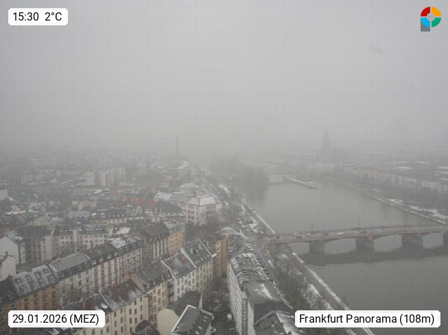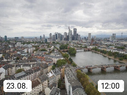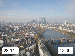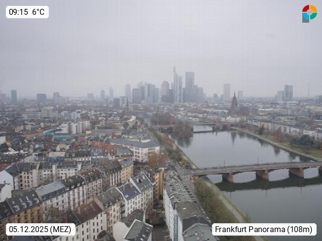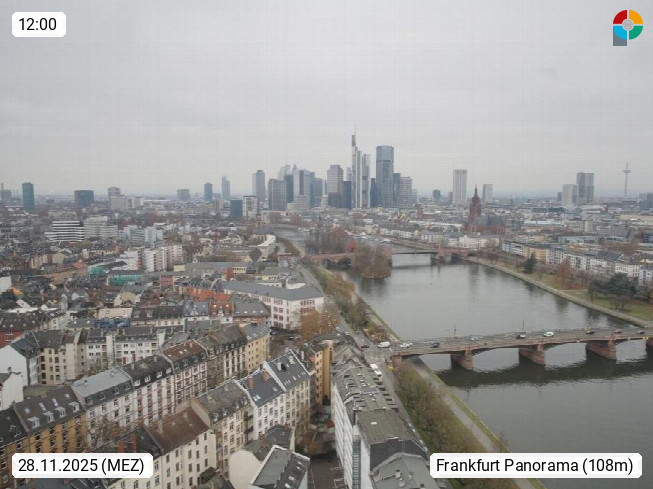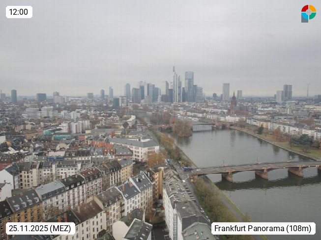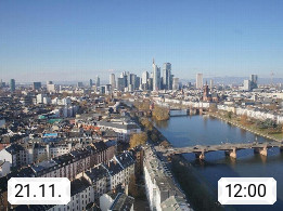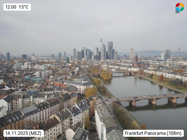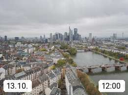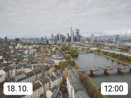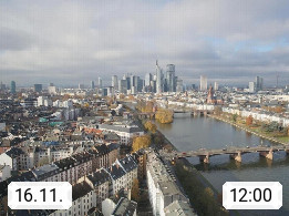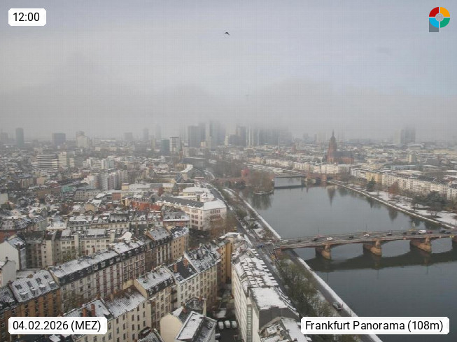 D 60327 Frankfurt am Main 112m, größte Stadt Hessens und eine der reichsten Großstädte Europas sowie Banken, Literatur und Kulturmetropole. Die Stadt liegt auf beiden Seiten des Untermains südöstlich des Taunus und ist Geburtsort von Johann Wolfgang von Goethe. Panoramablick vom Dach des Torhauses des Messezentrums Richtung Süden zu den Bürohäusern der Bankenmetropole Frankfurt am Main. Präsentiert von https://www.bergfex.de/.