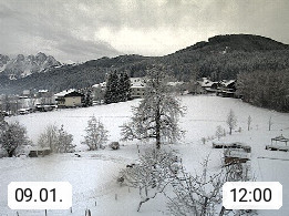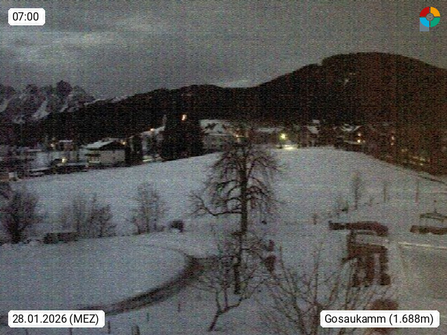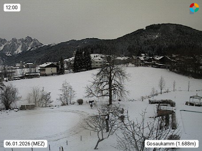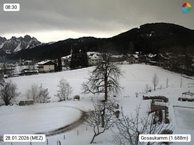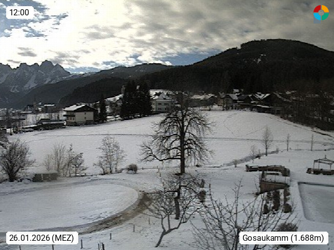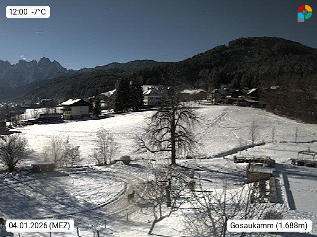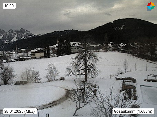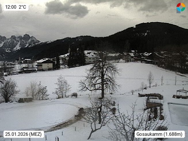 A 4824 Gosau Gosau 767m, im Bezirk Gmunden im Traunviertel, Blick Richtung Süden zum Gosaukamm, mit seinem schroffen Felsgrat mit Höhen über 2.000 Meter, eine unverwechselbare Kulisse an der Grenze zwischen den Bundesländern Salzburg und Oberösterreich. Präsentiert von https://www.hotel-koller.com.