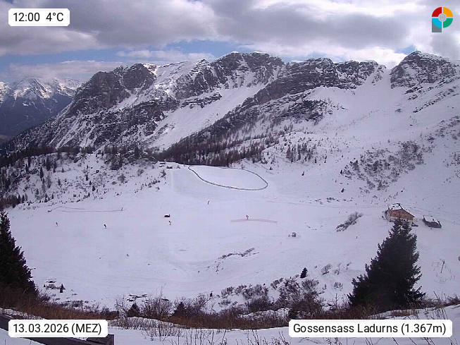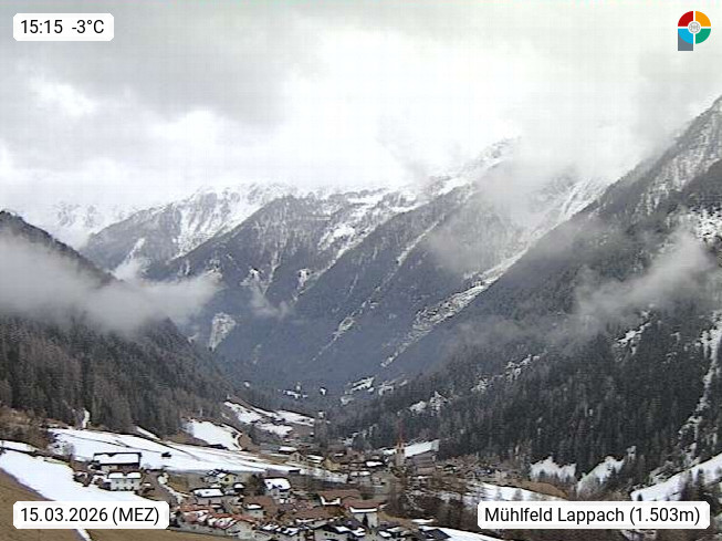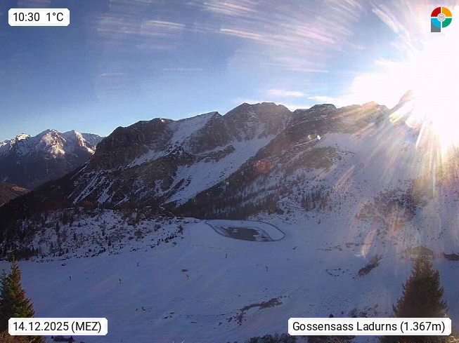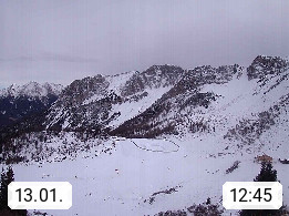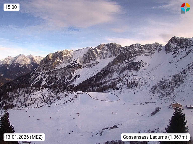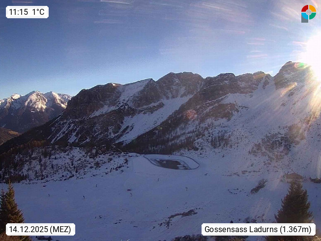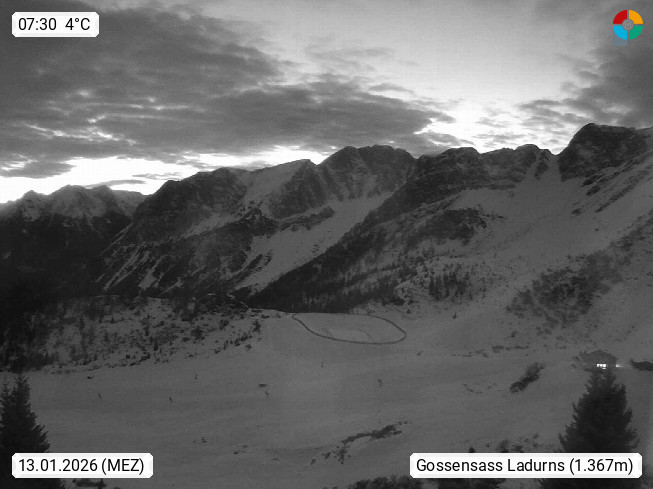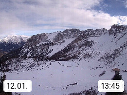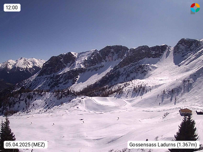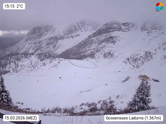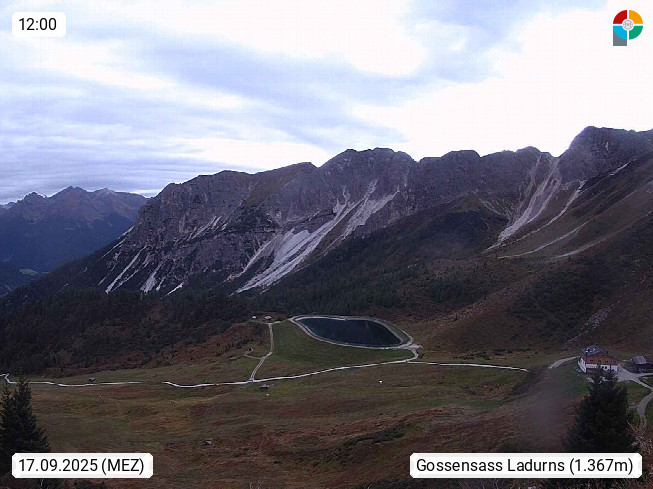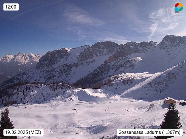 I 39040 Gossensass Ladurns (Colle Isarco) am Brenner (Brennero) 1.240m, Dorf in der Gemeinde Brenner (Brennero) in der Bezirksgemeinschaft Wipptal nördlich von Sterzing (Vipiteno). Blick von der Bergstation im Ski und Wandergebiet Ladurns 2.010m, Richtung Nordost auf das Felsmassiv des Pflerscher Tribulaun 3.097m in den Stubaier Alpen in Tirol, an der Grenze von Südtirol zu Österreich. Präsentiert von https://www.ladurns.it/de.